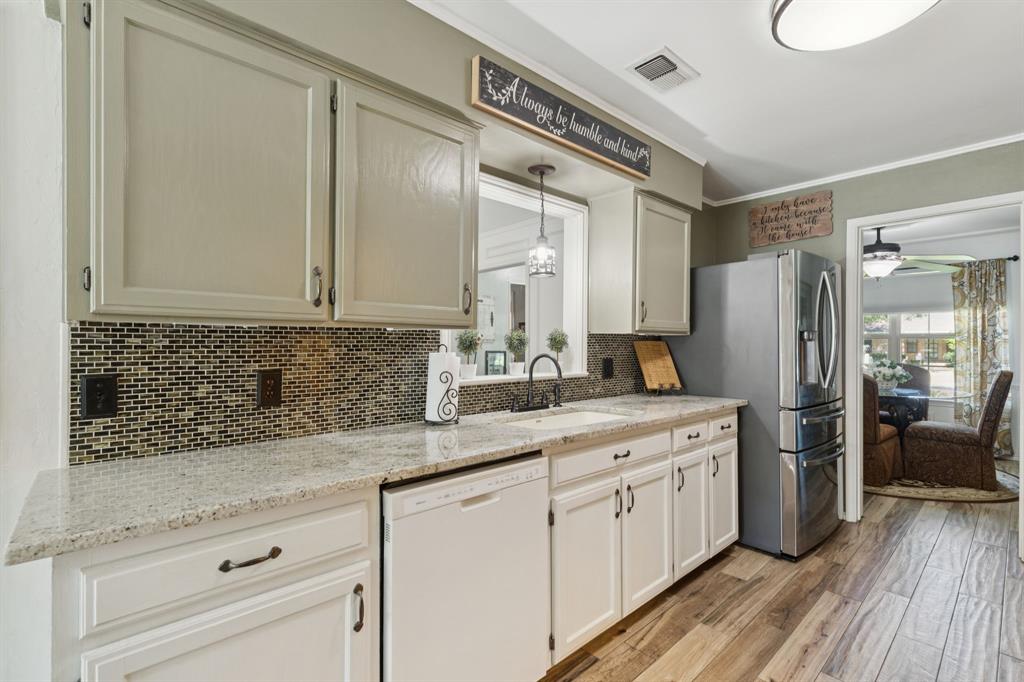 Notable upgrades include a new gate opener, garage door opener, and garage springs (2024), roof and gutters (2023), windows (2019), and upgraded granite counters in the kitchen and bar.
