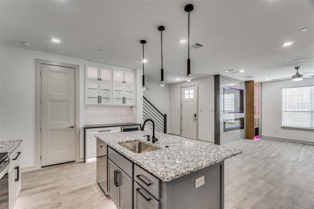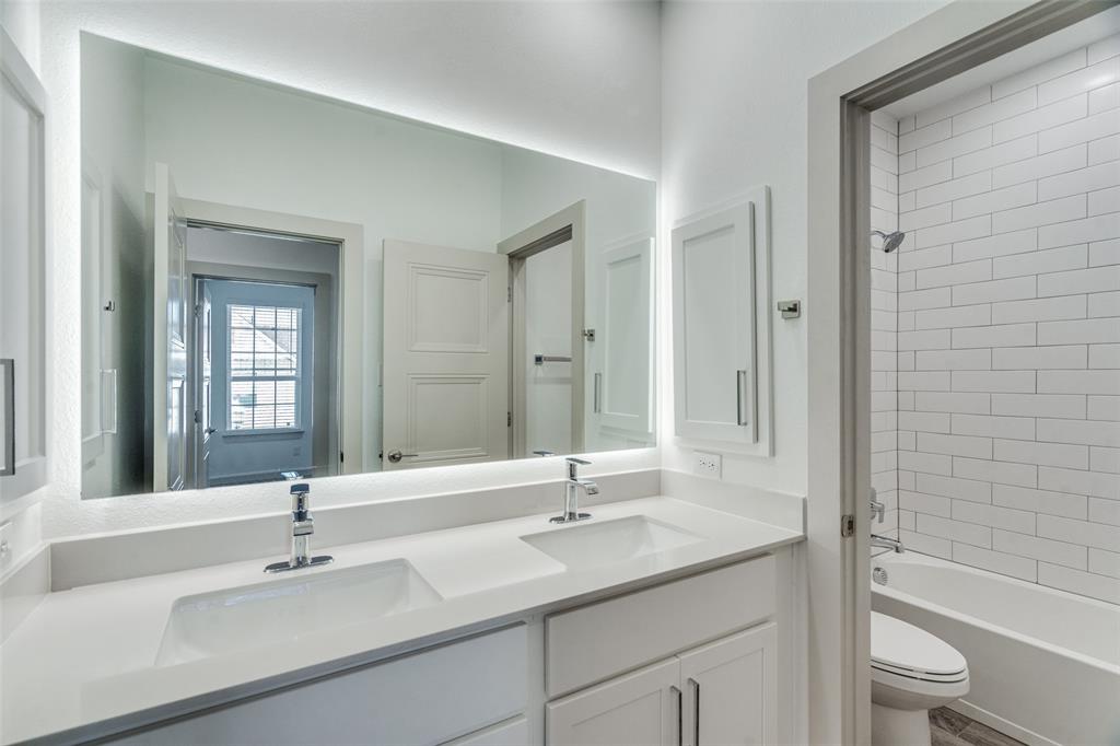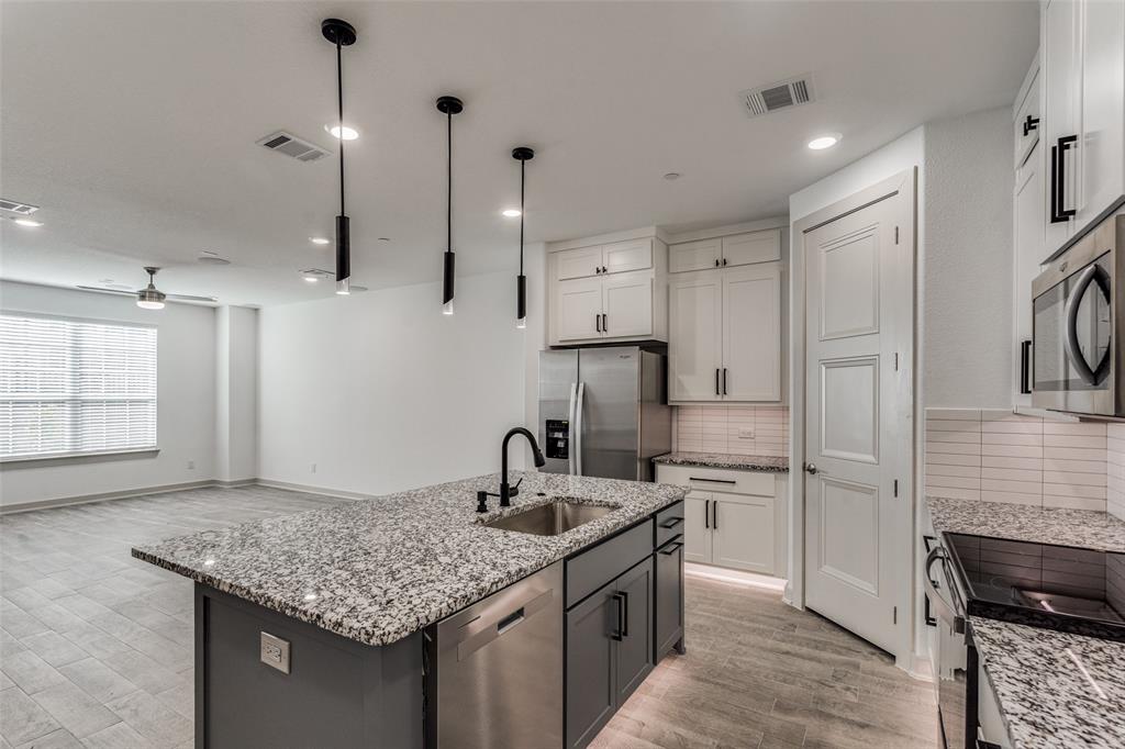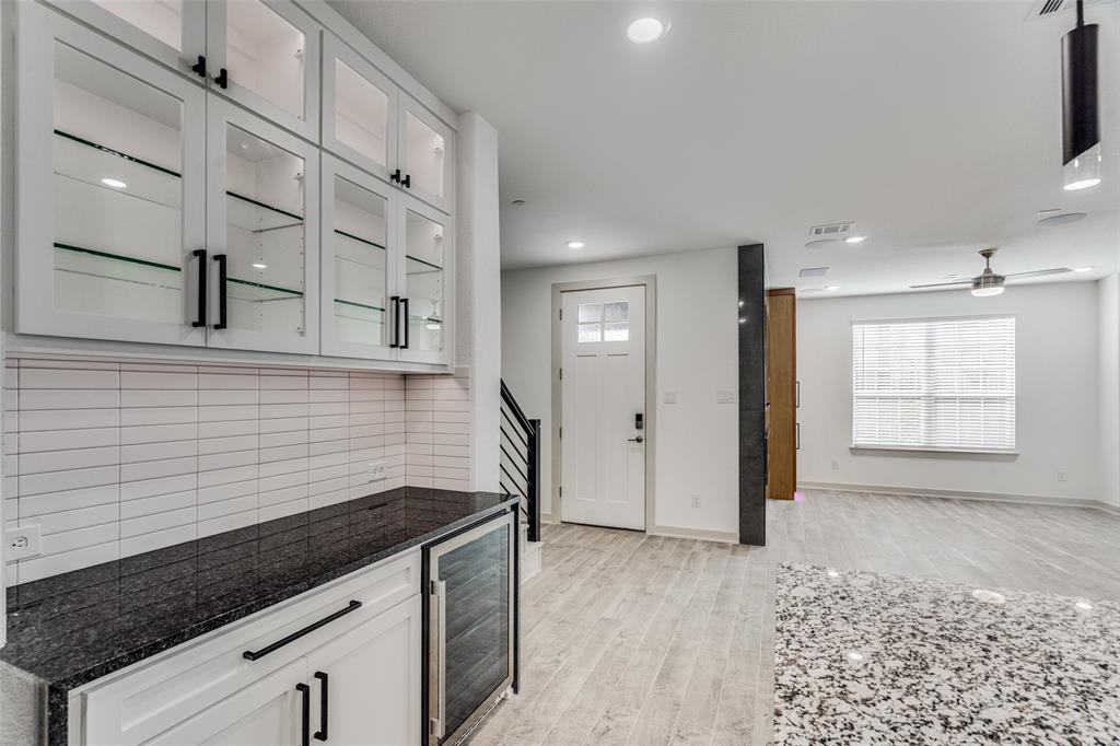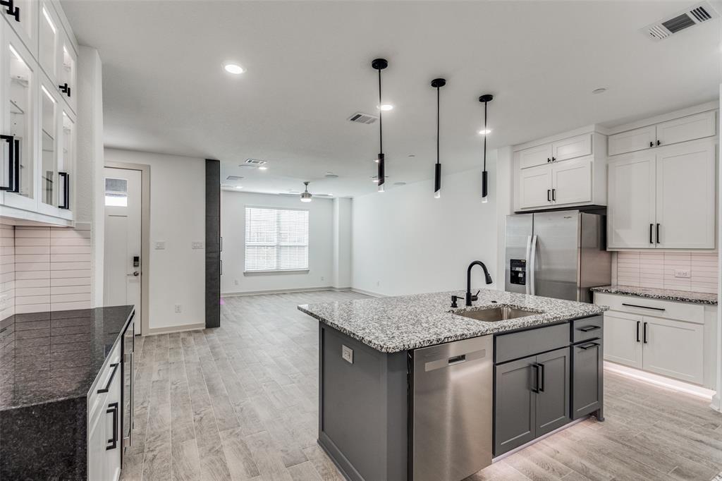 Stunning, Like-New Upgraded Townhome at Villas at Chaparral! Experience modern, upscale living in this beautifully upgraded villa — ideal for professionals or families seeking comfort and style. Located in highly sought-after Allen, this home is designed with sophisticated finishes and thoughtful details throughout the home. The gourmet kitchen features: stainless steel appliances, built-in cabinetry, upgraded modern black light fixtures and hardware, along with a center island that doubles as a breakfast bar — perfect for morning coffee or casual meals. An open-concept layout seamlessly connects the kitchen to the living area, which features a built-in cabinet, a 75” TV, surround sound, and a sleek linear fireplace, making it an ideal space for entertaining friends and family. Additional highlights include a custom coffee and wine bar area with granite countertops and elegant LED lighting. Enjoy new carpet throughout the entire second floor and stairway. Imerse in a beautiful primary suite with a striking accent wall, a private balcony, an ensuite bathroom with dual vanities and floating mirrors, LED accent lighting throughout all the bathrooms, an oversized frameless shower, and a huge walk-in closet. The two-car garage offers epoxy flooring and added overhead and side storage — perfect for bikes, kayaks, or oversized luggage. Located minutes from Highway 75 and within walking distance of an elementary school, park, and trails. This Villa is also zoned for Allen High School, home to the Eagles. You’re only a 10-minute drive from Watters Creek Village, Allen Premium Outlets, and Fairview, providing access to premium shopping and dining. This is more than a home — it’s a lifestyle! Come see all this beautiful villa has to offer!