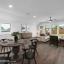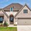 Home office with French doors set at entry with 12-foot ceiling. Extended entry leads to open kitchen, dining area and family room. Kitchen features corner walk-in pantry, generous counter space, 5-burner gas cooktop and island with built-in seating space. Dining area flows into family room with a wood mantel fireplace and wall of windows. Primary suite includes double-door entry to primary bath with dual vanities, garden tub, separate glass-enclosed shower and two large walk-in closets. A guest suite with private bath adds to this spacious one-story home. Covered backyard patio. Mud room off two-car garage.