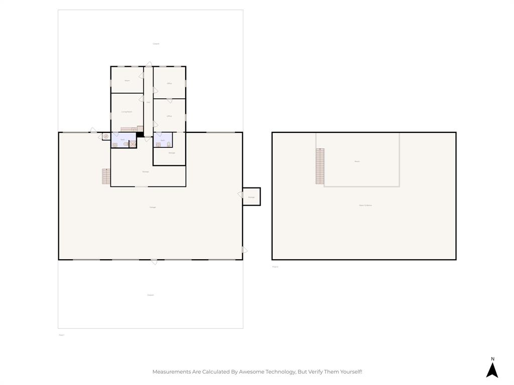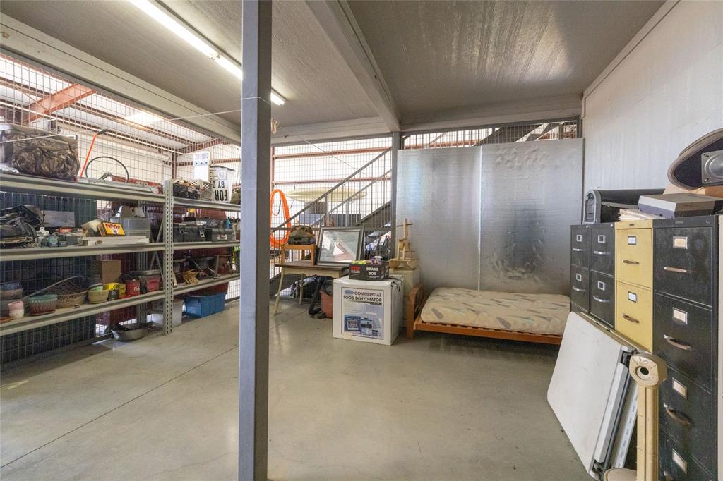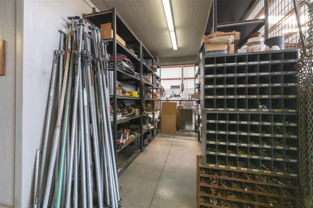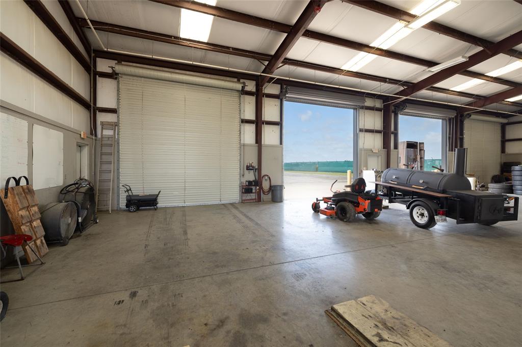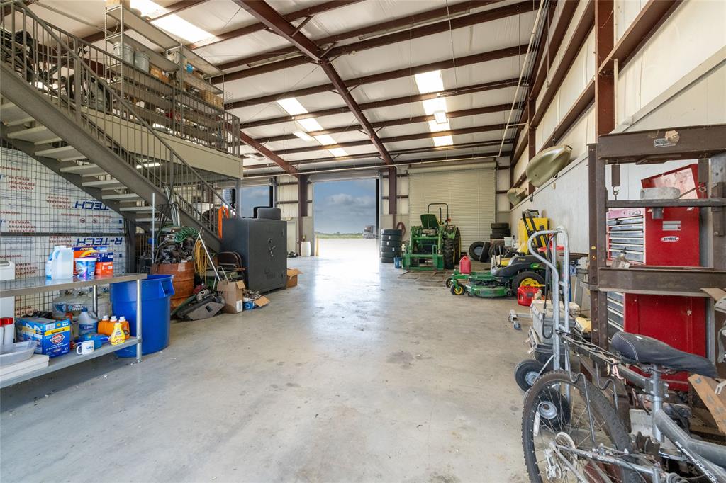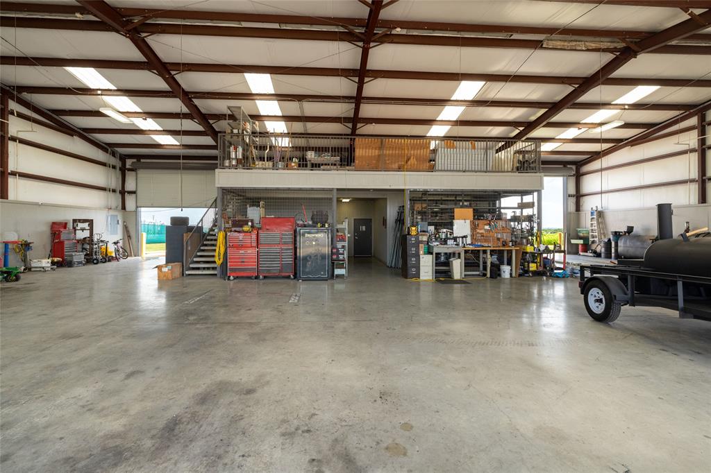 Workshop Area: Over 4,000 square feet of enclosed, concrete-floored workshop, garage, or service space. The workshop features six 15’ x 15’ roll-up doors, two in the front and four in the rear, providing excellent pull-through access. Each exterior wall includes swing doors, electrical outlets, and pneumatic hookups for added functionality. The roof is equipped with mechanical vents to improve airflow. Find an additional 816 sqft of upstairs storage.