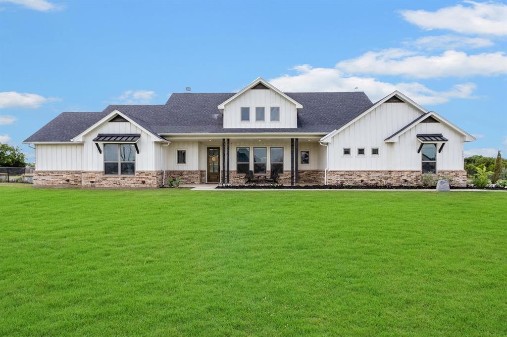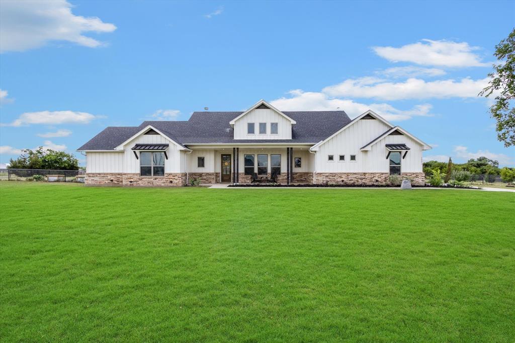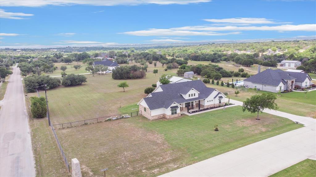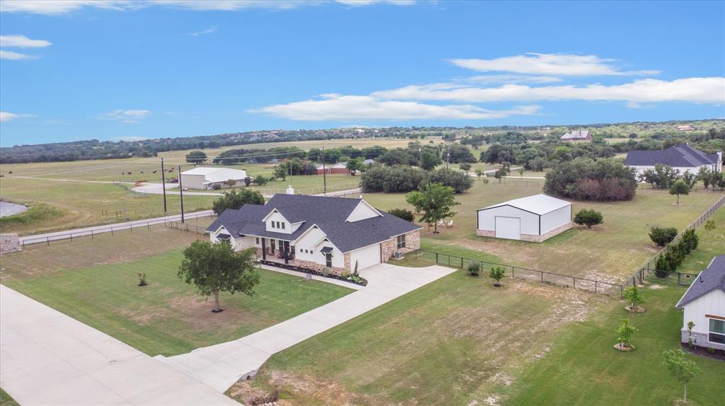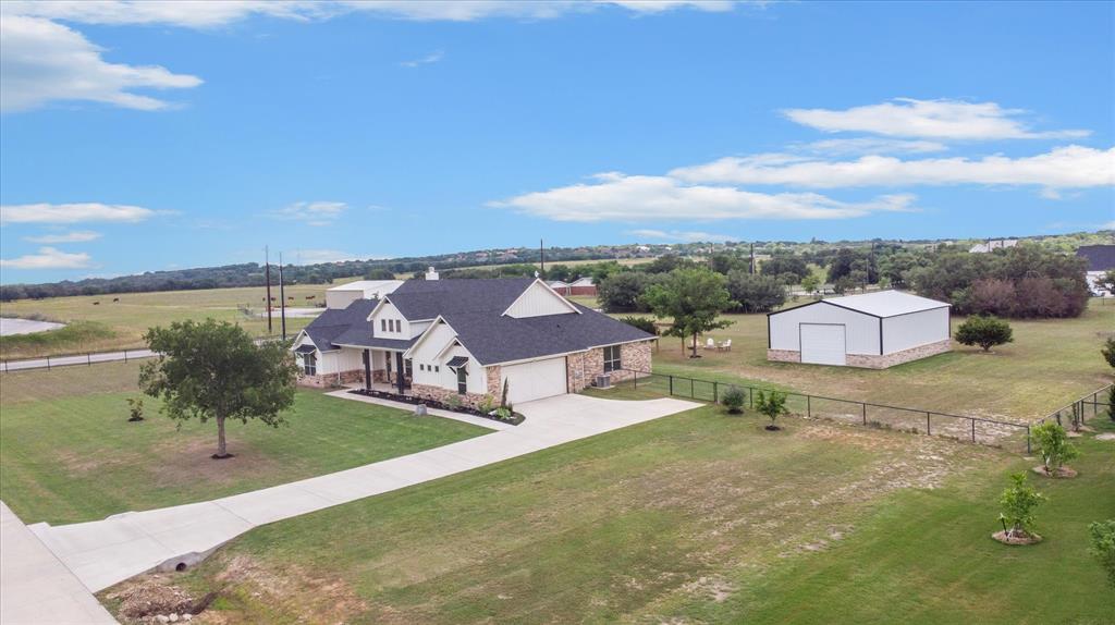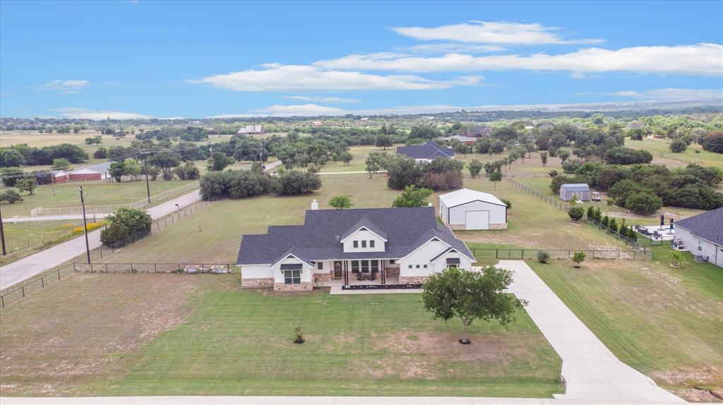 Better hurry this beautiful modern Farmhouse won't last long. It features 4 bedrooms, 2.5 baths, oversized 2 car garage and 30 x 40 12' tall shop. Home sits on 2 wooded acres across the street from a 400+- acre cattle ranch outside the city limits in the wonderful Weatherford School system. Enjoy the open concept living spaces, great for entertaining family and friends. California style kitchen has farm sink, huge pantry, and large island with plenty of room for eating. Quartz countertops throughout. Wonderful wood floor in living room with wood burning fireplace and built-ins. Shiplap walls in living and dining areas. Oversized mudroom is perfect for keeping organized. Double closets in primary bathroom. Nice front and back patios. Now let's get down to business. This workshop has 12' high header with plenty of room for lifts. It's 30x40 with 1 man door and 2 overhead bay doors on two different walls for ventilation. Also has 100 amp service to it with electrical outlets all the way around shop and 8 inch concrete boxes for future auto lift.