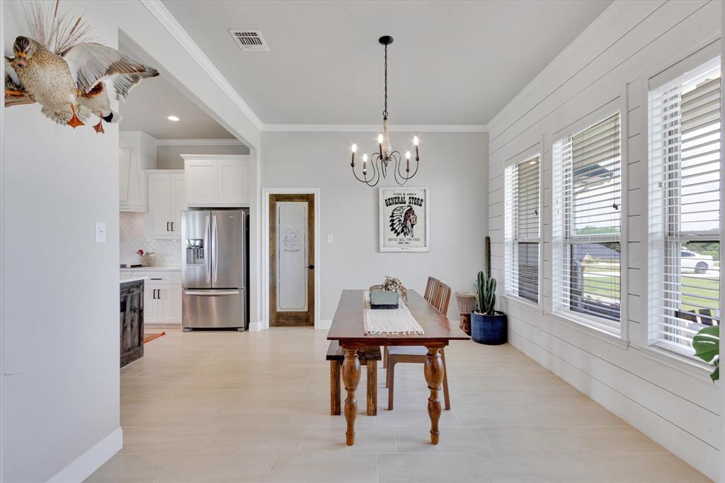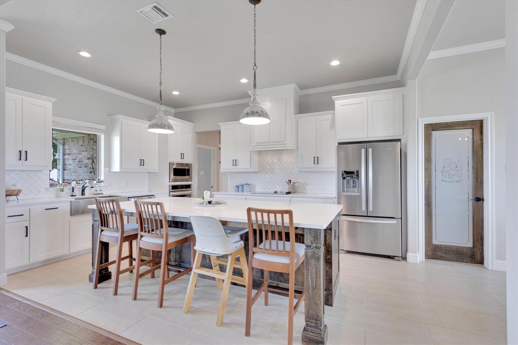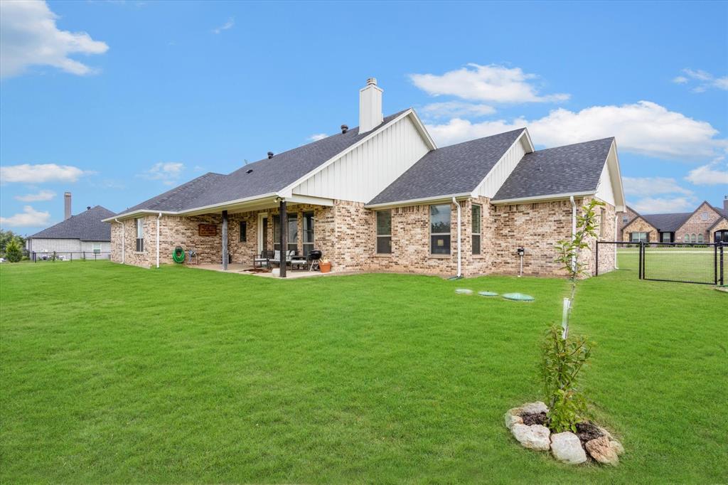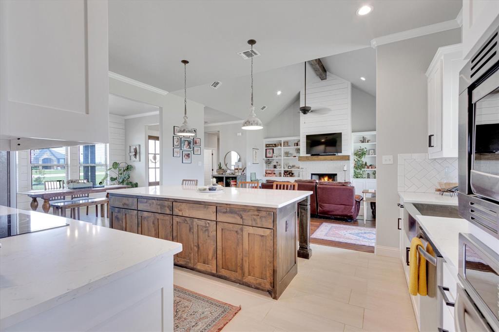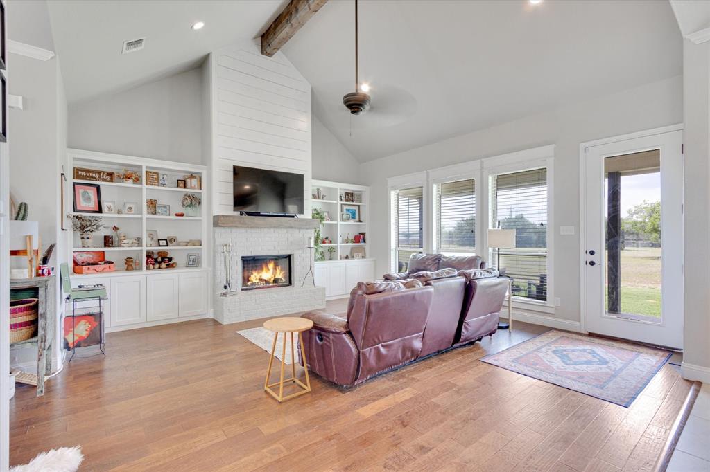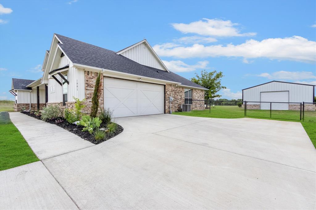 Better hurry this beautiful modern Farmhouse won't last long. It features 4 bedrooms, 2.5 baths, oversized 2 car garage and 30 x 40 12' tall shop. Home sits on 2 wooded acres across the street from a 400+- acre cattle ranch outside the city limits in the wonderful Weatherford School system. Enjoy the open concept living spaces, great for entertaining family and friends. California style kitchen has farm sink, huge pantry, and large island with plenty of room for eating. Quartz countertops throughout. Wonderful wood floor in living room with wood burning fireplace and built-ins. Shiplap walls in living and dining areas. Oversized mudroom is perfect for keeping organized. Double closets in primary bathroom. Nice front and back patios. Now let's get down to business. This workshop has 12' high header with plenty of room for lifts. It's 30x40 with 1 man door and 2 overhead bay doors on two different walls for ventilation. Also has 100 amp service to it with electrical outlets all the way around shop and 8 inch concrete boxes for future auto lift.