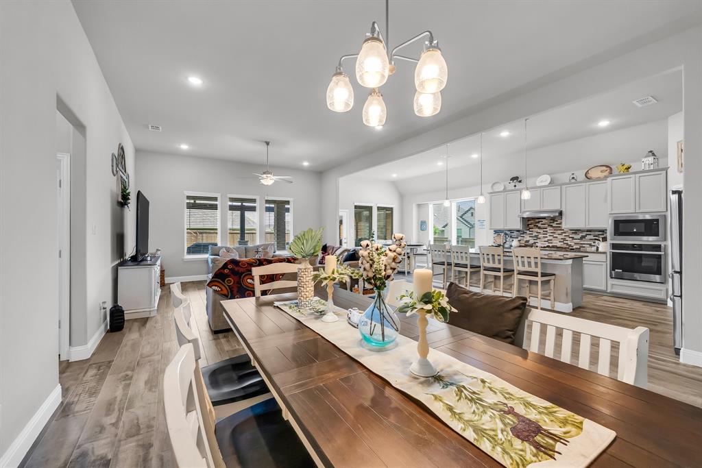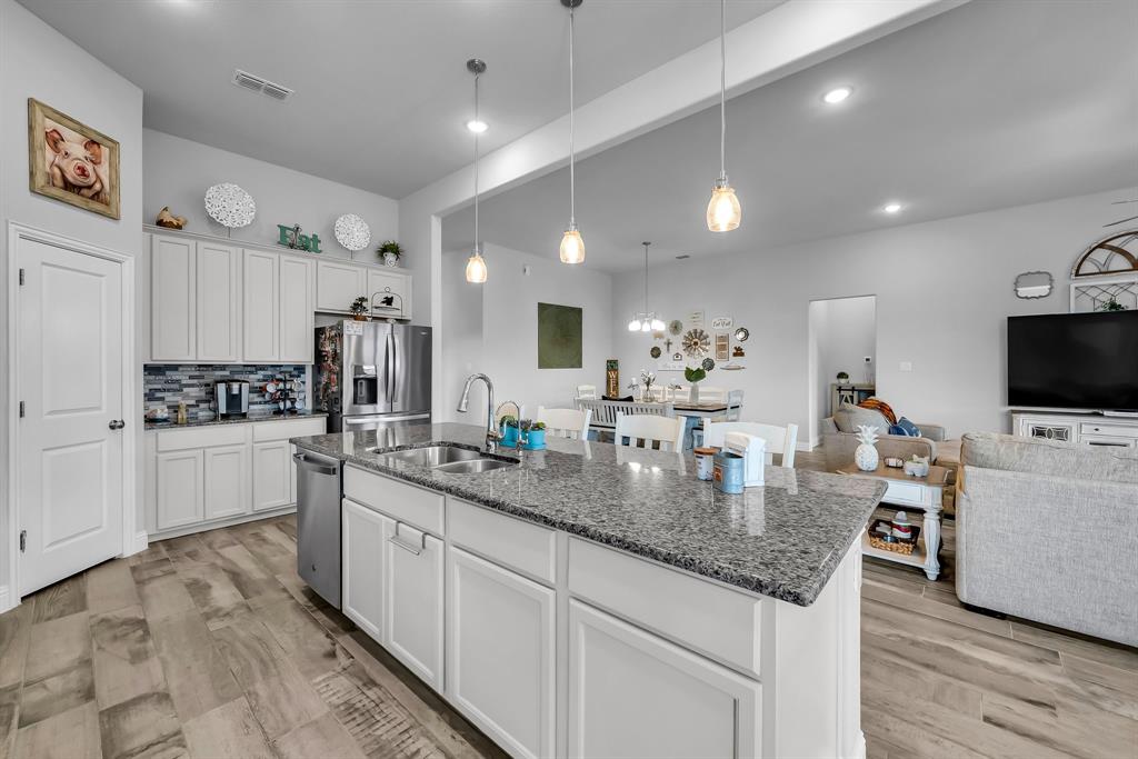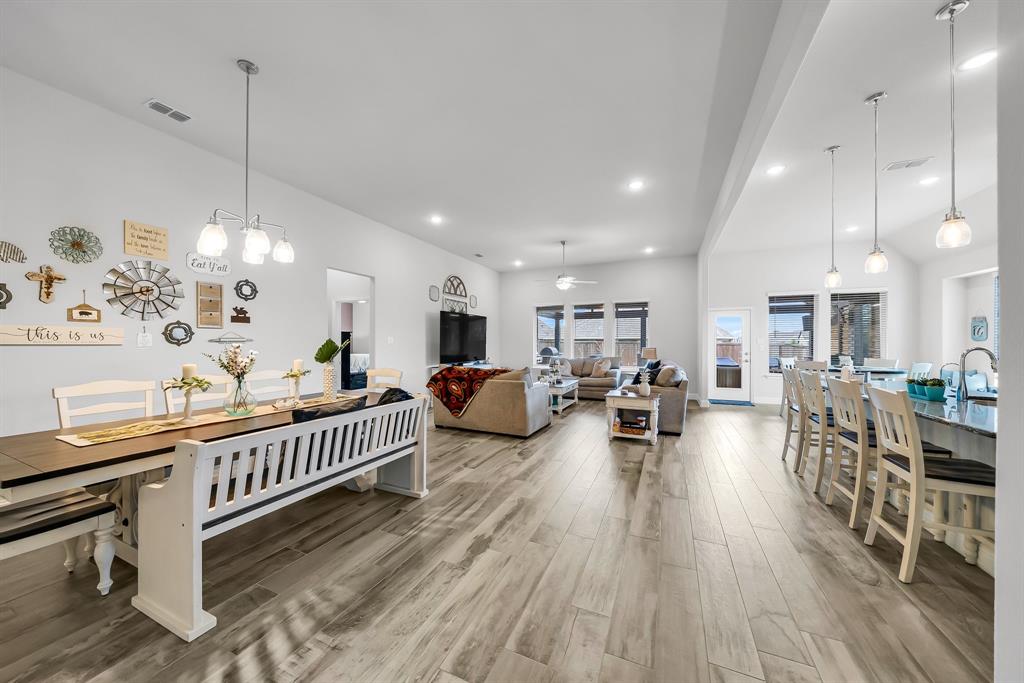Built by MI Homes, This Amazing Beautiful One Story Home has an open Concept of living. The high Ceilings make this home feel grand. Mother in law suite Bedroom with it's own Bathroom is perfect for guests. Two additional bedrooms are on the opposite side with another full bath. The Two Eating areas connect to the Kitchen and Family Room, Large Utility Room and extra Family room is available. Step outside to a Extended Covered Patio with Shutters to protect from Rain or Wind to Stargaze or Cook a BBQ Meal. This is a must See Home, please welcome. Owner is leaving Patio Furniture for New Home Owner.