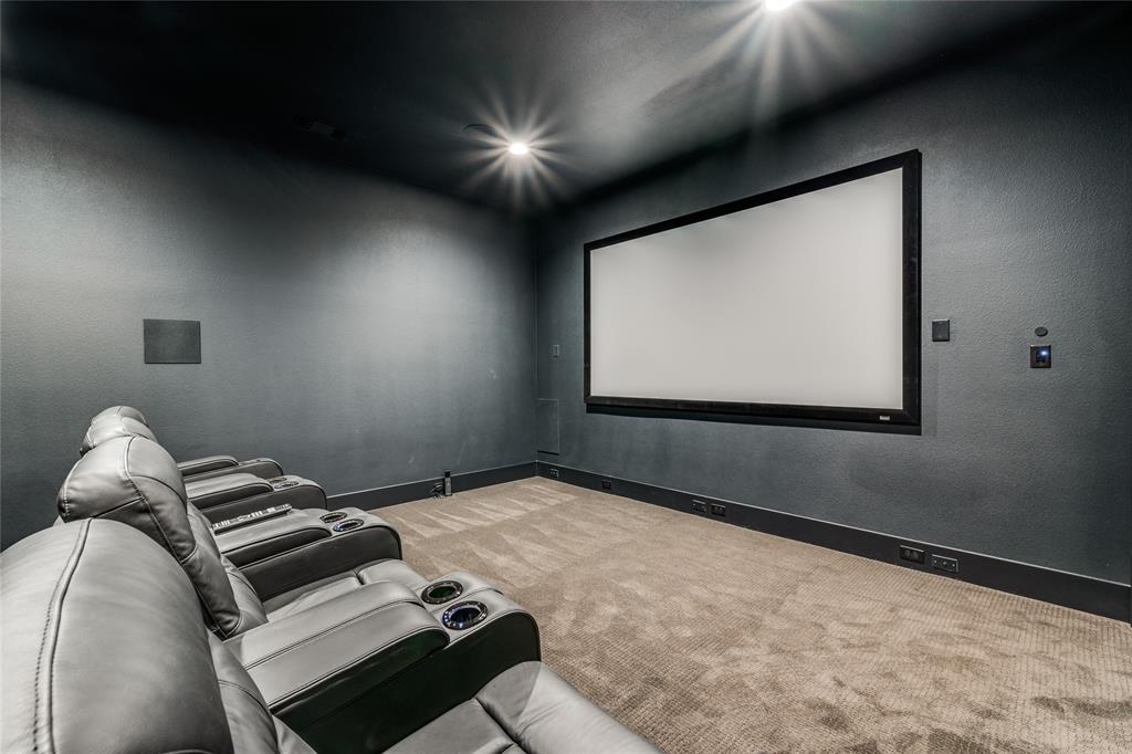 Enjoy movie nights in the media room with a 120 inch screen, Sony projector, and leather recliners. The adjacent activity room with wet bar is ideal for games and entertaining.
