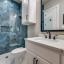 The luxurious primary suite is a retreat with dual walk-in closets, private laundry, coffee bar, and spa-like bath with steam shower, dual vanities, and smart lighting. A hidden bookcase connects two secondary bedrooms, each with walk-in closets and serene views.