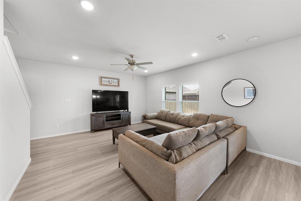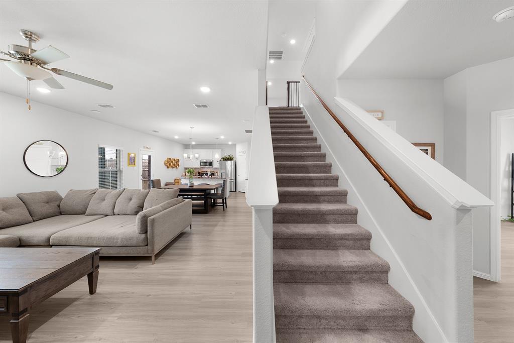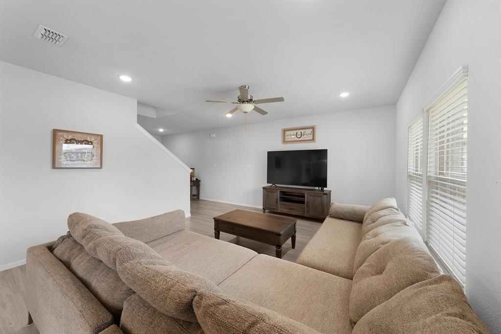 This well-maintained 3-bed, 2.5-bath home features all bedrooms upstairs—including a spacious primary suite with a massive 13x11 walk-in closet, double vanity, and ensuite bath. Two secondary bedrooms share a full bath, and Bedroom 3 includes a rare 6x6 walk-in closet. An oversized upstairs den provides the perfect second living area, game room, or media space—keeping noise away from the main living areas.
