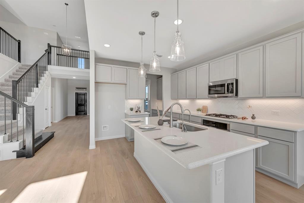 The owner's bedroom retreat on the main level features an en-suite bathroom for privacy and convenience. Upstairs, you'll find additional bedrooms offering comfortable spaces for family members or guests. The heart of this home is the open-concept living area where the kitchen flows seamlessly into dining and living spaces, creating a perfect environment for both everyday living and entertaining guests. M-I Homes has incorporated thoughtful design elements throughout, from the efficient use of space to the selection of premium materials and finishes.