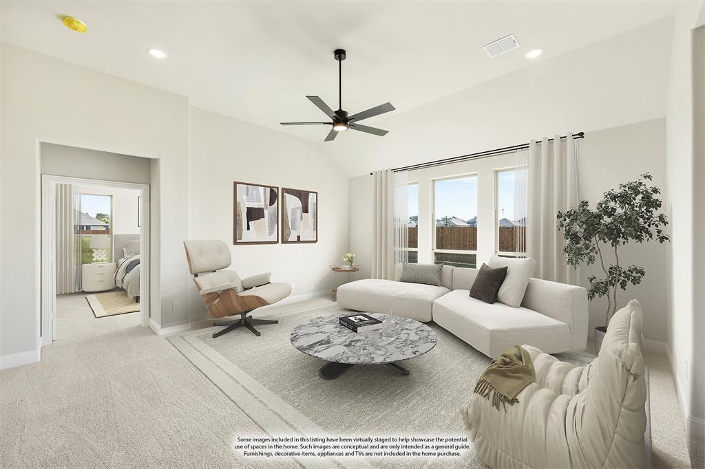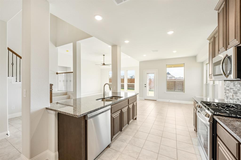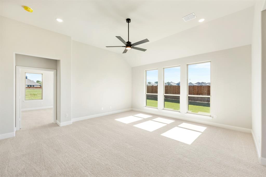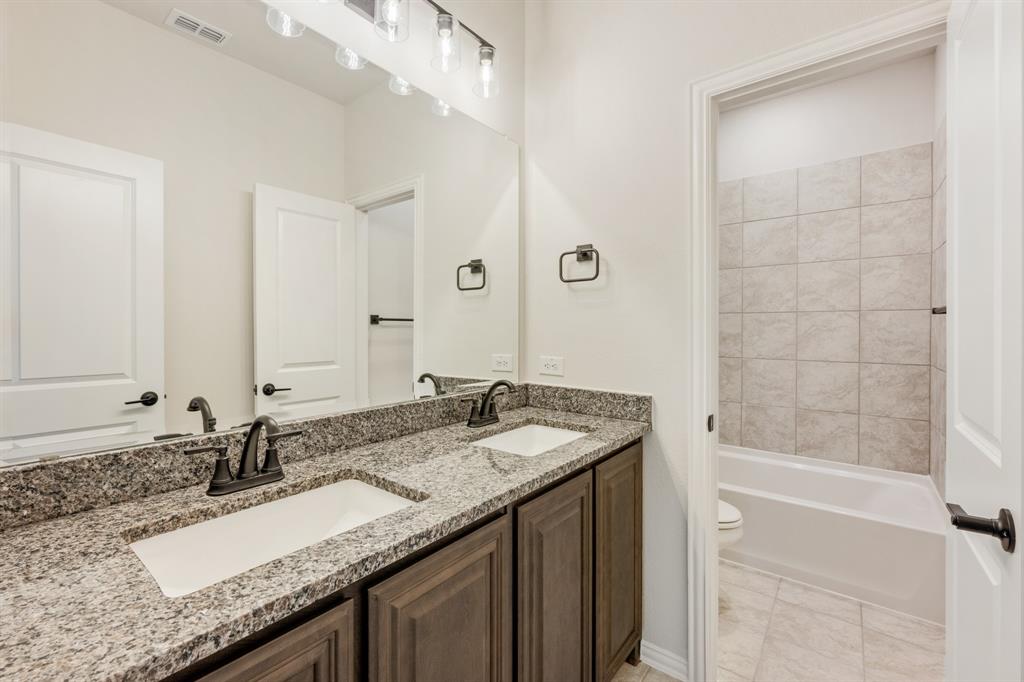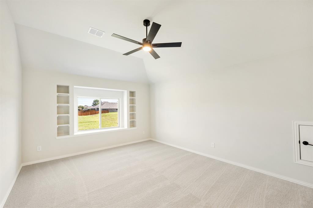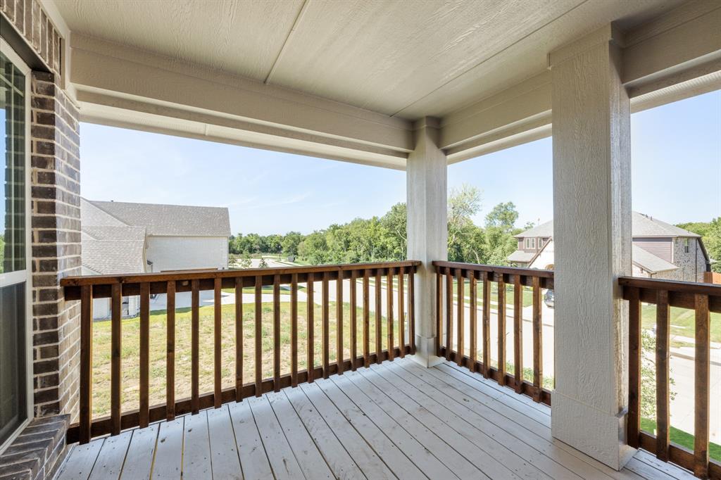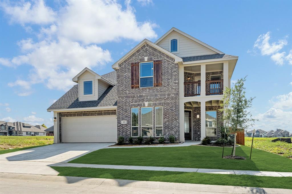 NEW! NEVER LIVED IN. Showcasing 4 spacious bedrooms, luxurious finishes that elevate every space, and a charming front balcony, the Magnolia by Bloomfield offers a perfect blend of comfort and sophistication. Nestled on an interior lot, the home welcomes you with a distinctive all-brick facade accented with brick detailing, stone-edged flower beds, and fresh sod. An 8' Front Door opens into a beautifully tiled extended entry, setting a refined tone from the start. Enjoy outdoor living with a covered front porch, a second-floor balcony off the front elevation, and a covered back patio—ideal for quiet moments or entertaining. The expansive layout includes a first-floor Primary Suite featuring a huge walk-in closet and separate vanities. At the front of the home, a bright Formal Dining Room and private Study with Double French Doors create a polished first impression. Upstairs, the versatile Game Room is surrounded by the secondary bedrooms and opens directly to the balcony for added functionality. Additional enhancements include a convenient downstairs powder bath, gleaming Granite countertops throughout, energy-efficient gas stainless steel appliances, and a tankless water heater. With a prime location near the entrance of the scenic community trail system, this home at Sunset Ridge is thoughtfully designed to exceed expectations—visit Bloomfield today to make it yours.
