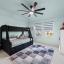 The family room features a high ceiling, floor to ceiling marble fireplace with floating shelves on both sides of the fireplace and glass sliders that lead out to the oversized 90ft backyard.