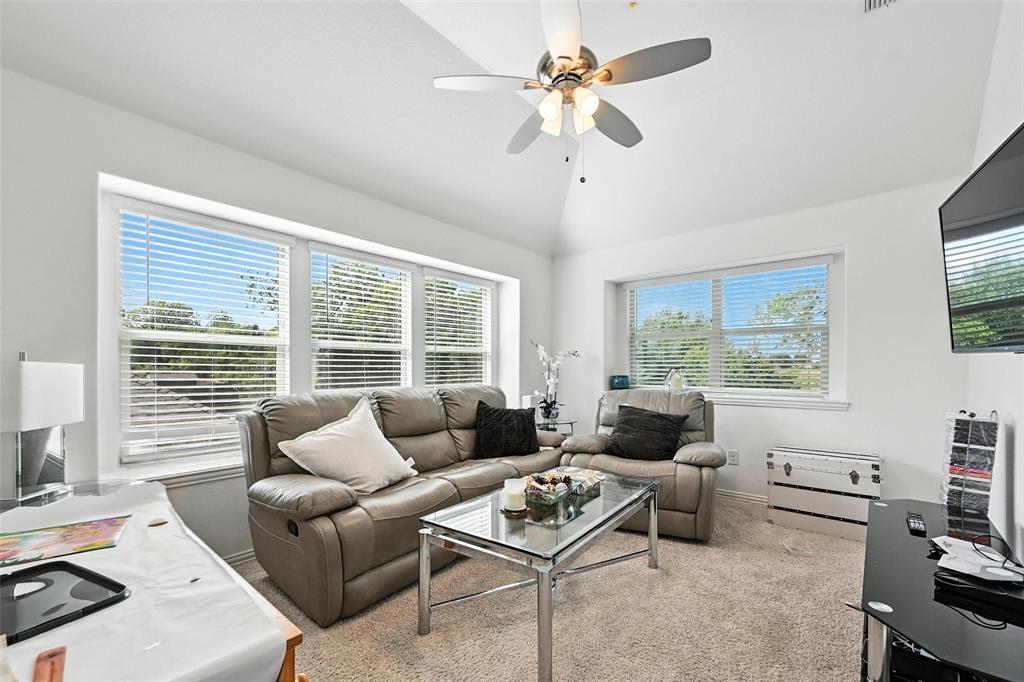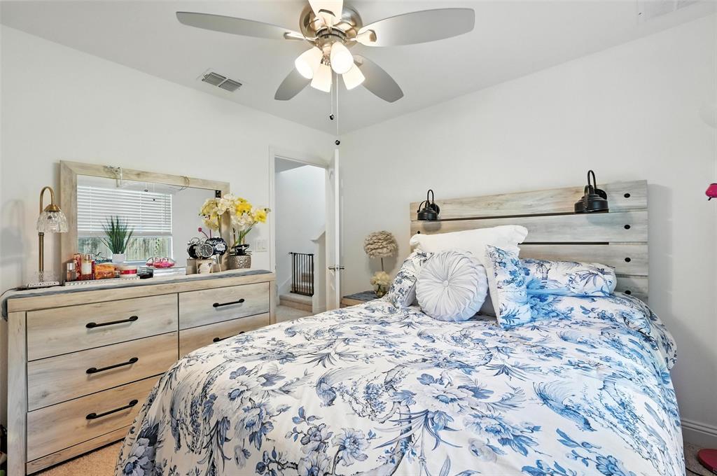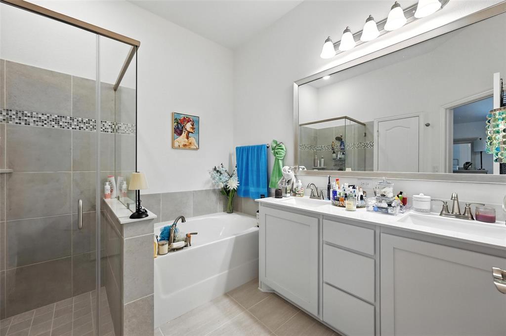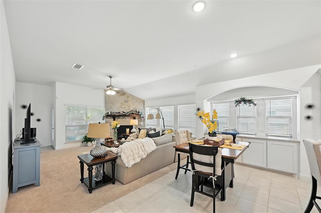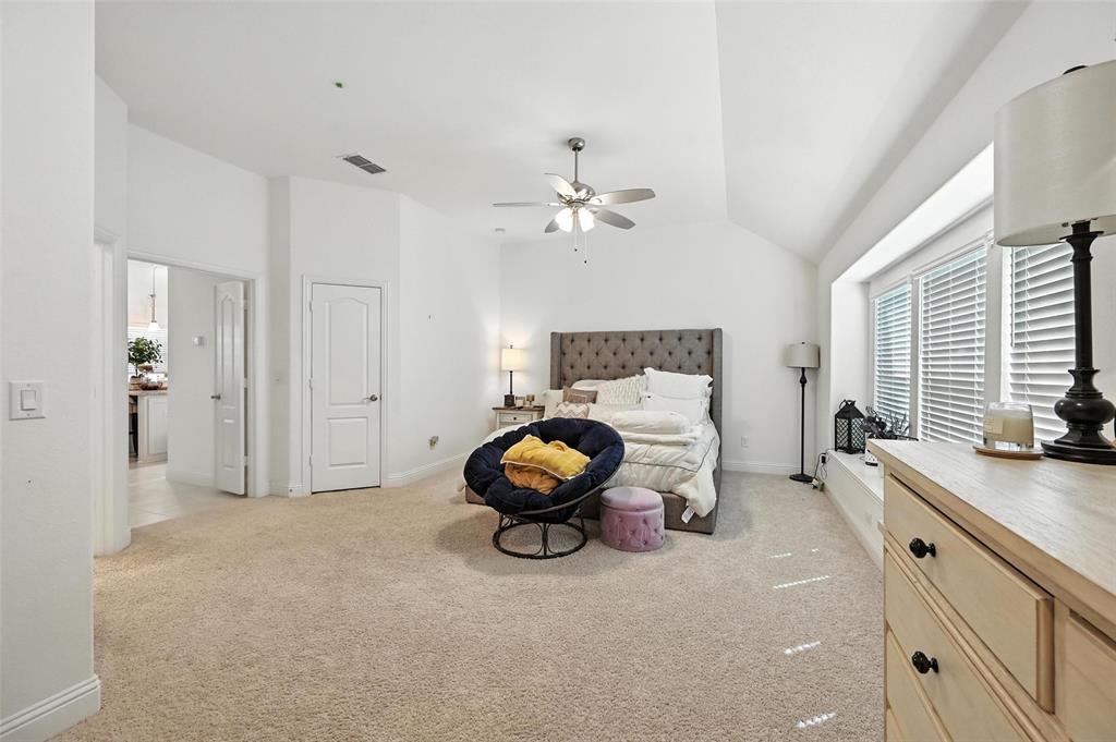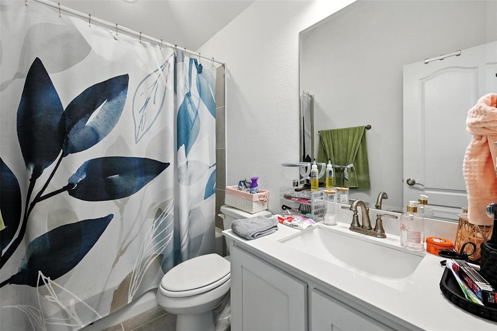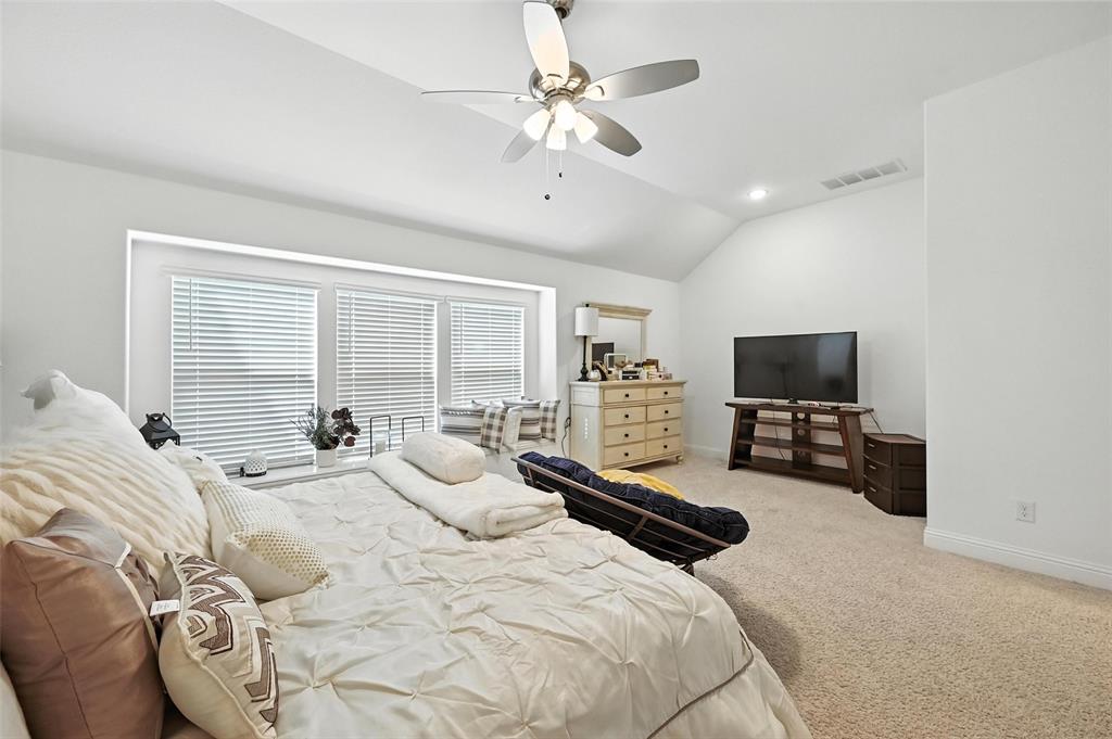 This spacious and beautifully designed home offers room for everyone with 4 bedrooms, 3.5 bathrooms, and a flexible layout perfect for modern living. The inviting exterior boasts stunning curb appeal, while inside, an open-concept floorplan creates a seamless flow between living spaces. The main living room features a striking stone fireplace, and the kitchen is equipped with a gas cooktop, island breakfast bar, stainless steel appliances, built-in microwave, and a custom built-in hutch in the dining area. An office is conveniently located near the front of the home. The primary suite is located downstairs and includes high ceilings, space for a sitting area, a large walk-in closet, and an ensuite bath with dual sinks, a soaking tub, and a separate shower. Two additional bedrooms downstairs offer flexibility for family or guests. Upstairs, you'll find a private bedroom, full bathroom, and a spacious family room—ideal for a guest suite or multigenerational living. Step outside to a large covered patio perfect for summer BBQs and a generous backyard with plenty of space for kids and pets to play. This home combines comfort, function, and charm—don’t miss your opportunity to make it yours!