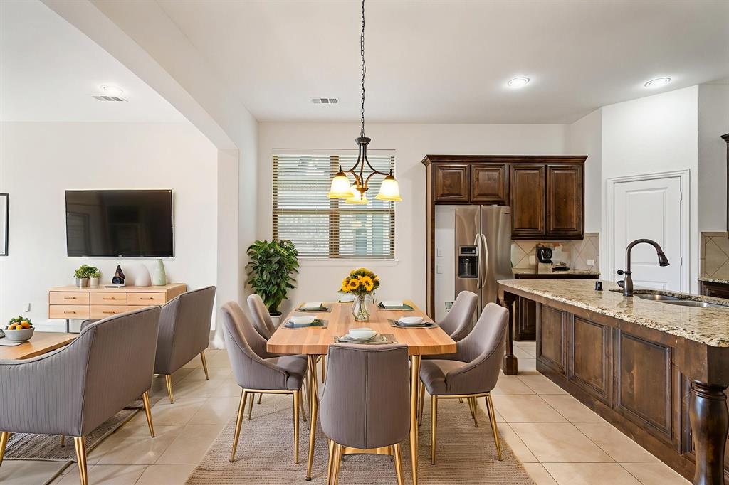 East facing home in Prosper!!! Prestigious Prosper Schools!!! Beauty at its finest in this move in ready home featuring bright open floor plan w 4 bedrooms & 2 baths. Sought after Artesia community is perfect for the families seeking the best education, being part of the highly regarded Prosper ISD. Prime location just a short drive to the new Omni PGA Resort offering world class golf & fine dining. Enjoy fresh paint throughout this home & luxury vinyl plank in the living room and fresh carpet in all bedrooms! Spacious living boasts a cast stone fireplace & great natural lighting. Kitchen features granite countertops, custom 42 cabinets, gas range, SS appliances, tile backsplash & walk-in pantry. Split bedroom design ensures privacy & comfort for everyone in the family. Primary suite is generous in size with double vanities, garden tub, tiled shower, & a walk-in shower. Outside enjoy your spanning covered porch in your private backyard! . Community amenities include 2 pools, fitness center, amenity center, playgrounds, green spaces and hike-bike trails. great location near coveted Prosper ISD schools (and New Richland High School), PGA, DNT, 380, dining, shopping, entertainment, Universal Studios.