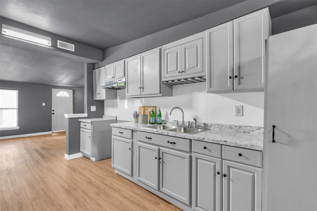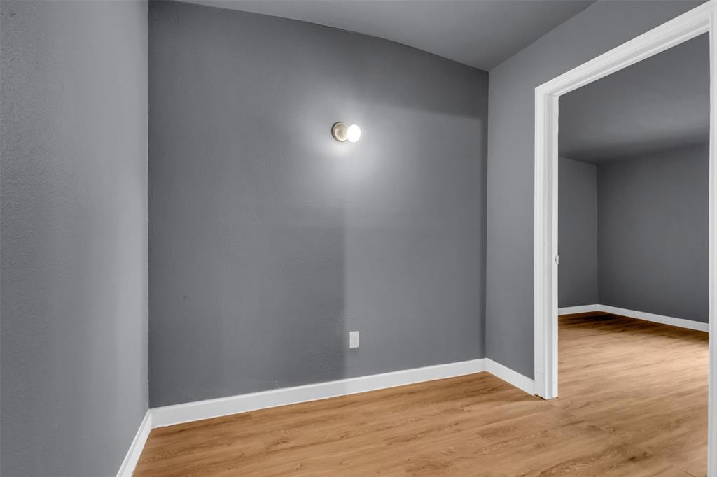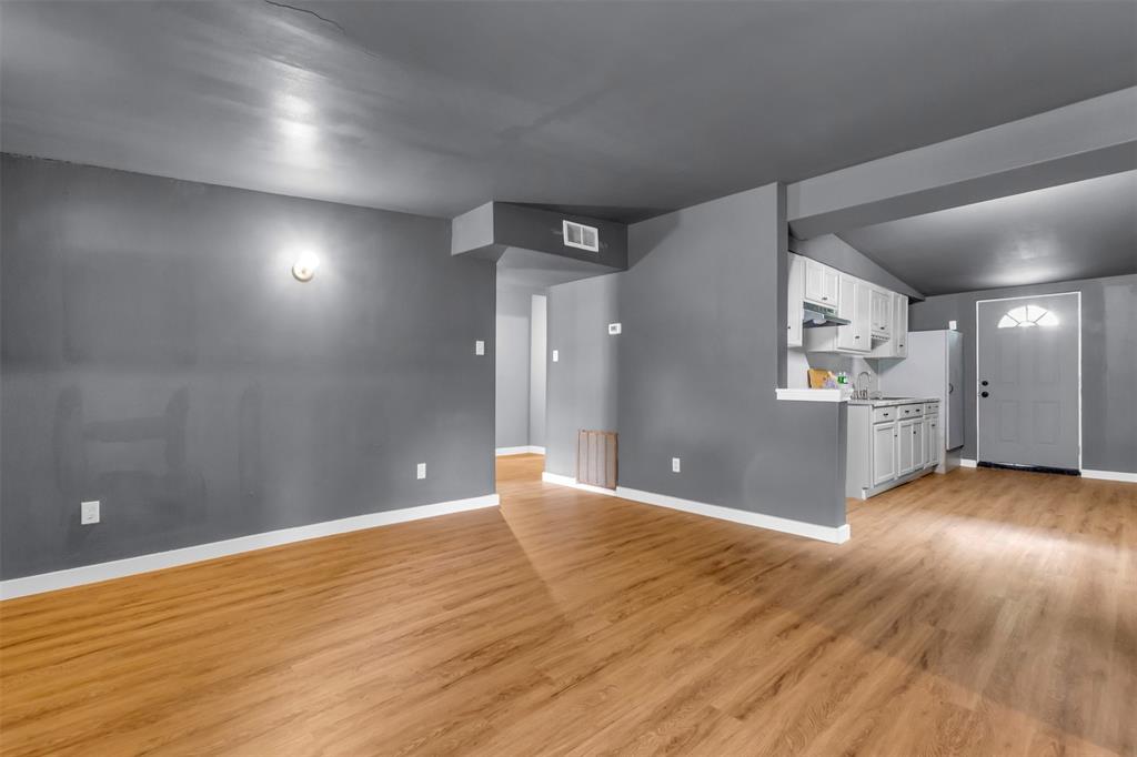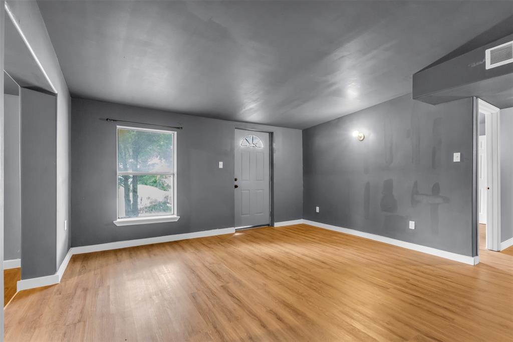 Welcome to this charming and cozy home that’s wonderfully located near the best of Garland's fine dining, shopping and entertainment, such as Firewheel Town Center and the beautifully renovated downtown Garland. Nearby neighborhood parks for family outings and your choice of school's through GISD. This home features brand new luxury vinyl plank flooring with new floor trimming and baseboards, lovely new interior paint color throughout. The kitchen offers updated and painted cabinets, new stylish hardware knobs, new double sided sink and enjoy an open view to the living room while you cook for your family. This home has 3 bedrooms, 1 and half baths thats greatly suited for a starter family or someone looking to downsize. All bedrooms have a fair amount of walk in closet space and enjoy the pleasant and spacious open hallway that could serve as a mud room area for your belongings. The garage conversion completing the 3rd bedroom would be great as the primary room, allowing enough space for a king size bed and a lounging sitting area to watch tv. There's a bonus back house that gives you an additional 400 sqft, to convert into whatever your heart desires, equipped with a secured entry door, lovely high vaulted ceilings, big windows, a chandelier light fixture and an electrical breaker, you will need to install a window or indoor standing ac unit. This would be amazing for an additional family room, an in-law suite, a space to host your family parties, or a 4th bedroom. The front driveway boasts an extended double driveway accommodating 4 car parking spaces, also in substitution for the garage, there's a outside covered storage space on the side of the house with a locked fence to secure your outdoor tools and items along with a small enclosed storage room. Conveniently located to all major roads and highways, don't miss your chance to own this home!
