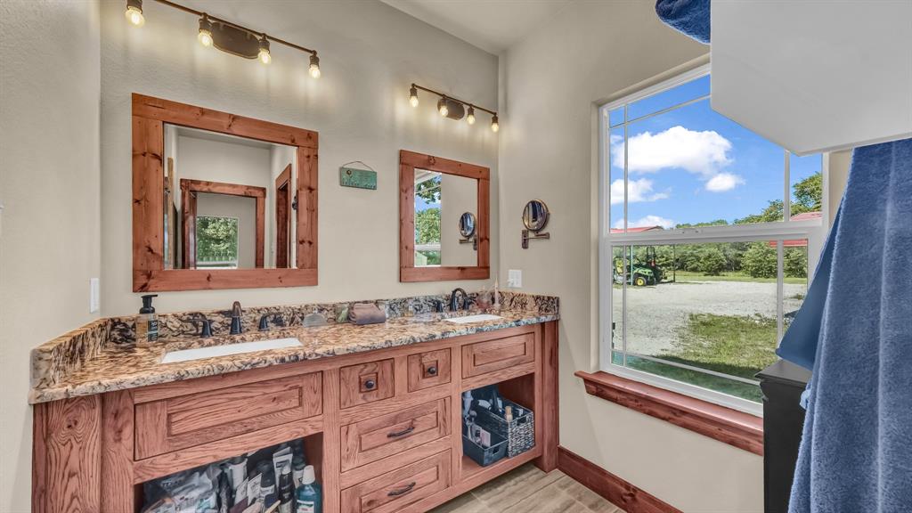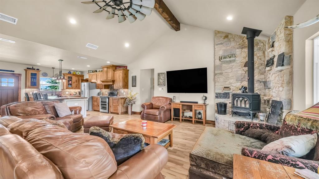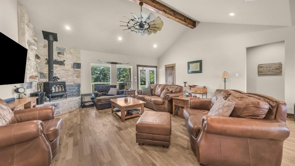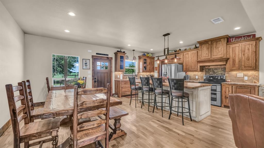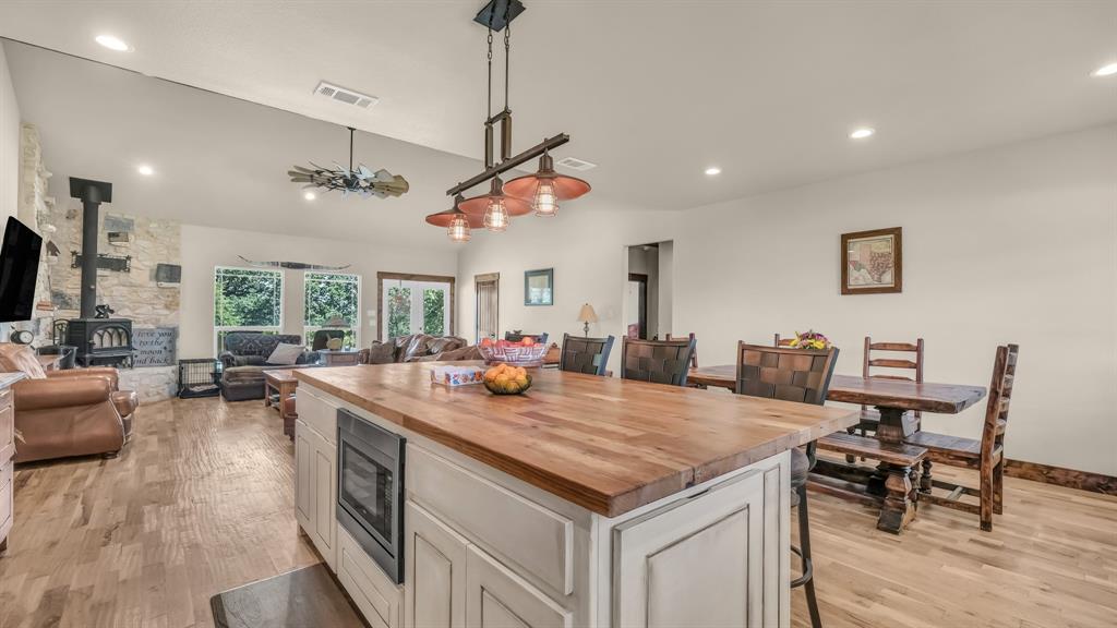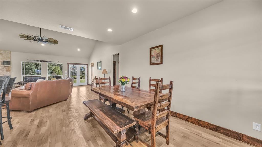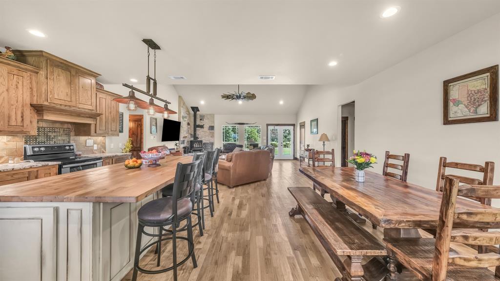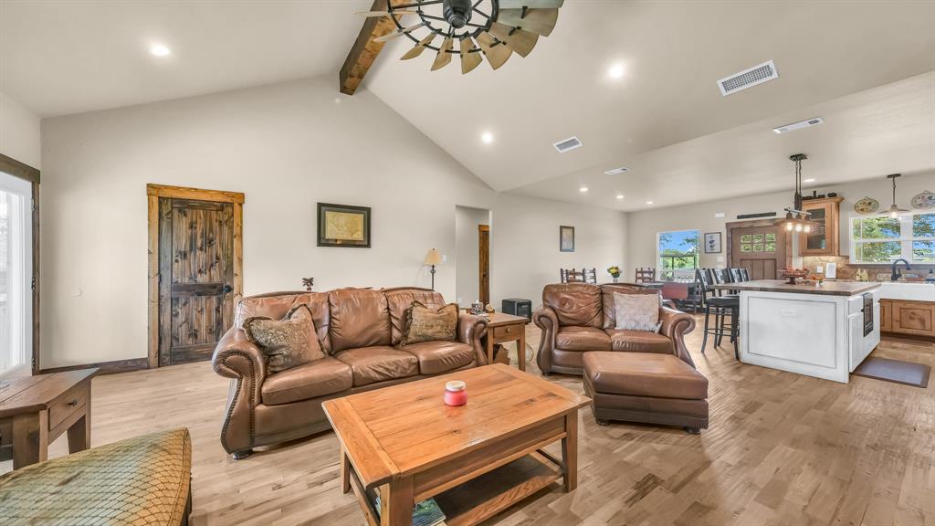 As you turn onto Loggins Trail, the world starts to slow down. Tucked away on over 17 ag-exempt acres in Poolville ISD, this property invites you into a life of space, peace, and purpose. The main home is traditionally built and offers 3 bedrooms, 2.5 bathrooms, and 2,186 square feet filled with thoughtful touches—hand-scraped hardwood floors, granite countertops, custom cabinetry, and an open-concept design perfect for gathering.