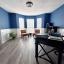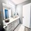 The open and modern living room, accented by a cozy corner fireplace, flows seamlessly into a spacious kitchen with abundant cabinetry, ample counter space, and a cheerful breakfast nook, ideal for entertaining. A formal dining room (or office), laundry room, and powder bath complete the downstairs living space.