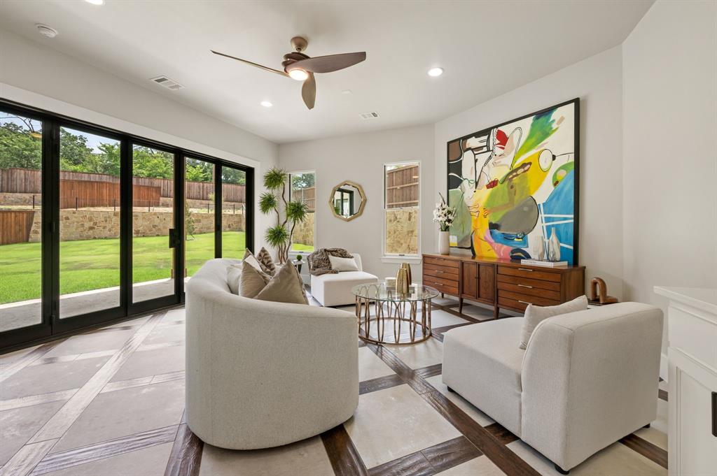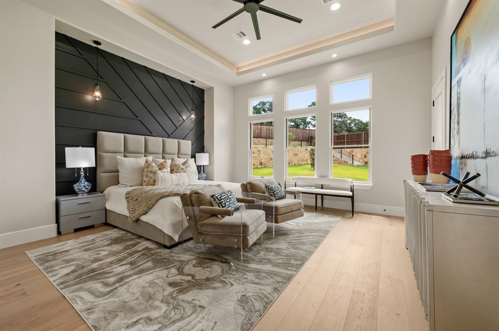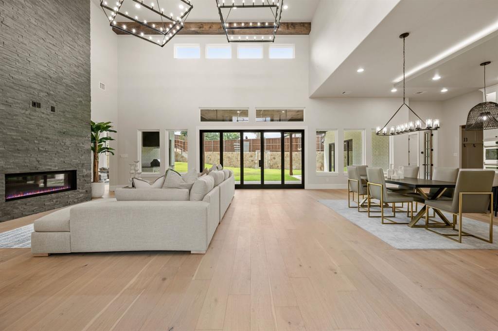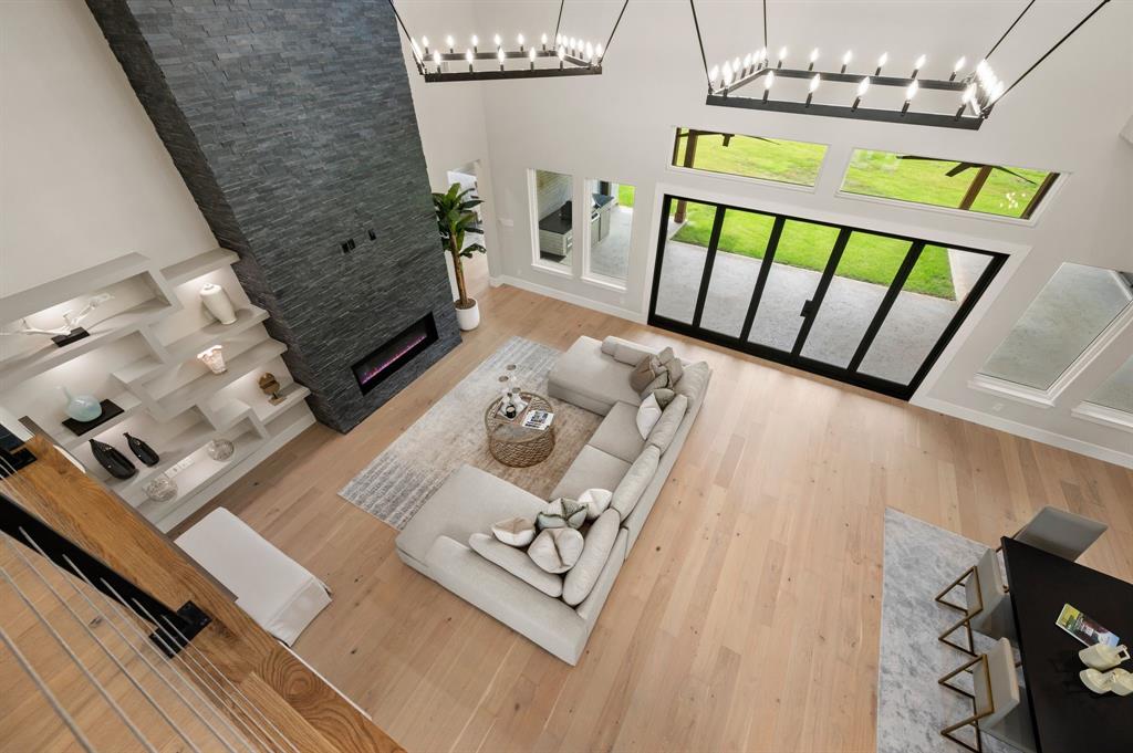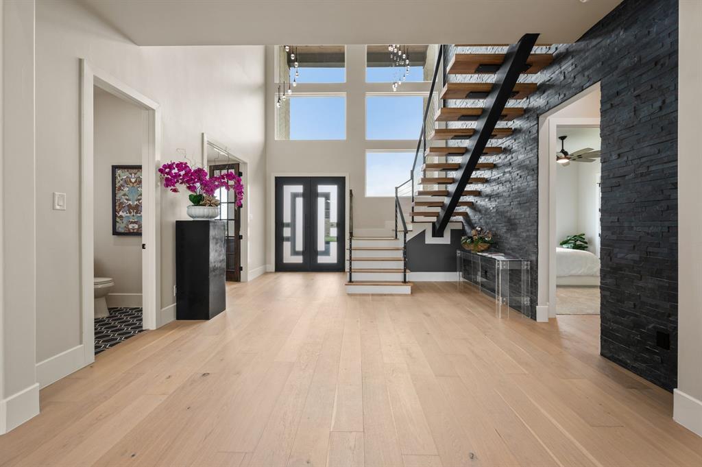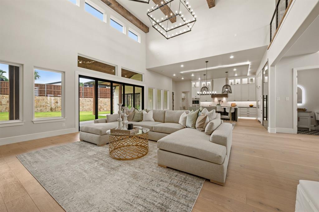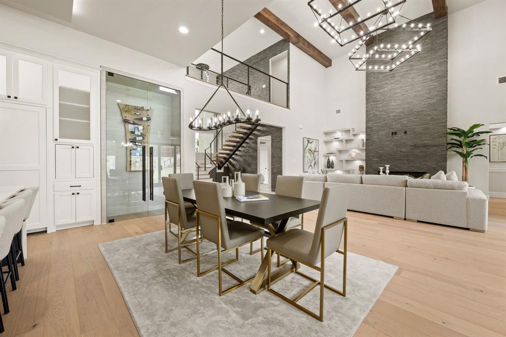 Architectural drama abounds with soaring ceilings—22 feet in the foyer and great room, 13 feet in the primary suite, and 12 feet through the kitchen and dining—creating a grand yet inviting atmosphere in every corner of the home.