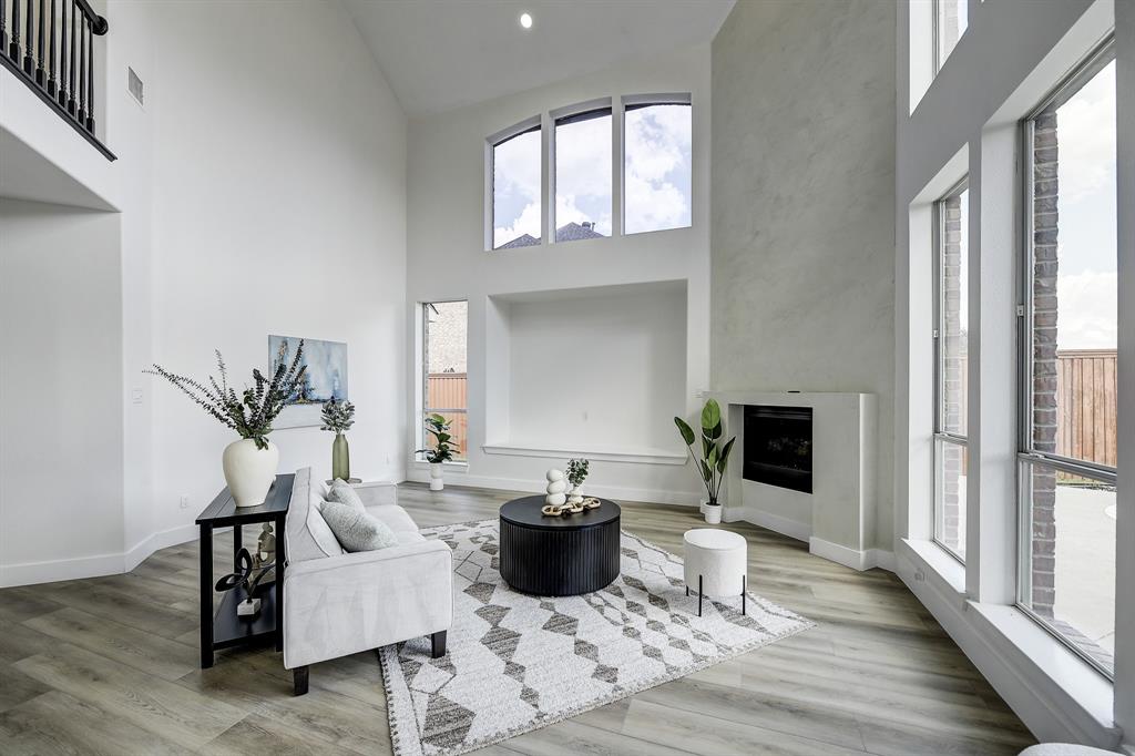 Embrace refined living in the highly sought-after community of Bellegrove. From the moment you step inside, soaring ceilings and gray wood-look luxury vinyl floors set the tone with modern sophistication and timeless elegance. A private office with French doors, a formal dining room framed by dramatic bay windows, and an additional family room near the entry provide both function and style, all tied together by a breathtaking two-story chandelier above the loft.