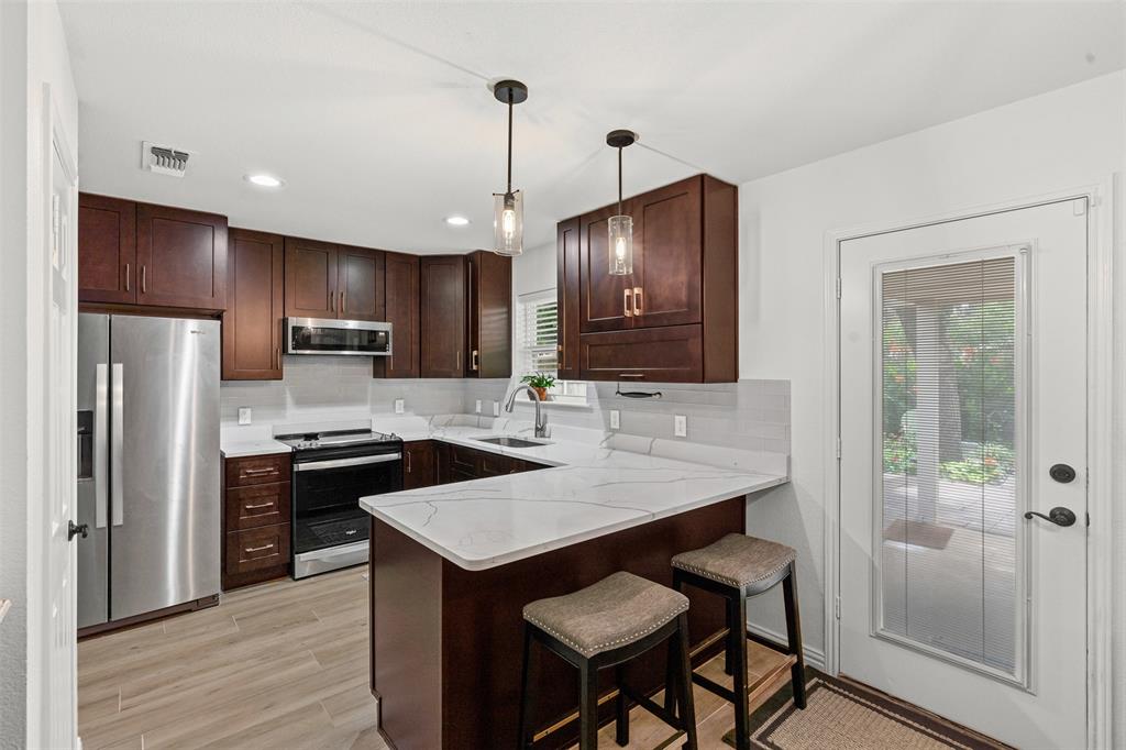 Best value on the market and WOW Stunningly Updated with Exceptional Curb Appeal! This beautifully landscaped home is a showstopper from the moment you arrive. Step inside to discover a completely updated 3-bedroom, 2-bathroom home designed with both style and comfort in mind. The modern kitchen is a chef’s dream, featuring stainless steel appliances, quartz countertops, brand-new cabinetry, and sleek new fixtures. Porcelain tile flooring runs throughout the main living areas, while the bedrooms offer plush, new carpeting for added coziness. Both bathrooms have been tastefully renovated with new vanities, quartz counters, and updated fixtures. Plus, no more popcorn ceilings—this home is fresh, clean, and move-in ready! Enjoy the outdoors in your private backyard oasis, complete with a covered patio, walking pavers, and lush, mature landscaping that surrounds you with natural beauty. Don’t miss this turnkey home with upgrades galore