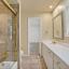 The primary suite offers two generous closets and a beautifully tiled en-suite bath with a marble-topped double vanity, walk-in shower with bench seating, and a separate soaking tub. Additional features include spacious secondary bedrooms, ample storage, and excellent natural light throughout.