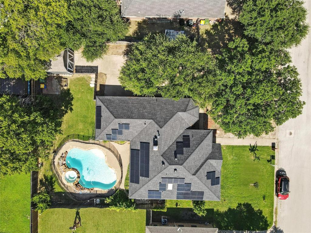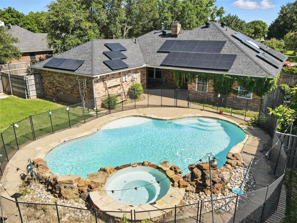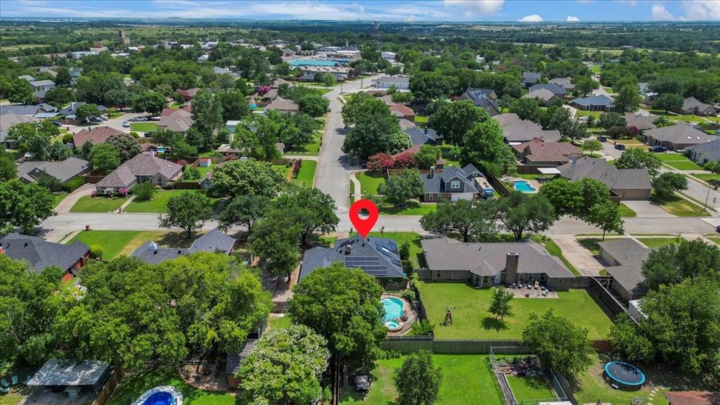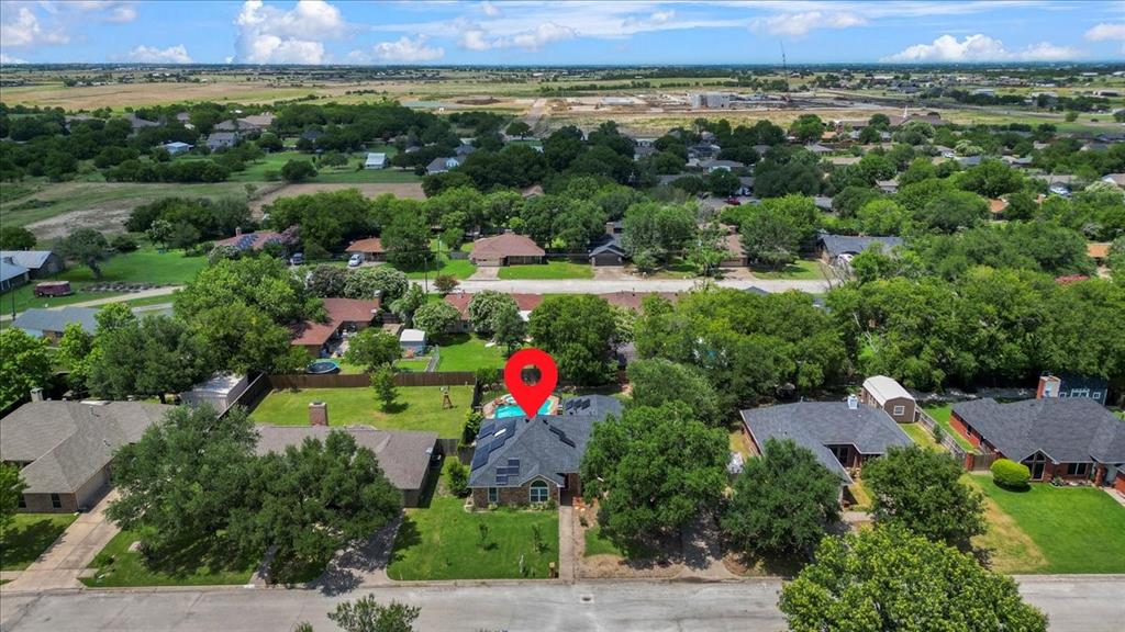 that blends comfort, functionality & style! Another great feature that will save you money on your monthly electric bill is a $43,000 solar panel system that will be paid off at closing at current price. Located on a quiet street in an established neighborhood, this residence features an open, light-filled layout with brand-new kitchen cabinets, quartz countertops, and stainless steel appliances—the refrigerator conveys with the sale. The bathrooms have been tastefully updated with modern vanities, and the primary suite includes a relaxing jacuzzi jetted soaker tub, two walk-in closets, and a private en-suite bath. Durable, waterproof 30-year flooring runs across the home, offering both beauty and peace of mind. Energy-efficient double-hung windows enhance natural light and indoor comfort, while solar panels add an extra touch of practicality. Step outside to your own private backyard oasis featuring a sparkling pool and spa, secured by a 4-foot safety fence. A small covered patio near the entry offers a perfect spot to unwind with views of the water. Recent updates include a new roof in 2023; water heater, hose bibs, garbage disposal, AC plenums, and AC ducts (including an added duct in the primary bedroom), all replaced in November 2022. An extra-large 16’x12’ storage shed provides valuable utility, and the driveway includes a 30-amp RV outlet with plenty of space for an RV and two additional vehicles. This home is just a short walk from the park at the end of the neighborhood and offers easy access to highly rated Krum ISD schools, dining & shopping in downtown Krum. Razor Ranch is only 15 minutes away, I-35 is close by, putting Denton and the greater DFW area within a convenient drive. This move-in ready home is a must-see, offering thoughtful upgrades and inviting outdoor spaces ideal for both relaxation and entertaining.
