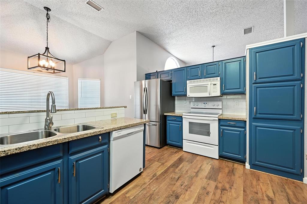 VA Assumable loan with a 2.8 interest rate! Thoughtfully updated 3br 2a home in an established North Richland Hills neighborhood, walking distance to Cross Timbers Park! As you first walk in, you will feel the warmth of the neutral gray paint colors through the combined living and dining room area, which also feature a gas burning fireplace for cold winter nights. This move-in ready home has no carpet and features spill defense laminate flooring throughout the main living areas, kitchen and bedrooms. The kitchen has modern blue cabinetry paired with light granite countertops and an eat-in area leading to the backdoor. The spacious, primary bathroom features a modern separate bathtub and shower with glass doors. Large backyard has a covered patio and mature trees to offer plenty of shade and space to enjoy. Roof replaced in Dec 2020. Located in sought after Birdville ISD! Conveniently located off Rufe Snow and not too far from the TexRail SmithField Station. Fridge is negotiable!