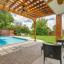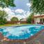 Recent updates include fresh interior paint, vinyl plank flooring, fence stain, sprinkler system with warranty, MyQ garage door opener, pool vacuum, and upstairs heater (2025). Additional improvements: 3-year-old roof, 2-year-old pool equipment, Nest thermostat, and modern kitchen appliances.