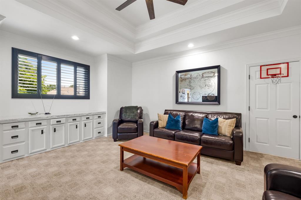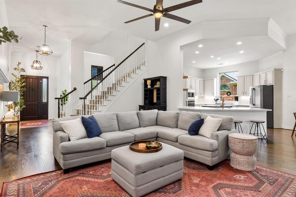 This stunning residence is located in desirable Riverchase Estates neighborhood in Coppell, Tx. Boasting an impressive 3307 square feet, this home offers ample space for comfortable living. Meticulously renovated, this two-story home features designer finishes, beautiful light fixtures, and hardware accents throughout, with a floor plan that flows seamlessly from room to room. You are welcomed by hardwood floors, soaring ceilings, and an elegant formal living and dining areas that set the tone for both entertaining and everyday living. The chef’s kitchen features a beautiful island with quartz counters, stainless steel appliances, open shelving and abundance of storage. The open layout seamlessly connects the kitchen to the living area, creating a welcoming space for relaxation and entertainment. The main level hosts the primary bedroom, providing a serene retreat with its luxurious en-suite bathroom. A secondary bedroom and full bath are also located on the first level, ideal for guests or a private home office. Upstairs you will find two additional bedrooms with an impressive game room, and a flexible bonus space that works well as a study nook or reading room. The exterior of the home is equally impressive, featuring a covered patio perfect for entertaining. The home is just moments from walking and biking trails, Riverchase Golf Club, and offers convenient access to shopping, dining, and major highways for an easy commute across the metroplex. This neighborhood is zoned to Carrollton-Farmers Branch ISD and is also approved for open enrollment in Coppell ISD.