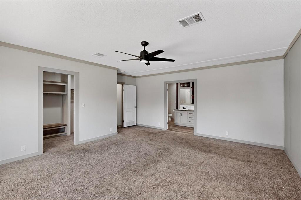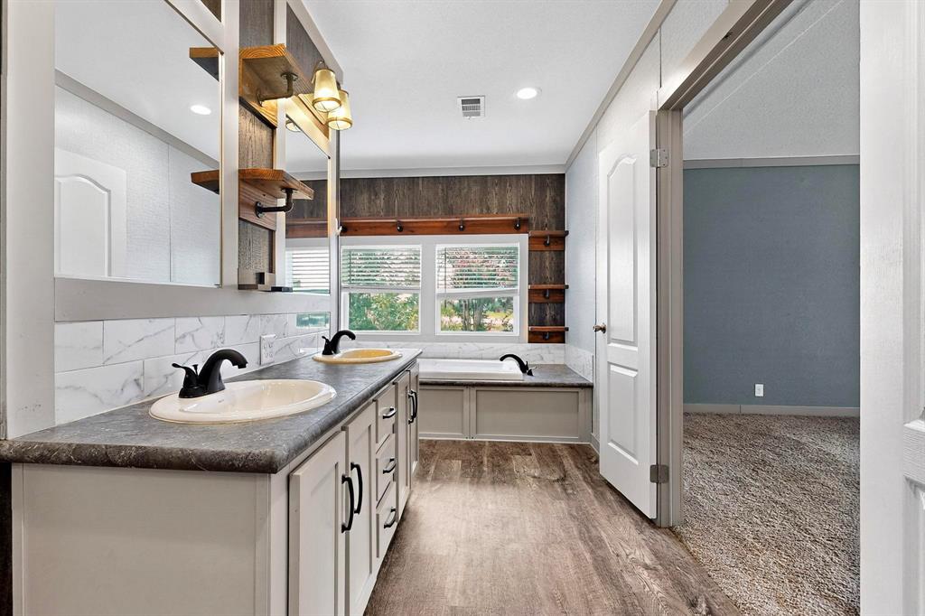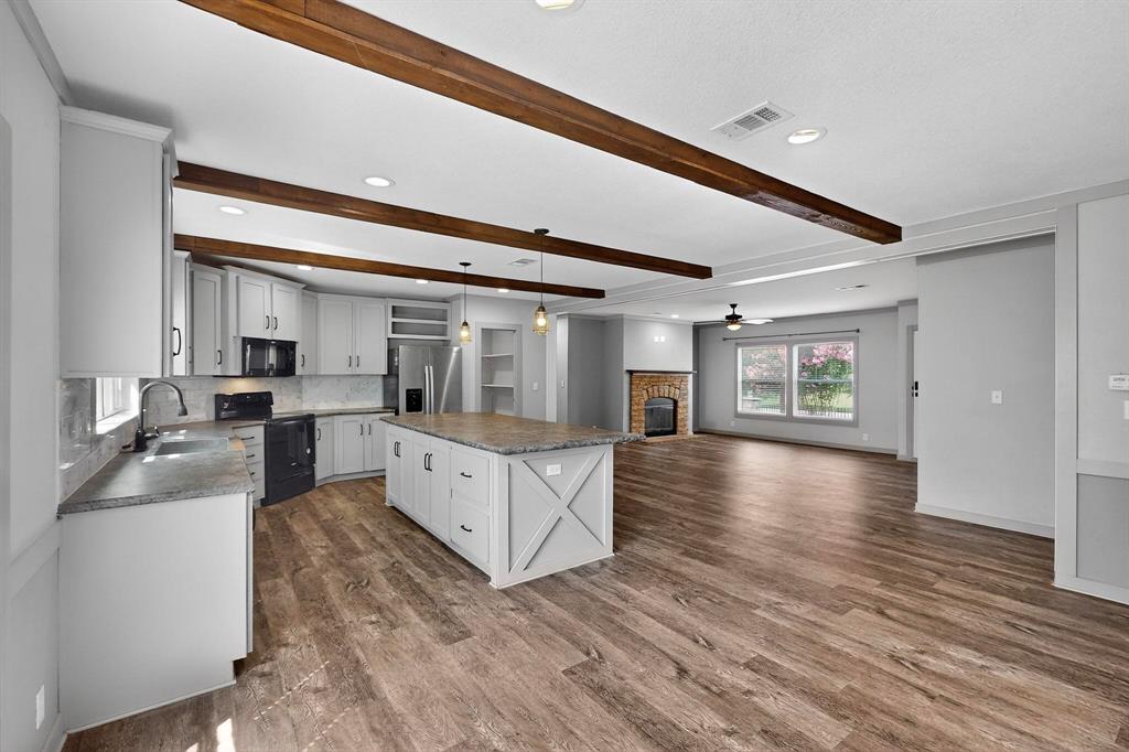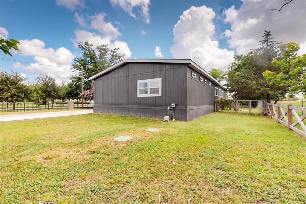 Introducing the premier 2021 Palm Harbor Magnum model-the largest floor plan in its class and thoughtfully enhanced with top-tier upgrades throughout. Nestled on over an acre, this remarkable property includes a 1-car detached garage with an adjoining workshop or storage area, and an efficient aerobic septic system. Step inside to an open, light-filled floor plan where rustic charm meets modern elegance. The expansive living room features a wood beam ceiling and a striking stone-front wood-burning fireplace, creating a warm and inviting gathering space. The kitchen is a chef’s dream, boasting a generous island with breakfast bar, sleek stainless steel farmhouse sink, stylish fixtures, and ample cabinetry—all designed for both beauty and functionality. The layout offers versatile living with a split-bedroom design, including a spacious game or media room perfect for entertaining or relaxing. The fourth bedroom functions beautifully as a second master suite, complete with its own private ensuite bath—ideal for multi-generational living or guests. The luxurious primary suite is a true retreat, showcasing a spa-like bath with a jetted soaking tub, separate shower, dual vanities, and an impressive trio of walk-in closets. Recent updates include fresh neutral-toned paint and luxury vinyl plank flooring throughout most of the home, with cozy carpeted bedrooms providing comfort underfoot. The property spans two separate lots totaling approximately 1.05 acres—0.4 acre with the home and an additional 0.65-acre parcel behind, accessible via Cade Ct and divided by a chain-link fence. Both parcels are grandfathered under agricultural zoning, allowing for various types of farm animals (buyer to verify with City of Mesquite). A recent market analysis estimates the rear lot alone could be valued between $125k-130k if sold separately. Don’t miss this rare opportunity to own a spacious, upgraded home with acreage and investment potential—just minutes from the heart of Mesquite!