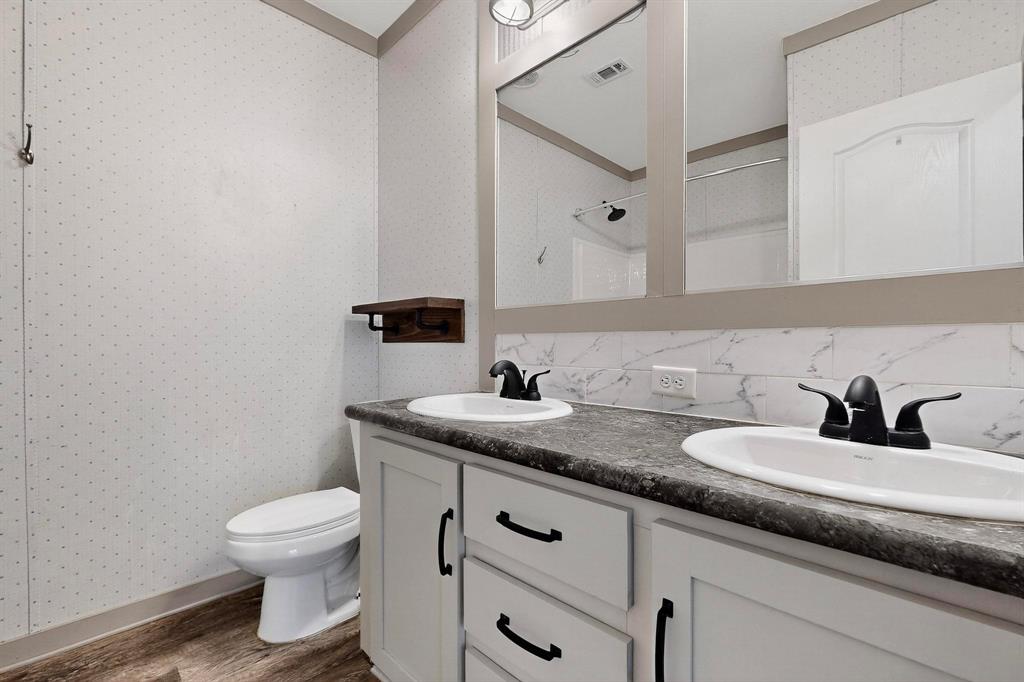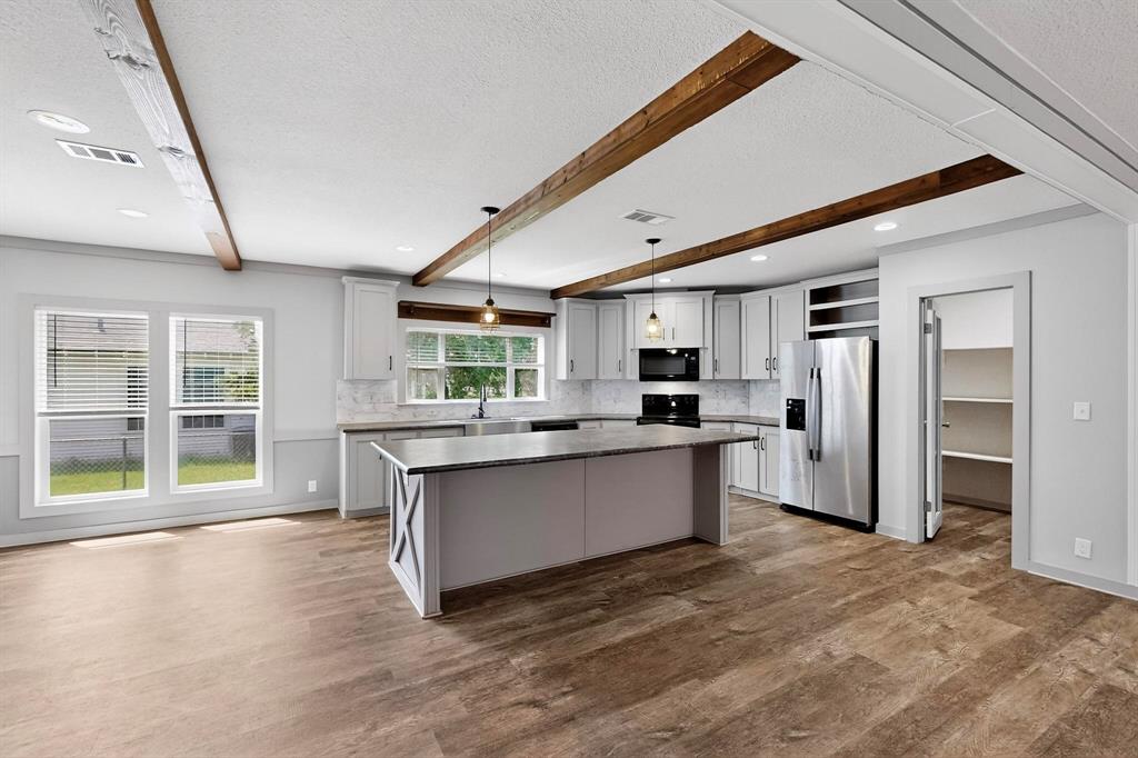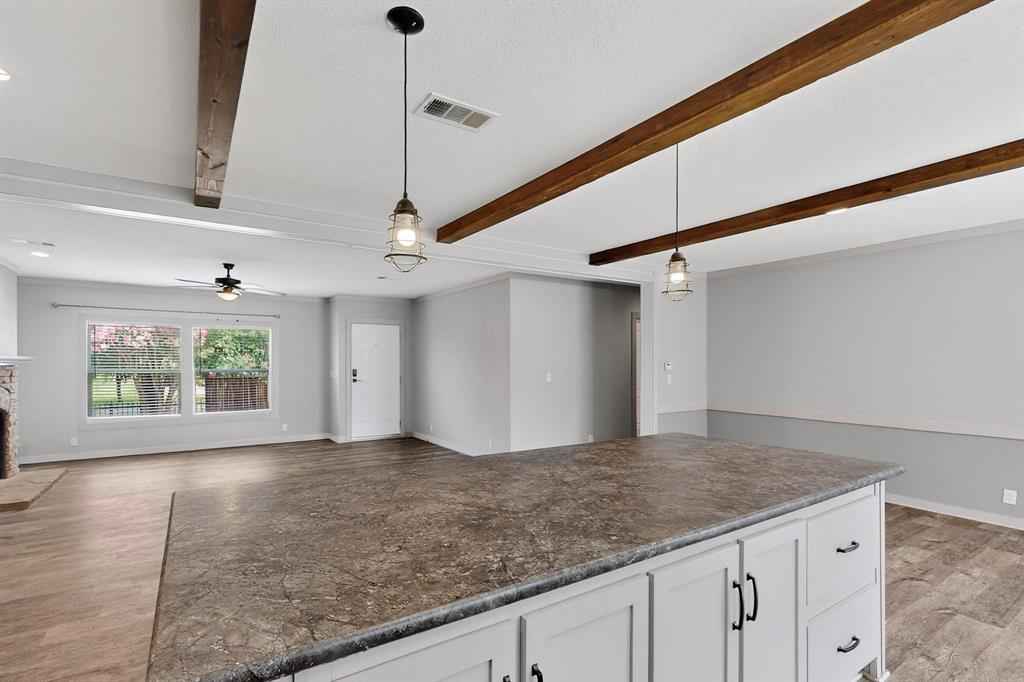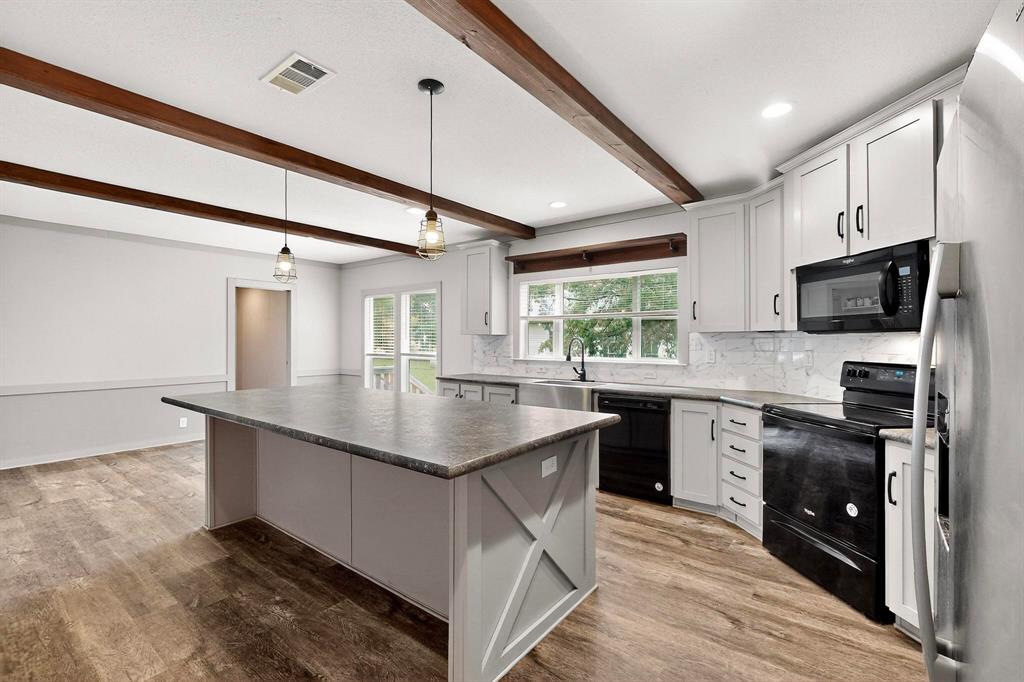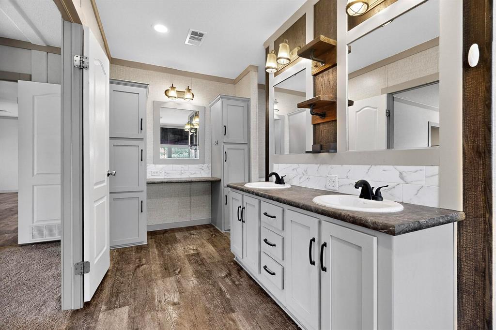 Introducing the premier 2021 Palm Harbor Magnum model-the largest floor plan in its class and thoughtfully enhanced with top-tier upgrades throughout. Nestled on over an acre, this remarkable property includes a 1-car detached garage with an adjoining workshop or storage area, and an efficient aerobic septic system. Step inside to an open, light-filled floor plan where rustic charm meets modern elegance. The expansive living room features a wood beam ceiling and a striking stone-front wood-burning fireplace, creating a warm and inviting gathering space. The kitchen is a chef’s dream, boasting a generous island with breakfast bar, sleek stainless steel farmhouse sink, stylish fixtures, and ample cabinetry—all designed for both beauty and functionality. The layout offers versatile living with a split-bedroom design, including a spacious game or media room perfect for entertaining or relaxing. The fourth bedroom functions beautifully as a second master suite, complete with its own private ensuite bath—ideal for multi-generational living or guests. The luxurious primary suite is a true retreat, showcasing a spa-like bath with a jetted soaking tub, separate shower, dual vanities, and an impressive trio of walk-in closets. Recent updates include fresh neutral-toned paint and luxury vinyl plank flooring throughout most of the home, with cozy carpeted bedrooms providing comfort underfoot. The property spans two separate lots totaling approximately 1.05 acres—0.4 acre with the home and an additional 0.65-acre parcel behind, accessible via Cade Ct and divided by a chain-link fence. Both parcels are grandfathered under agricultural zoning, allowing for various types of farm animals (buyer to verify with City of Mesquite). A recent market analysis estimates the rear lot alone could be valued between $125k-130k if sold separately. Don’t miss this rare opportunity to own a spacious, upgraded home with acreage and investment potential—just minutes from the heart of Mesquite!