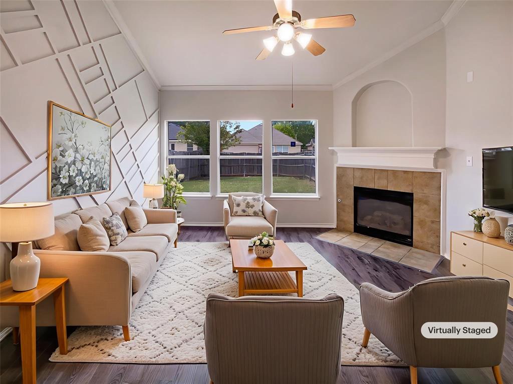 Fantastic home in sought after location! This home has Fresh Interior Paint, Fresh Exterior Paint, Partial flooring replacement in some areas. A fireplace and a soft neutral color palette create a solid blank canvas for the living area. You'll love cooking in this kitchen, complete with a spacious center island and a sleek backsplash.In the primary bathroom you'll find a separate tub and shower, plus plenty of under sink storage. The fenced in backyard and sitting area gives you the perfect private area to enjoy the outdoors. Hurry, this won’t last long! This home has been virtually staged to illustrate its potential.. 100-Day Home Warranty coverage available at closing
