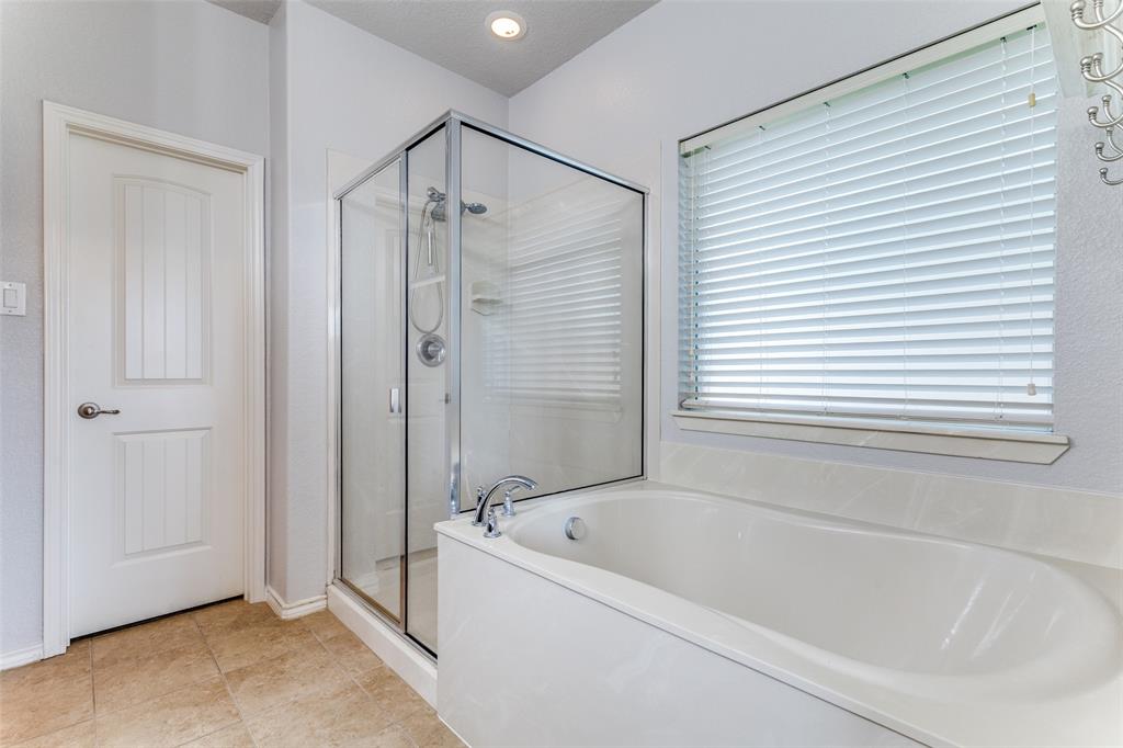 The main-level primary suite includes a garden tub, separate shower, dual sinks, and a walk-in closet.