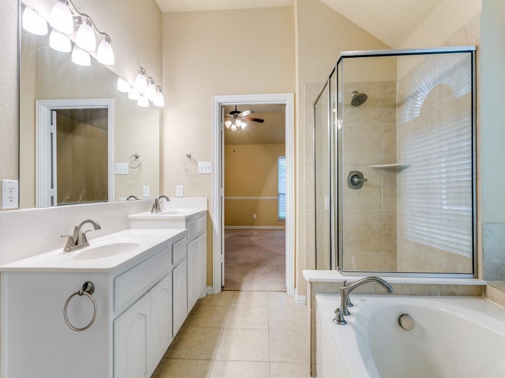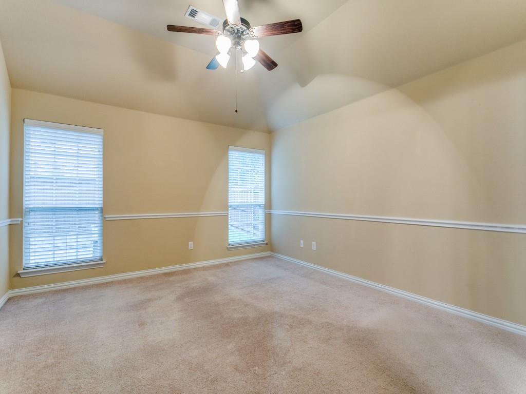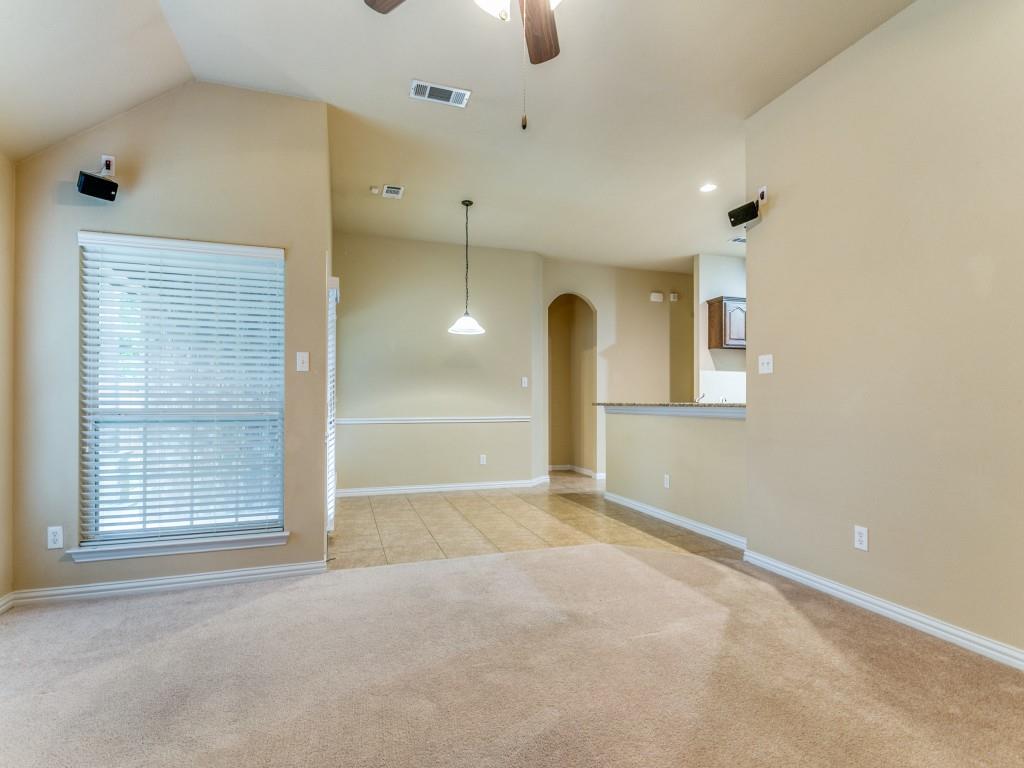 Well cared for, ONE-STORY HOME, clean, fresh interior paint, ready for new owners, and a quick close if needed. The painting was done after the pictures were taken, so come take a look! Subdvision is across Bellaire Blvd. from FOUNDERS CLASSICAL ACADEMY in Lewisville. Go online for more information about this amazing campus. Extensive tile floors are easy to take care off. Carpet has been professionally cleaned. The large patio is perfect for entertaining, furniture not included. Kitchen has beautiful cabinets, granite counters, and walk-in pantry. Home has security system. The monitoring is paid for through November, surround sound speakers in Family Room, full sprinkler system, updated fence with steel posts, and ceiling fans in almost every room. Lovely art niches provide an upgraded feel. Need a HOME OFFICE? Nice office on front of home provides additional space. Master suite is on the back of home with ensuite bath and generous closet. Garage has metal racks to provide added storage. Community pool provides summer fun! Located 4 minutes away is one of Lewisville's newest attractions, THRIVE, an amazing multi-purpose recreational facility that has activities and opportunities for everyone. THRIVE is attached to Memorial Park and the extensive city trail system! Great location with easy access to I35E, Hwy. 121 Sam Rayburn Tollway, I635 and Hwy. 114. Home will be professionally cleaned before buyer takes possession.