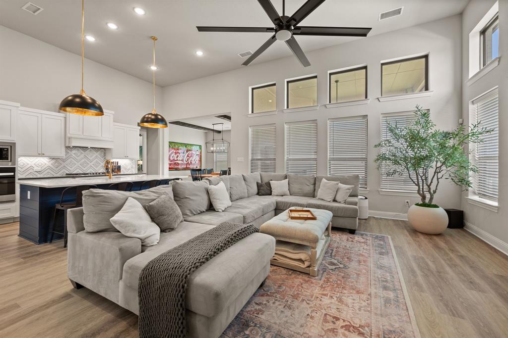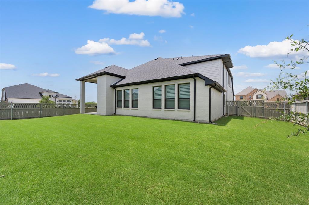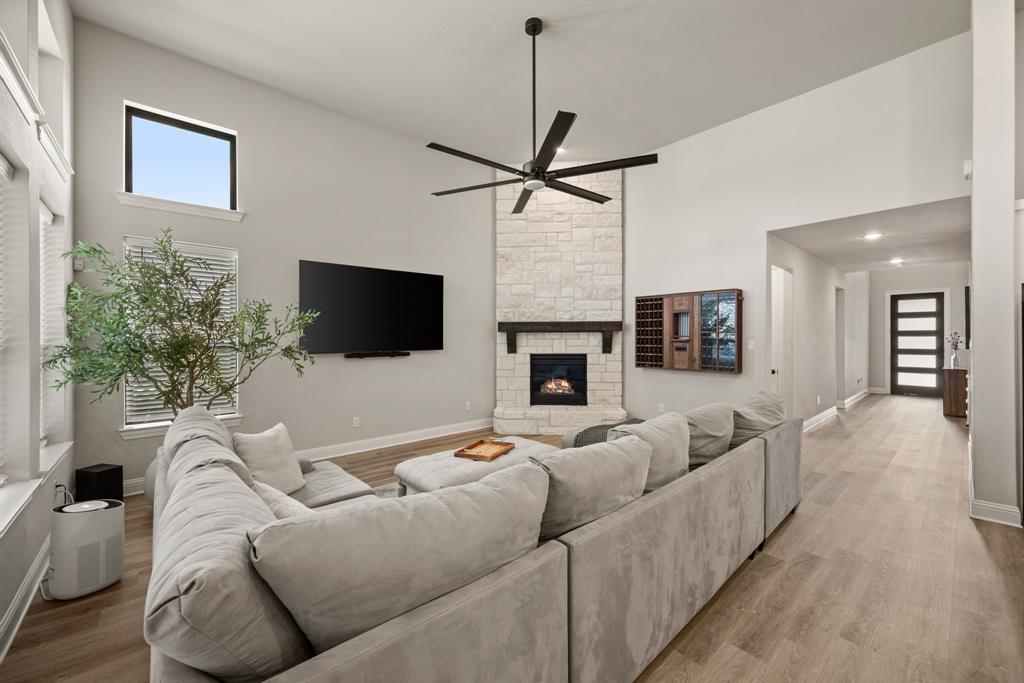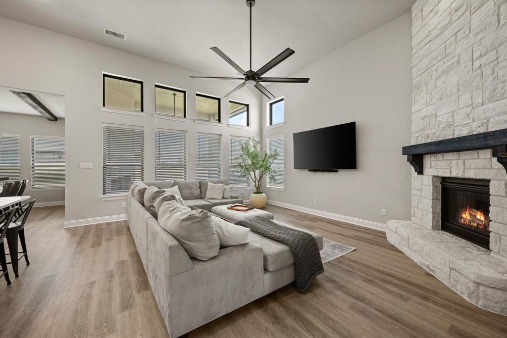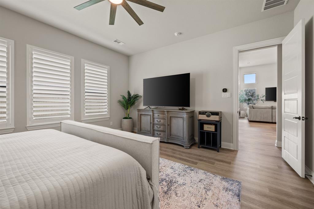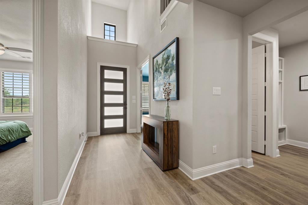 ** Open House Sunday Sept 21st 1-3pm.** INTEREST RATE INCENTIVES AVAILABLE! Ask AGENT! Skip the wait and skip the builder markup — this true 6-bedroom Coventry home in award-winning Pecan Square is move-in ready, loaded with upgrades you have to see in person, and the sellers are motivated! Sitting on a premium corner lot, this 2023 build spans over 4,000 sq ft with a thoughtful layout that includes two full bedroom suites downstairs, a gourmet kitchen with oversized island opening to the living room, a beam-accented dining area, custom lighting, plantation shutters, and a white oak built-in office. Upstairs offers four spacious bedrooms, a pre-wired media room, and open flex space, while the insulated 3-car tandem garage with epoxy floors adds durability and storage. The crisp white brick exterior, covered patio wired for game days, and pool-sized backyard make it perfect inside and out. Frameless showers, oversized closets, and energy-efficient construction complete the home, all tucked on a quiet interior street just steps from resort-style amenities like the pool, fitness center, co-working space, dog parks, and year-round community events. Seller will consider all offers and is open to negotiating rate buy-downs. Contact the listing agent today with any questions. Buyer to verify all information.