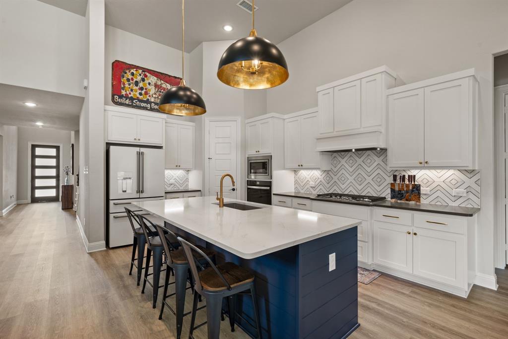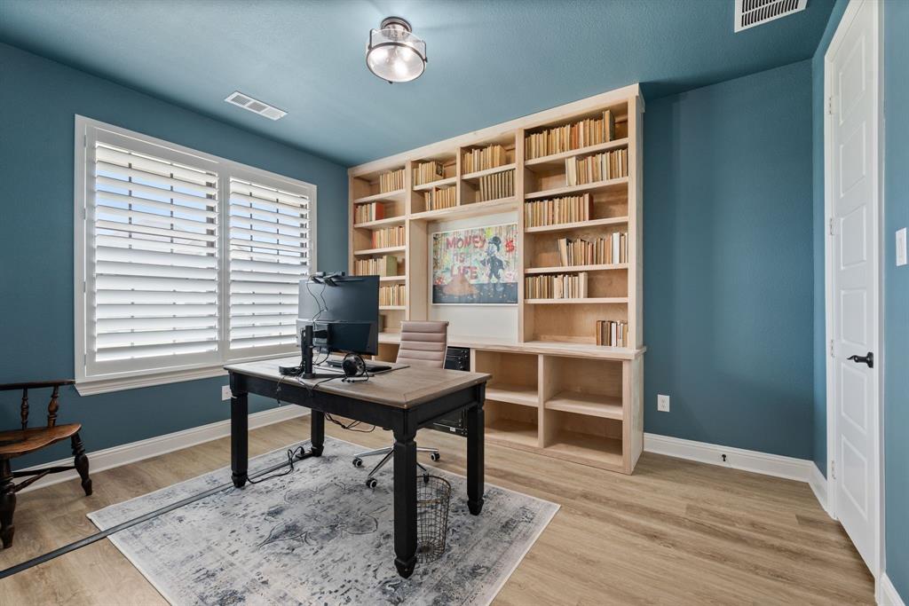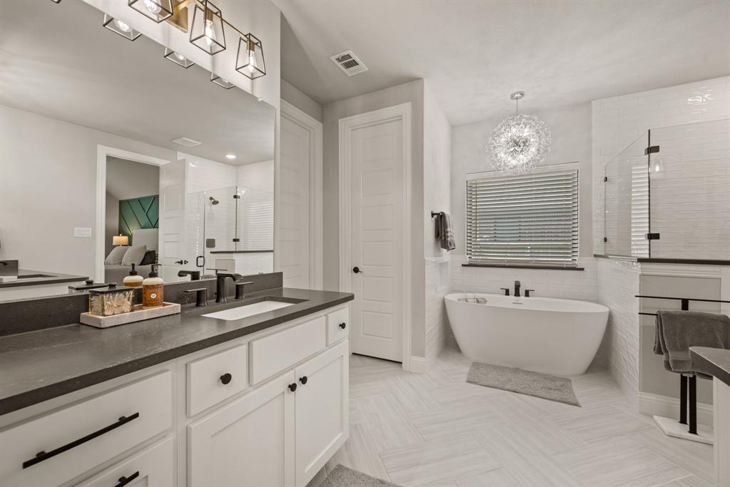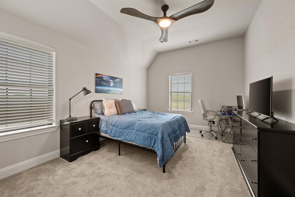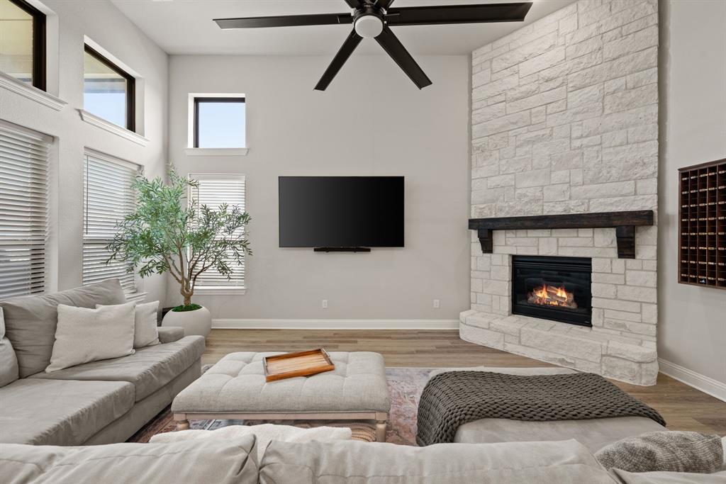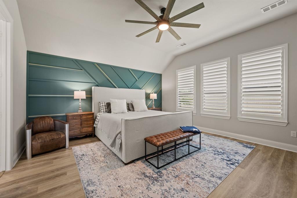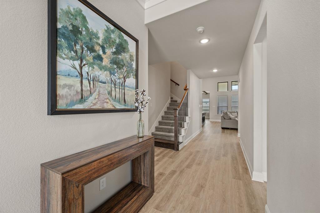 ** Open House Sunday Sept 21st 1-3pm.** INTEREST RATE INCENTIVES AVAILABLE! Ask AGENT! Skip the wait and skip the builder markup — this true 6-bedroom Coventry home in award-winning Pecan Square is move-in ready, loaded with upgrades you have to see in person, and the sellers are motivated! Sitting on a premium corner lot, this 2023 build spans over 4,000 sq ft with a thoughtful layout that includes two full bedroom suites downstairs, a gourmet kitchen with oversized island opening to the living room, a beam-accented dining area, custom lighting, plantation shutters, and a white oak built-in office. Upstairs offers four spacious bedrooms, a pre-wired media room, and open flex space, while the insulated 3-car tandem garage with epoxy floors adds durability and storage. The crisp white brick exterior, covered patio wired for game days, and pool-sized backyard make it perfect inside and out. Frameless showers, oversized closets, and energy-efficient construction complete the home, all tucked on a quiet interior street just steps from resort-style amenities like the pool, fitness center, co-working space, dog parks, and year-round community events. Seller will consider all offers and is open to negotiating rate buy-downs. Contact the listing agent today with any questions. Buyer to verify all information.