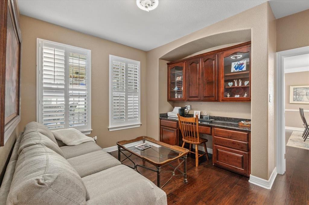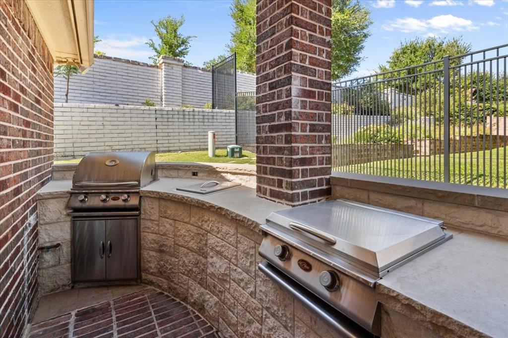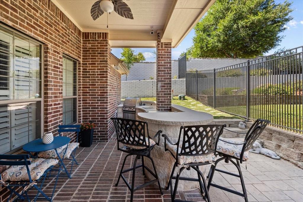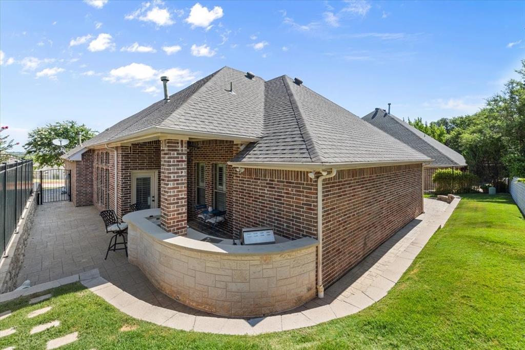 From the charming courtyard entry to the thoughtfully designed floor plan, this garden home offers comfort, elegance, and functionality throughout. The open-concept living, dining, and kitchen area is perfect for entertaining, featuring soaring 11-foot ceilings, a cozy gas fireplace, and timeless plantation shutters that add warmth and sophistication. The spacious, split-bedroom layout offers privacy and versatility, with a generous primary suite on one side of the home and two guest bedrooms—complete with a shared bathroom and their own dedicated living area—on the other. At the heart of the home, the gourmet eat-in kitchen is a chef’s dream, showcasing a large granite island, a cozy breakfast nook, and double ovens, ideal for everything from casual meals to dinner parties. Step outside into your own backyard retreat with a covered patio and built-in outdoor kitchen, perfect for al fresco dining and weekend gatherings. Located just outside of La Cantera with easy access to Highway 820, you’re only 10 minutes from The Shops at Clearfork and 15 minutes from TCU and downtown Fort Worth. This home combines luxurious living with unbeatable convenience—truly a must-see!