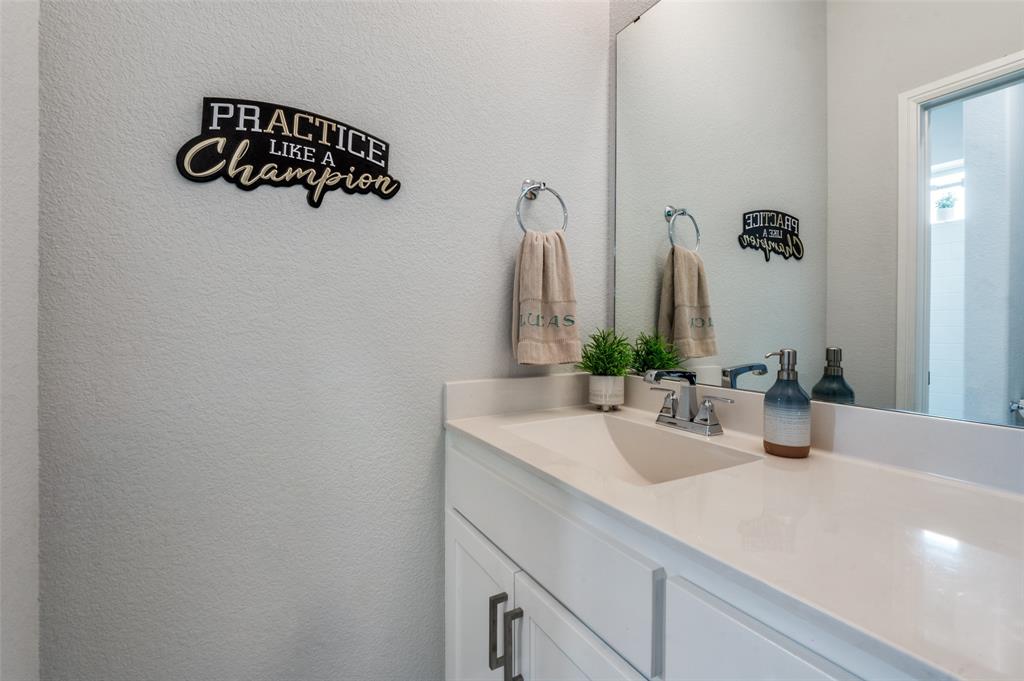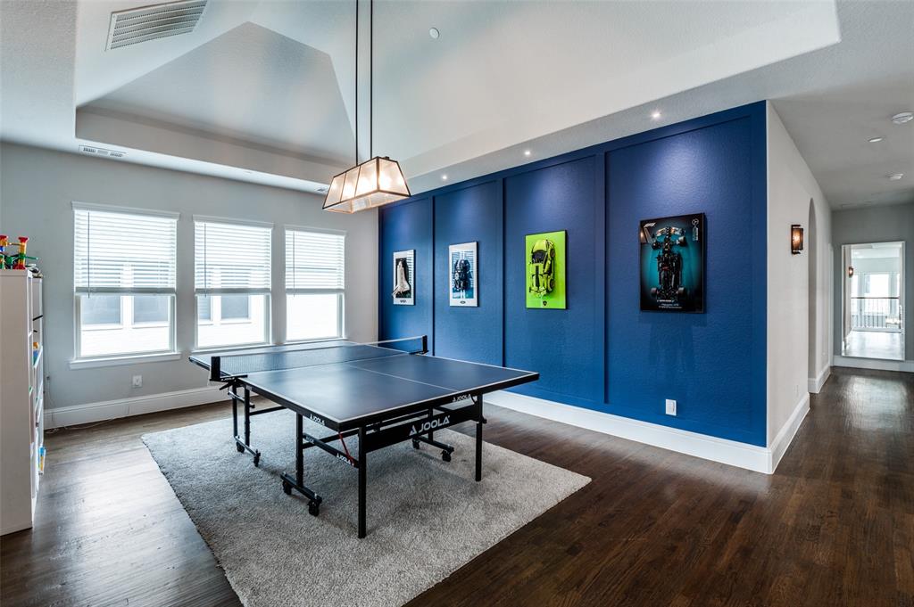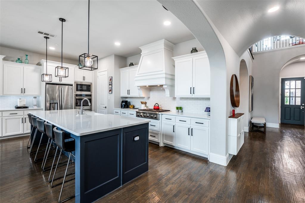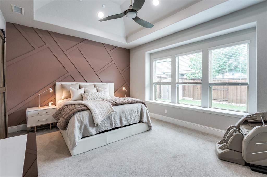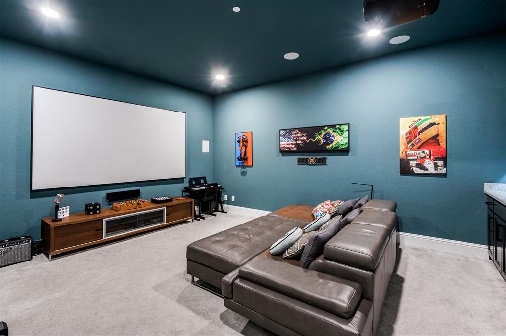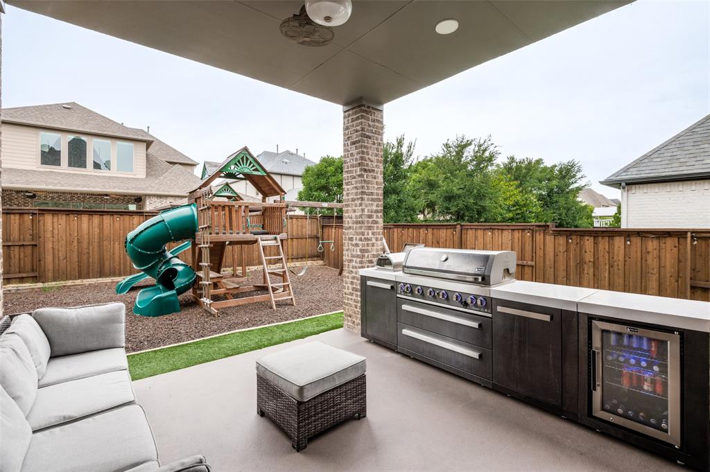 Welcome home to this Britton home located in Windsong Ranch, that has something for everyone! The large media room, on the first floor, is an extremely inviting area with a wet bar and wine fridge. Everyone will offer to help in the kitchen with its double ovens, quartz island, and immense amount of storage, walk-in pantry, and a view of the backyard and patio. The primary bedroom and ensuite offer a quiet and spacious place to unwind. The closet has access to the laundry room…how convenient! The focal point of the living room is the fireplace with a statement finish that extends to the ceiling. Tucked away between the first and second floor is an office that has been soundproofed, creating the perfect workspace and ensuring few interruptions. You are greeted on the second level by a large game room with built in desk and storage area. There is a large office space tucked away in a corner of the second level, but still allows you to keep an eye and ear on what is going on in the rest of the house. Four good size bedrooms offer a room for everyone in the family and guests. Be sure to notice the accent walls in each room and the sophisticated light fixtures throughout the home. The backyard and patio have been finished with the same attention to detail. The outdoor kitchen equipment features a gas grill and refrigerator. The backyard features high-quality artificial turf, providing safety, year-round functionality, and the convenience of low maintenance. All three garage spaces feature epoxied floors. An added bonus: a whole-house water softener system. The saying in real estate is location, location, location, and the location of this home couldn’t be more perfect… across the street from the elementary school. This house is a must see, and you have all the conveniences and amenities of Windsong Ranch!