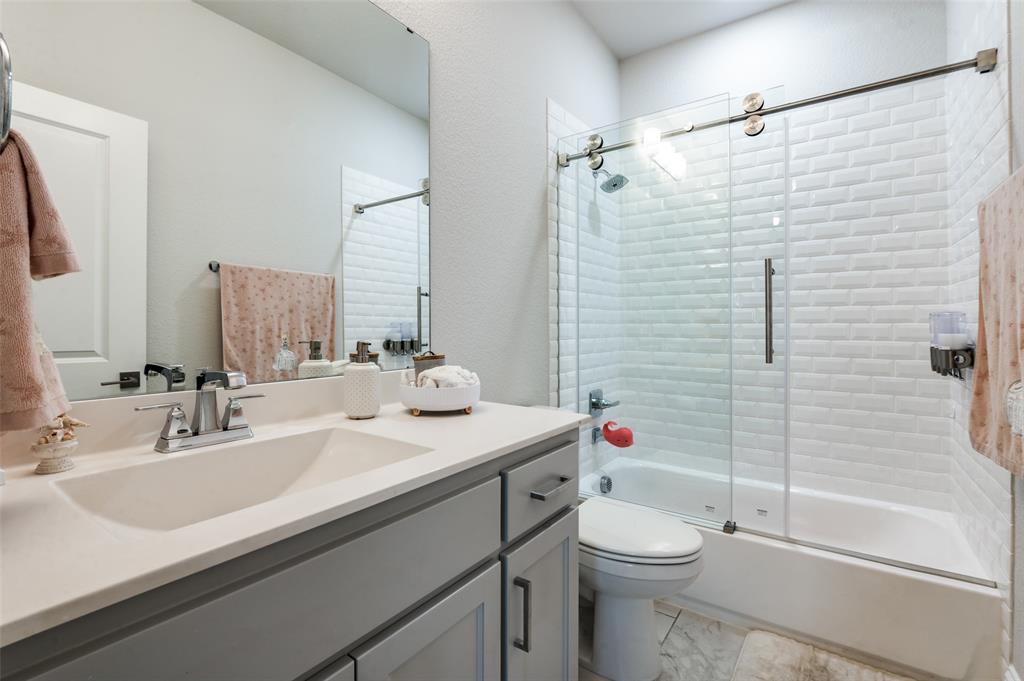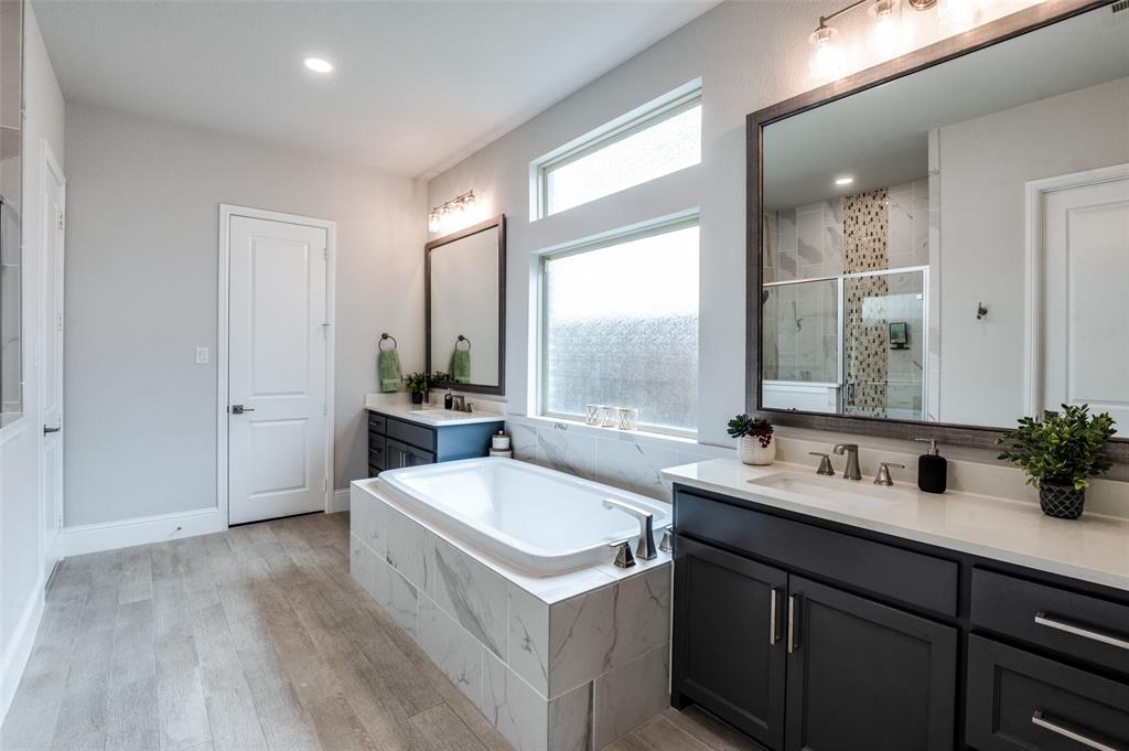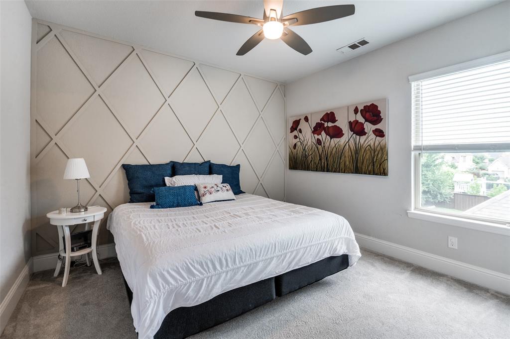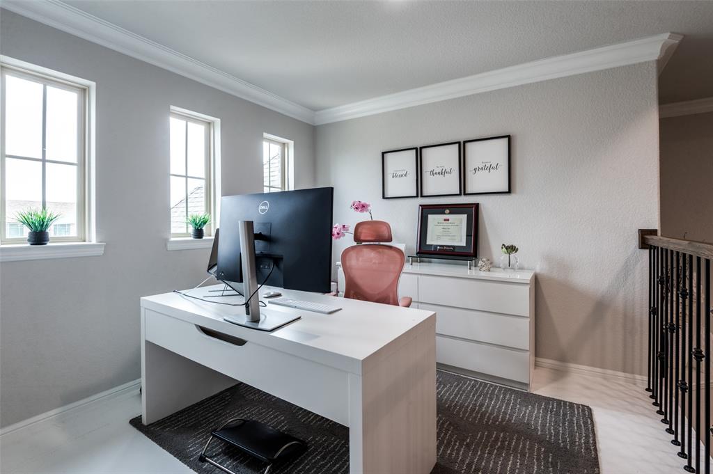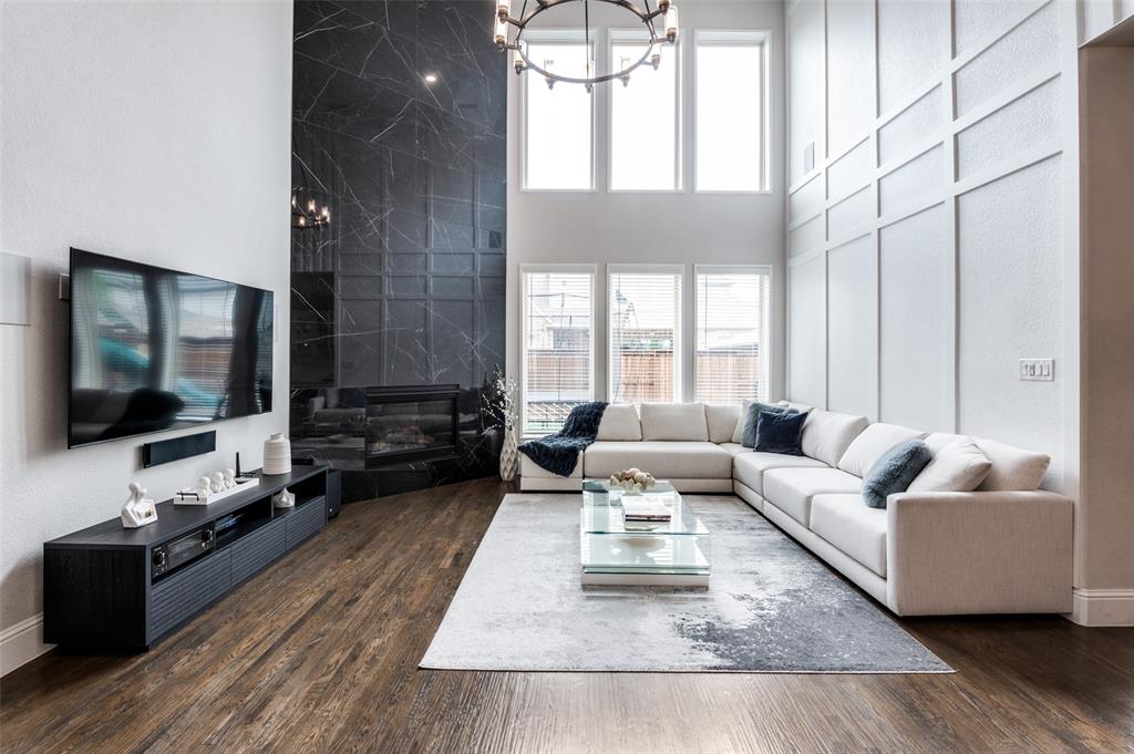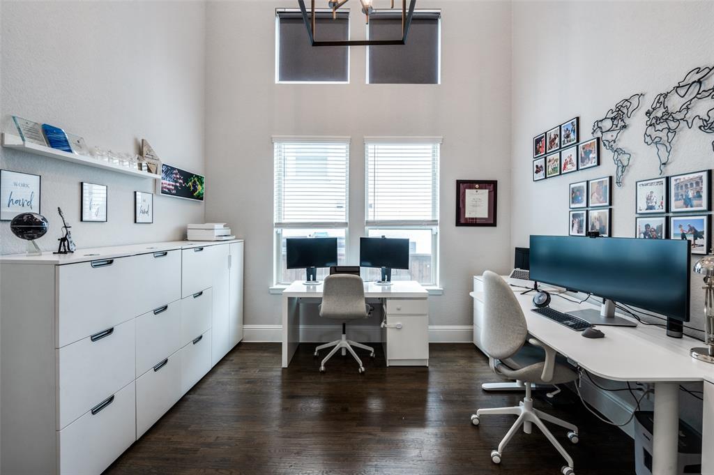 Welcome home to this Britton home located in Windsong Ranch, that has something for everyone! The large media room, on the first floor, is an extremely inviting area with a wet bar and wine fridge. Everyone will offer to help in the kitchen with its double ovens, quartz island, and immense amount of storage, walk-in pantry, and a view of the backyard and patio. The primary bedroom and ensuite offer a quiet and spacious place to unwind. The closet has access to the laundry room…how convenient! The focal point of the living room is the fireplace with a statement finish that extends to the ceiling. Tucked away between the first and second floor is an office that has been soundproofed, creating the perfect workspace and ensuring few interruptions. You are greeted on the second level by a large game room with built in desk and storage area. There is a large office space tucked away in a corner of the second level, but still allows you to keep an eye and ear on what is going on in the rest of the house. Four good size bedrooms offer a room for everyone in the family and guests. Be sure to notice the accent walls in each room and the sophisticated light fixtures throughout the home. The backyard and patio have been finished with the same attention to detail. The outdoor kitchen equipment features a gas grill and refrigerator. The backyard features high-quality artificial turf, providing safety, year-round functionality, and the convenience of low maintenance. All three garage spaces feature epoxied floors. An added bonus: a whole-house water softener system. The saying in real estate is location, location, location, and the location of this home couldn’t be more perfect… across the street from the elementary school. This house is a must see, and you have all the conveniences and amenities of Windsong Ranch!