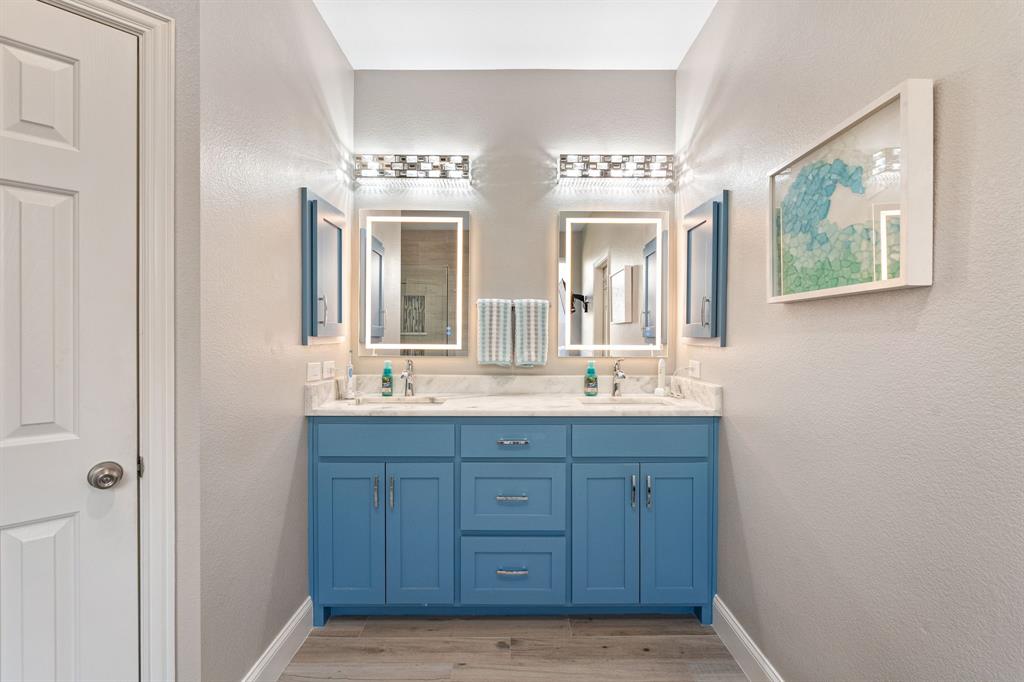 Welcome to a beautiful Standard Pacific home with a touch of modern coastal flare! This home was remodeled in 2020 and features pella double hung windows for easy cleaning, luxury vinyl plank flooring downstairs and a marble fireplace, marble backsplash, marble mosaic flooring in one bathroom upstairs, both master and a secondary bathroom feature seamless glass. You'll also find brazilian honed marble countertops in master bathroom as well as powder bathroom. Master bathroom features custom built cabinets, medicine cabinets, LED lighted mirrors, bluetooth exhaust fan with speaker built in, soft close cabinet doors and drawers as well as a massive cabinet built above the toilet with soft close doors. Niches in all showers are huge and will hold all your shower essentials. Powder bath features a custom floating vanity and designer metallic paint. Enjoy family time in the den with soaring two story ceilings with custom drapes and tons of natural light. The backyard is big enough for a pool with plenty of yard left to enjoy. Come see this home today! Owner is a licensed real estate agent.