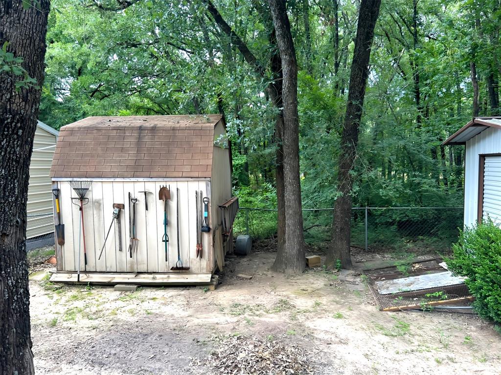 Well-maintained, great, affordable home featuring 3 bedrooms and 2 baths on a full acre in the peaceful Forgotten Acres of Mabank, TX—completely free of HOA restrictions. A tranquil gravel driveway beneath mature shade trees, leading to a generous 30?×?15 RV carport with electric hookups—perfect for your motorhome, boat, or next project. This well-kept property blends functionality and charm. A two-car attached garage adds everyday convenience, while natural light fills the inviting living spaces and restful bedrooms. The layout strikes a balance between cozy comfort and practical flow—ideal for family time or quiet evenings. The screened-in back porch, wired for electricity, becomes your go-to spot for morning coffee or relaxed evening meals—blurring the lines between indoors and out. What truly elevates this home are the impressive, climate-controlled outbuildings nestled in the fully fenced backyard. A 12?×?18 woodworking shop with AC and heat provides a year-round creative workspace. A second 10?×?12 AC-heat-equipped shop offers even more versatility, whether for hobbies, storage, or tinkering. Two additional utility buildings ensure ample room for tools, gear, or seasonal storage. The backyard is a serene, tree-filled retreat. Sunlight filters through leafy canopies, creating a serene backdrop for gardening, fire-pit gatherings, or letting children and pets roam freely. Located near Cedar Creek Lake and charming Gun Barrel City, this home strikes the ideal balance of lakeside recreation and small-town convenience, all wrapped in a peaceful country setting. 20213 Leisureland Road isn’t just a house—it’s a well-maintained canvas for your lifestyle. Enjoy the freedom of no HOA, abundant flexible spaces, and a porch that invites unwinding. With room to grow, create, and explore, this affordable retreat is ready for new memories.