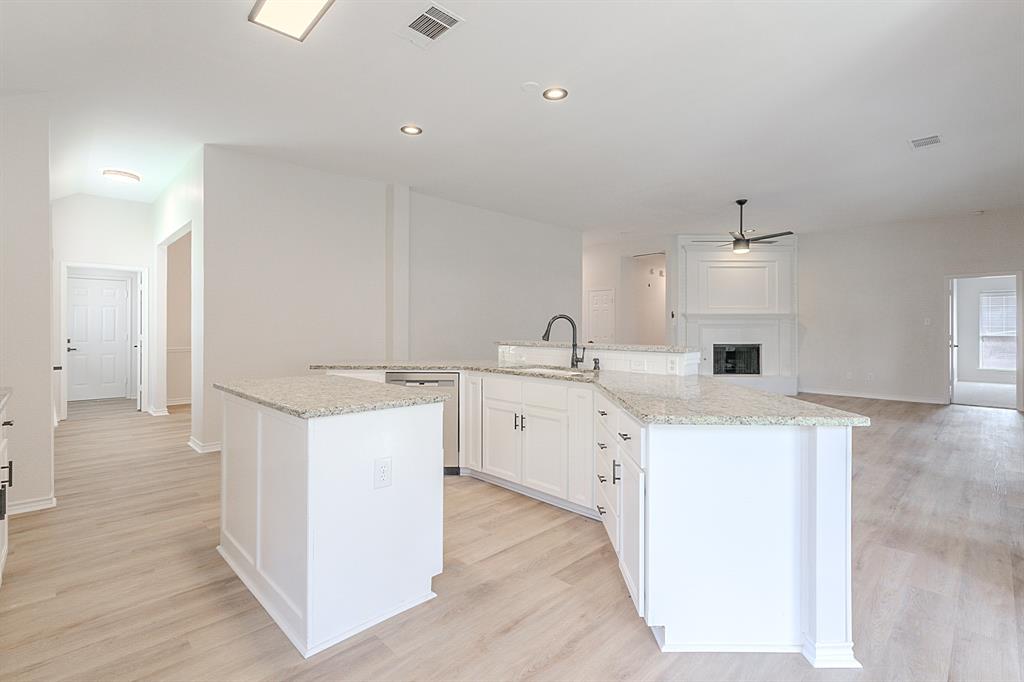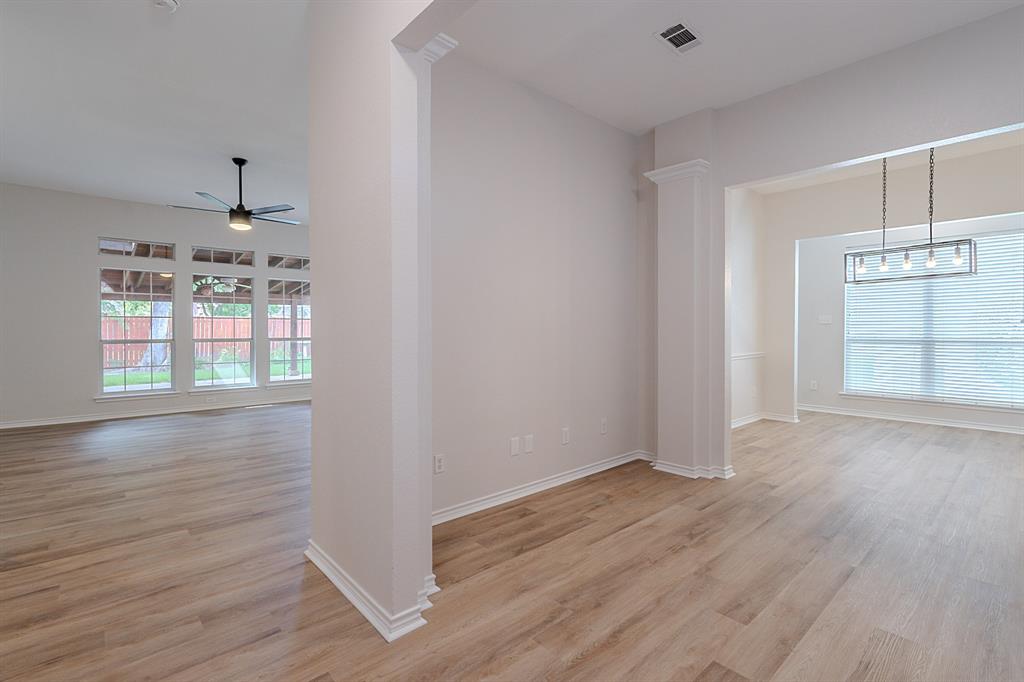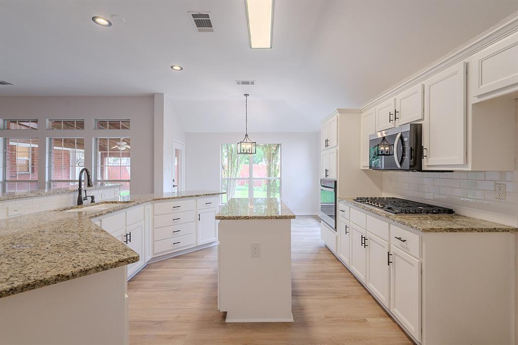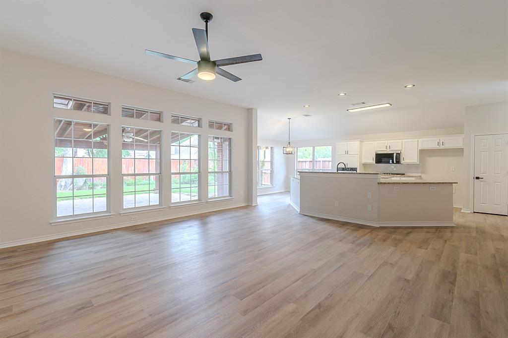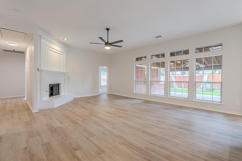 Immaculate 4-bed home in Firewheel Estates with high ceilings, open floor plan, and bright neutral tones throughout! Recent updates include removal of popcorn ceilings, full interior paint, new LVP flooring, new carpet, and refreshed bathrooms. Kitchen has been beautifully updated with painted cabinets, new sink, and a stainless steel appliance package—gas range, microwave, and dishwasher. Enjoy the open-concept layout connecting the main living room—featuring a gorgeous fireplace—to the spacious kitchen and breakfast area. Home offers multiple living areas, perfect for entertaining or relaxing. Owner’s suite includes double walk-in closets and a spa-like bath with dual sinks, separate tub & shower. All secondary bedrooms have walk-in closets. Large covered patio out back. Community features include clubhouse, pool, park, playground, and convenient access to Firewheel Golf Park. Close to major highways, shopping, and dining!