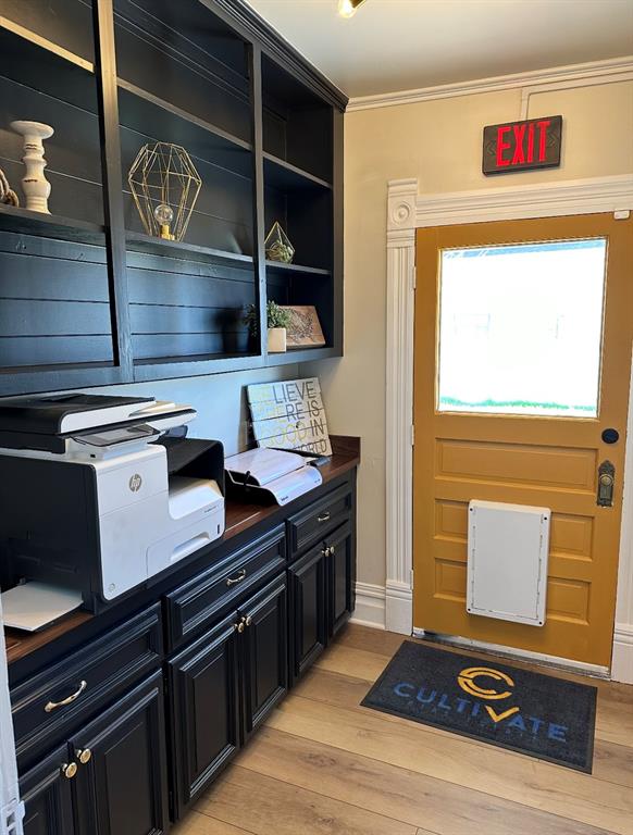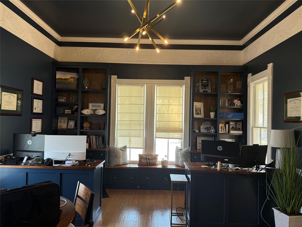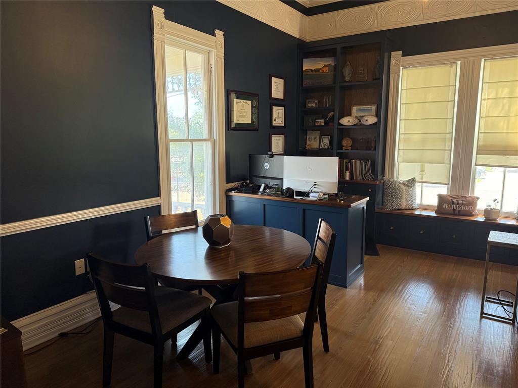 Step into timeless charm and modern functionality right in the heart of Weatherford. Originally built in 1892, this beautifully preserved and thoughtfully remodeled office building seamlessly blends historic character with contemporary upgrades. From the moment you walk in, you're greeted by rich walnut built-ins, warm wood tones, and tall ceilings that reflect the craftsmanship of a bygone era. This professional space offers versatile layouts ideal for private offices, collaborative workspaces, or client-facing areas. Large windows allow for natural light to flood in, creating an inviting and productive environment. With updated mechanical systems and a location in the heart of town, this is a rare opportunity to own a piece of history that's been adapted for today’s business needs. Whether you're expanding your practice, opening a boutique firm, or seeking a unique investment, 110 S Walnut delivers on style, location, and legacy.