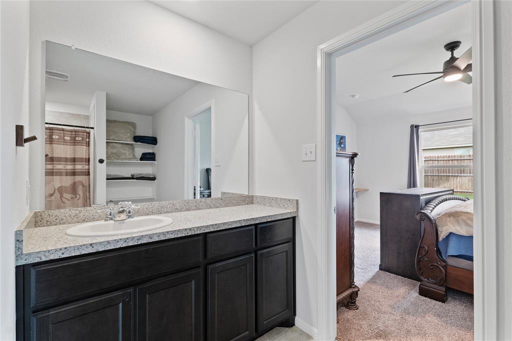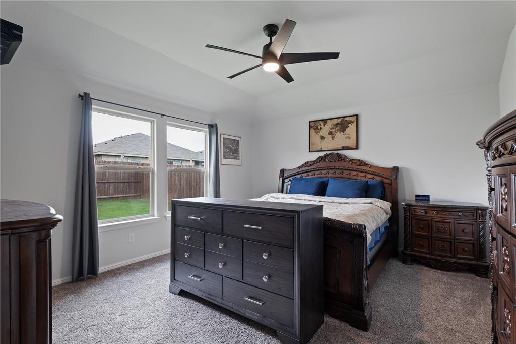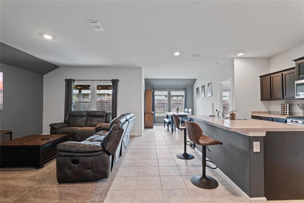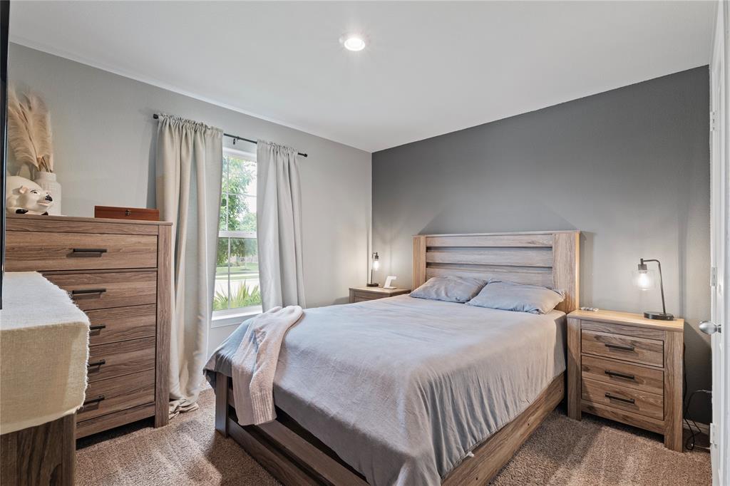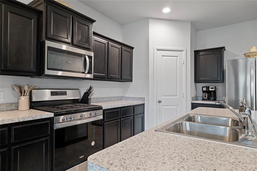 A well maintained home and recently built DR Horton single story home that offers 4 bedrooms, 2 bathrooms and an open floor plan. As you enter the foyer, you'll pass two secondary bedrooms with the spacious secondary bathroom shared between them. A short hallway off the foyer leads to the utility room and the fourth secondary bedroom.. The foyer leads to a grand, open-concept living room, kitchen, and dining room. The kitchen features stainless steel appliances with electric cooking range, granite countertops, a corner walk-in pantry, and a large kitchen island overlooking the living room. A large covered patio is located off the dining room, perfect for entertaining. The private main bedroom suite is located off the dining room and features a huge walk-in closet, separate water closet and a large walk-in shower with ceramic tile surround. Liberty Trails has much to enjoy for family fun and entertainment such as a club house, dog park, community pond with sidewalks surrounding, and a pool with a kids splash pad. WASHER, DRYER, REFRIGERATOR will convey with the home. Garage floor has an epoxy treatment! Home faces the southwest direction