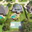 Step into your private backyard paradise, complete with an extended 21x18 covered patio, a sparkling saltwater pool featuring a waterslide, cave, and waterfalls. Beyond, a full sports court with basketball goals and volleyball net awaits active living.