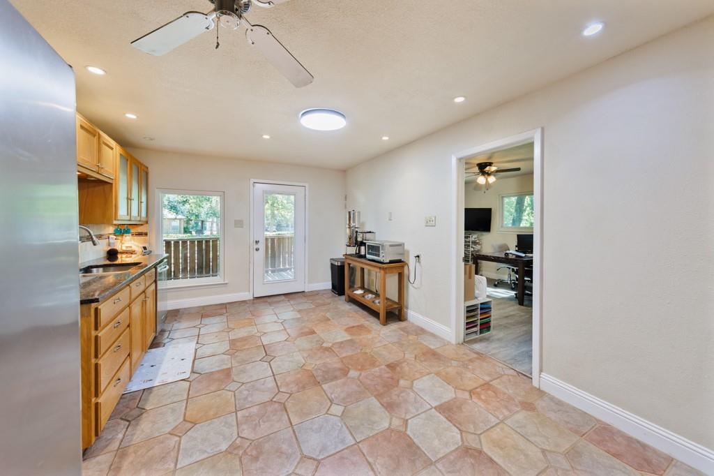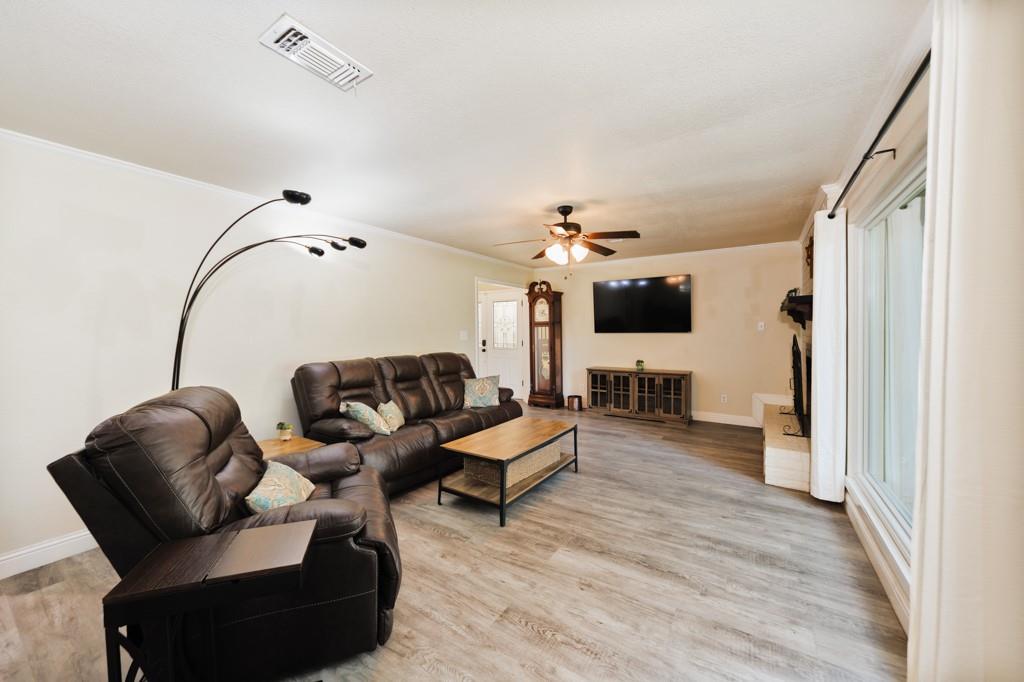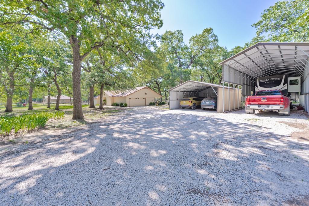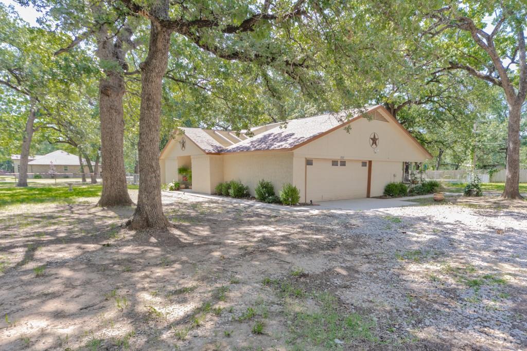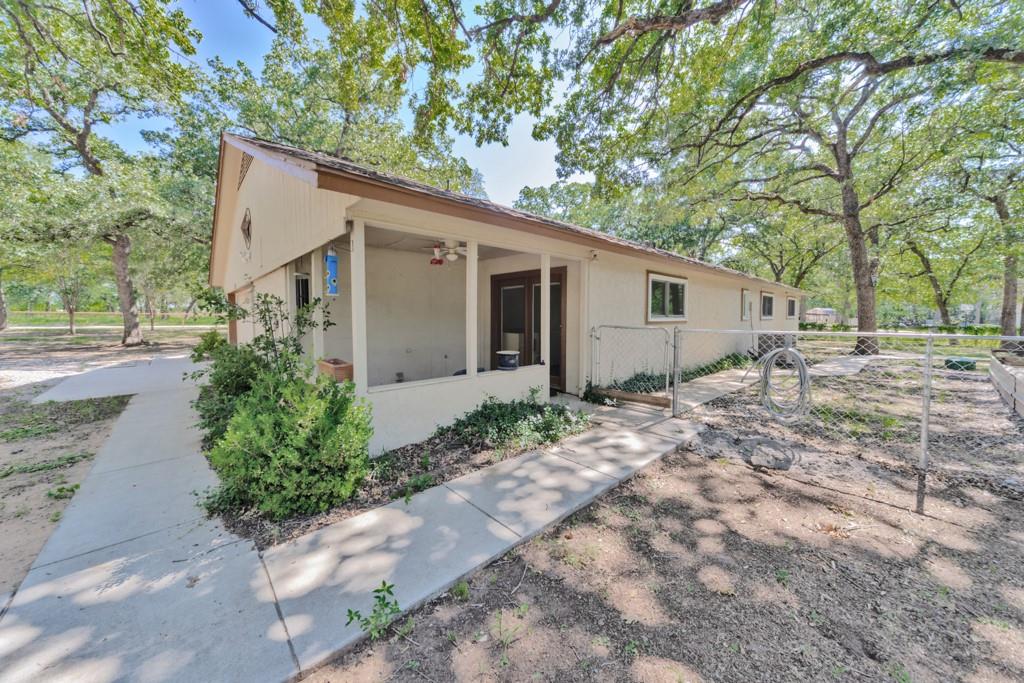 Step into the charming three-bedroom, two-bath home through a spacious 20x16 courtyard, perfect for entertaining or relaxing in privacy. The open living room features a wood-burning fireplace and a large picture window overlooking the beautifully manicured front yard. The master suite boasts its own private patio, offering a peaceful escape, multiple closets and large master bath. Walk in pantry with cabinets and shelving. Spacious laundry room with built in cabinets. Enjoy modern upgrades with brand-new windows installed in 2024, Wi-Fi connected smart thermostat, a hidden gun safe discreetly located in the dining area, and a spacious yard fully fenced with no climb pipe fencing ideal for pets or outdoor gatherings. Additional sidewalks throughout backyard. The property is also equipped with RV storage and hookups. Storage shed and Carport. The 700 sq ft fully independent Accessory Unit built in 2020 features one-bedroom, one-bath, mini split HVAC system, full laundry, full kitchen, shaker style cabinets, separate electric meter and separate sewer. Bridgeport ISD. Whether you're looking for a multi-family setup or an income-generating property, this unique offering blends comfort, function and flexibility. Don't miss this opportunity, schedule your showing today.