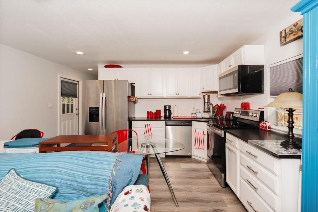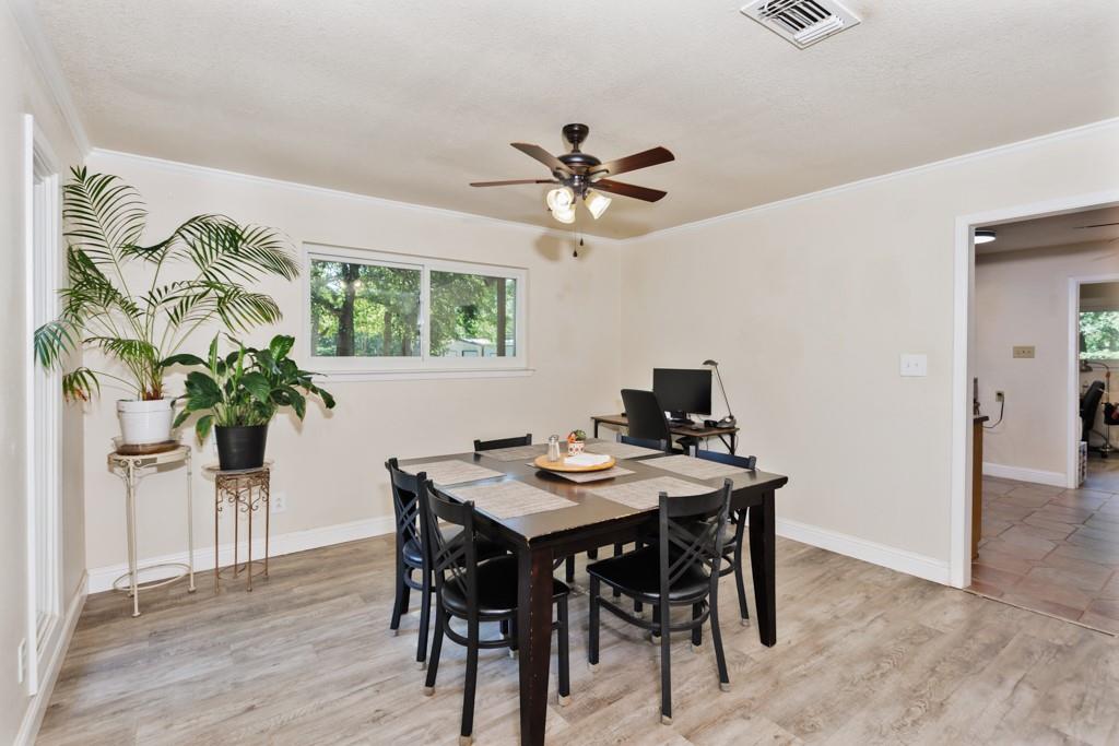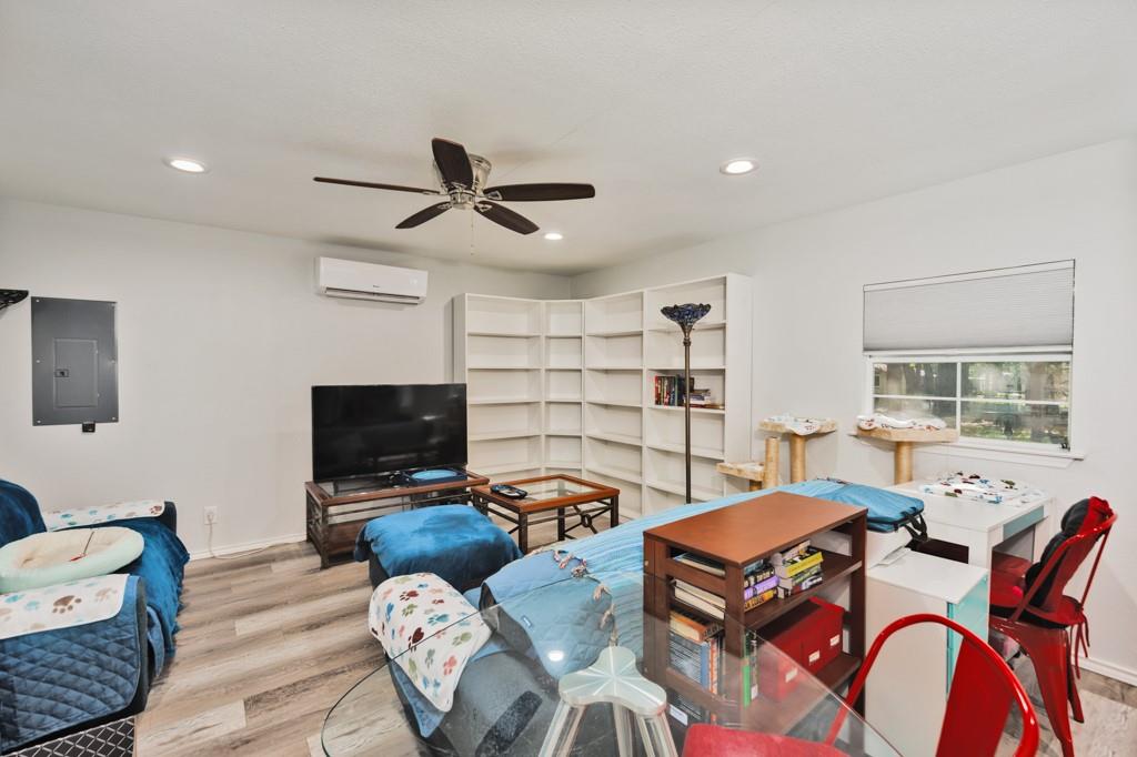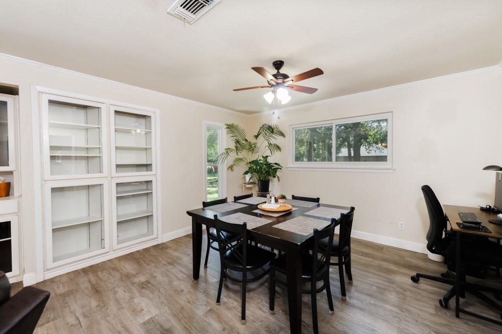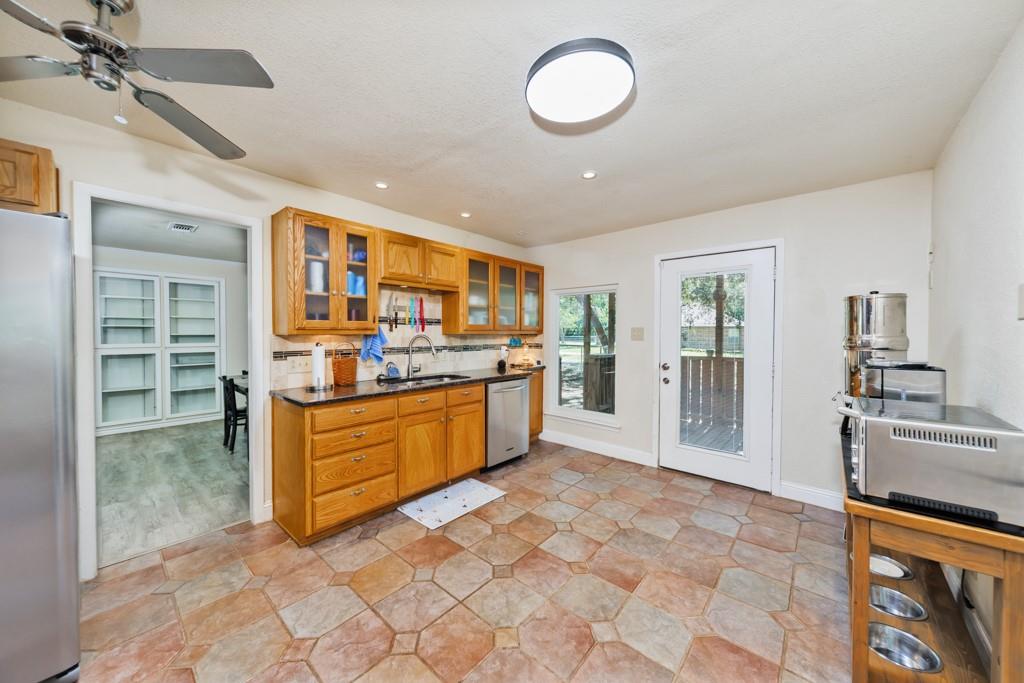 Step into the charming three-bedroom, two-bath home through a spacious 20x16 courtyard, perfect for entertaining or relaxing in privacy. The open living room features a wood-burning fireplace and a large picture window overlooking the beautifully manicured front yard. The master suite boasts its own private patio, offering a peaceful escape, multiple closets and large master bath. Walk in pantry with cabinets and shelving. Spacious laundry room with built in cabinets. Enjoy modern upgrades with brand-new windows installed in 2024, Wi-Fi connected smart thermostat, a hidden gun safe discreetly located in the dining area, and a spacious yard fully fenced with no climb pipe fencing ideal for pets or outdoor gatherings. Additional sidewalks throughout backyard. The property is also equipped with RV storage and hookups. Storage shed and Carport. The 700 sq ft fully independent Accessory Unit built in 2020 features one-bedroom, one-bath, mini split HVAC system, full laundry, full kitchen, shaker style cabinets, separate electric meter and separate sewer. Bridgeport ISD. Whether you're looking for a multi-family setup or an income-generating property, this unique offering blends comfort, function and flexibility. Don't miss this opportunity, schedule your showing today.
