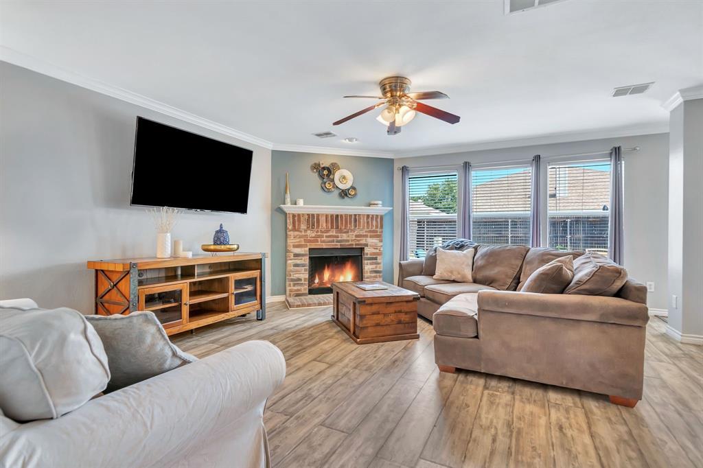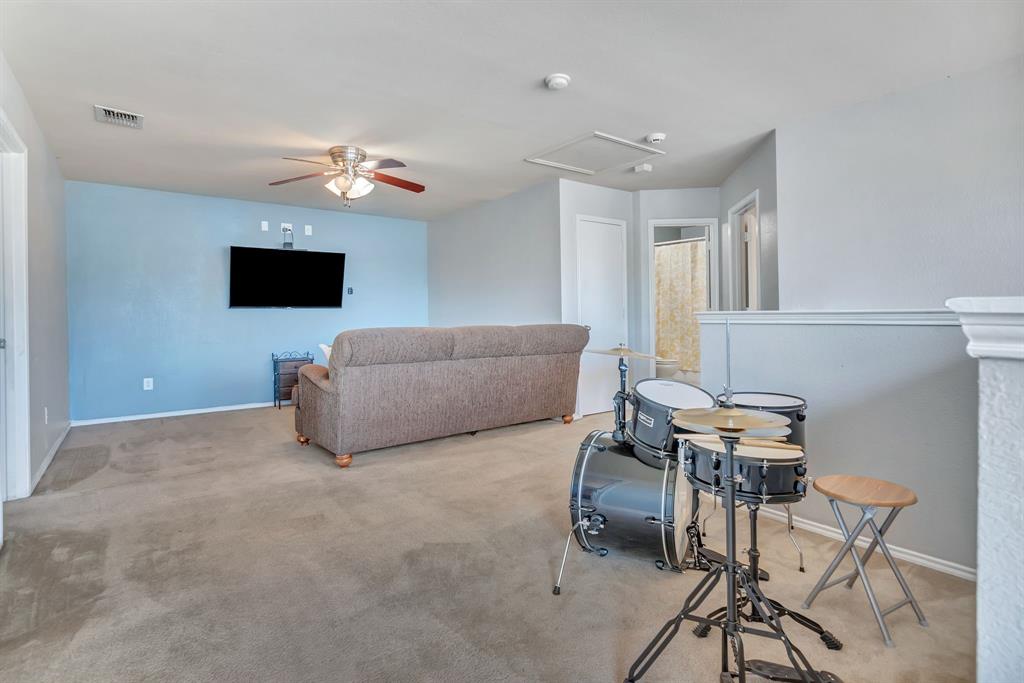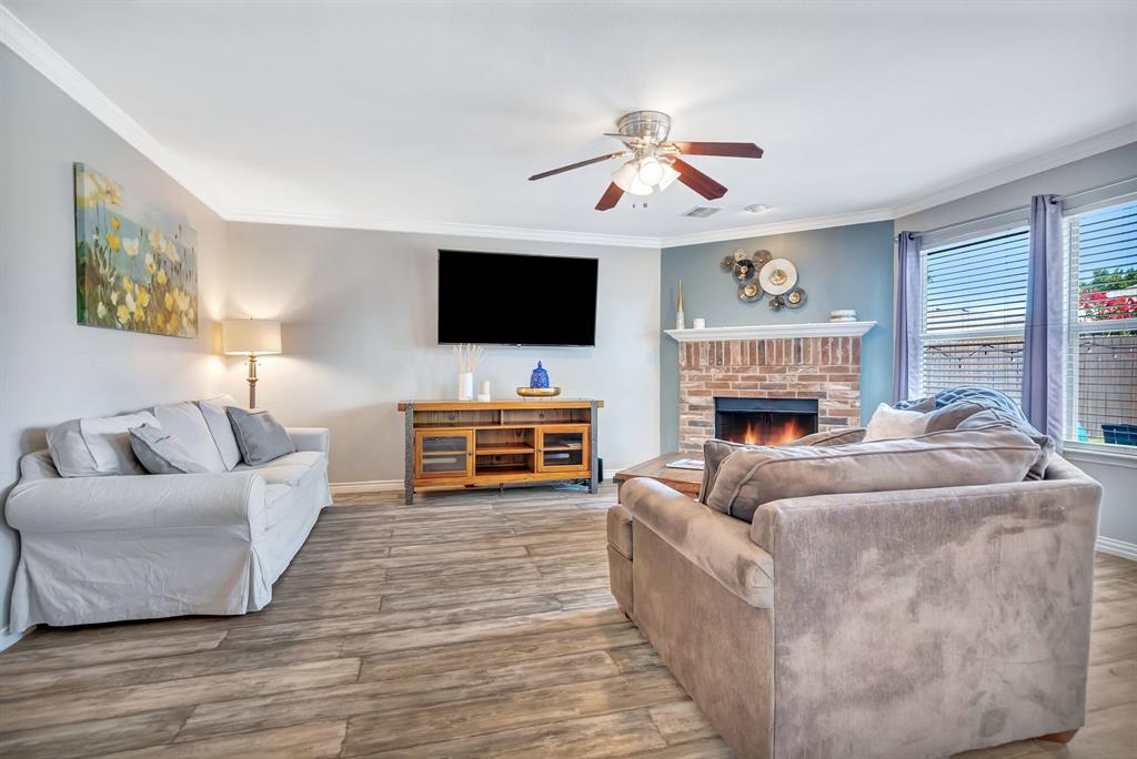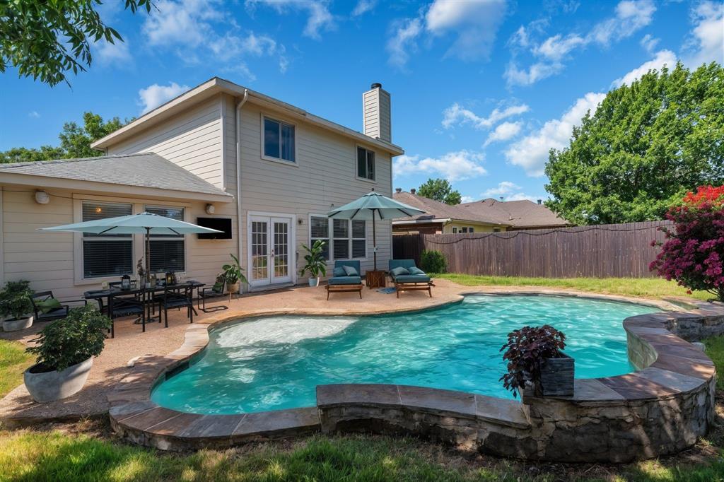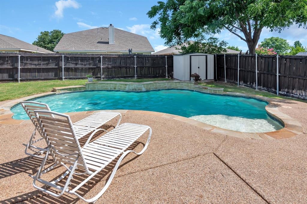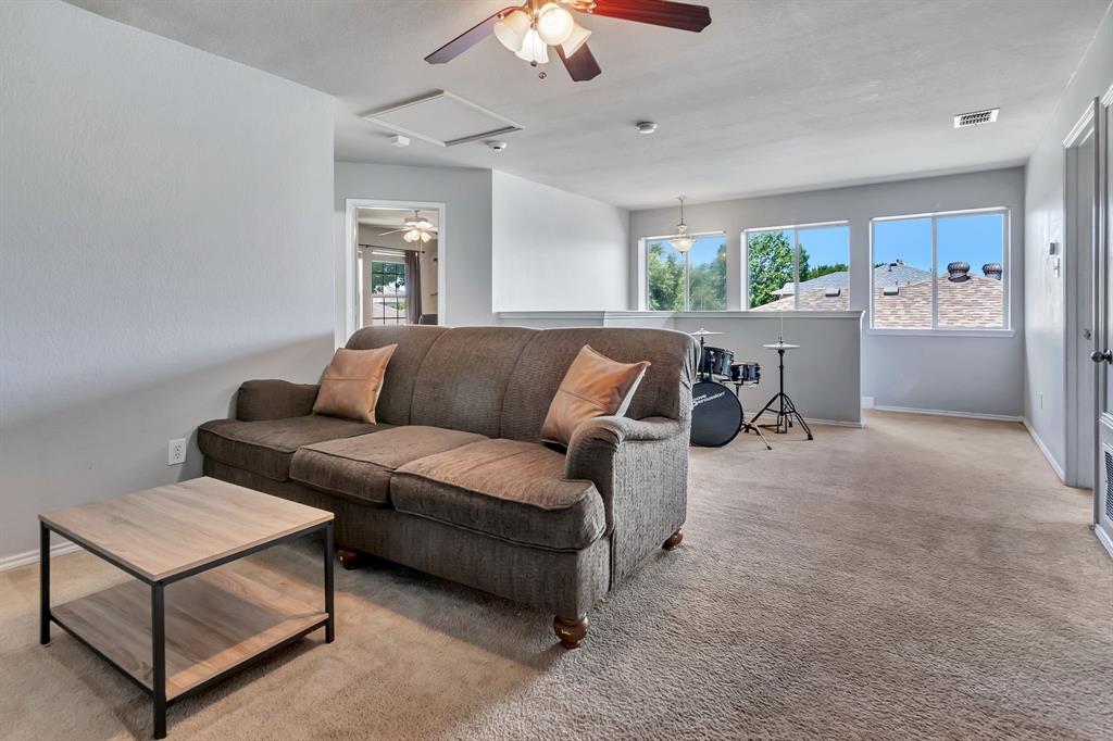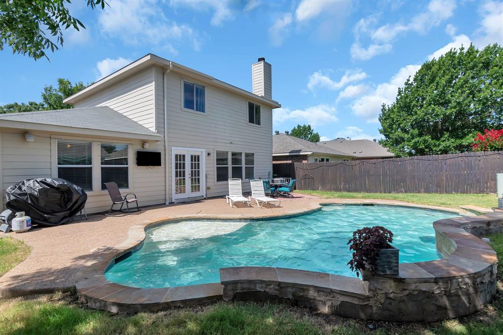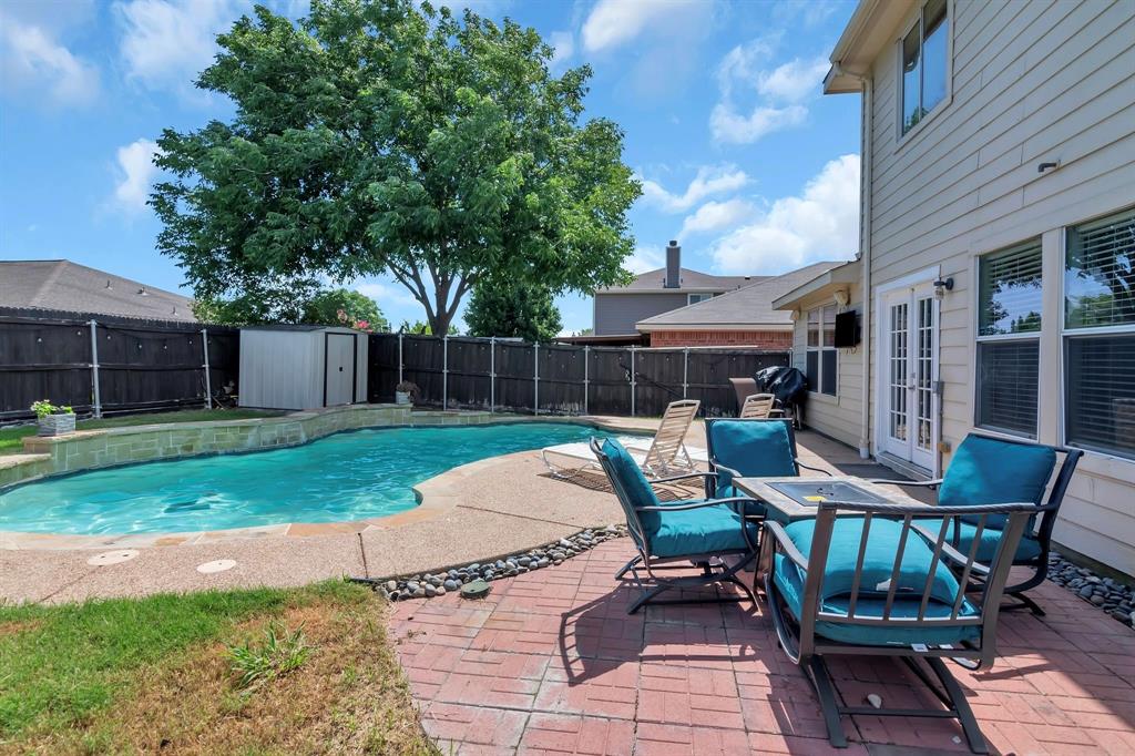 BACK ON MARKET! Buyers' home didn't sell. Welcome to this inviting home where you can entertain indoors or out. With 3 living areas, you can welcome your guests in the cozy & charming living room in the shade of the beautiful large oak tree just outside the front windows, gather around the wood burning fireplace in the den or congregate upstairs in the spacious game room with lots of natural light. Perhaps you'd prefer to watch TV from the backyard pool or simply enjoy the outdoors on your patio. The open floor plan connects the breakfast area & den with a lovely view of the sparkling pool through the wall of windows and French doors. With the primary bedroom, ensuite bath & walk-in closet downstairs, multi-generational living is a real possibility. You can also enter the home conveniently from the attached garage through the utility room that also serves as a large pantry and mud room, to keep your home tidy. Bring your groceries in from your car, just a few steps away. The kitchen has quartz countertops, a large, deep sink, built-in microwave over the range, and plenty of storage & counter space; ample floor space, too, for many helpers to work in meal preparation. Cook your large Thanksgiving turkey and lots of holiday cookies in the wide oven. The storage shed on foundation is 4 yrs old & in good condition; updates to roof (2019) & HVAC; acclaimed Keller ISD. Storage closet under stairs & additional walk-in closet in one upstairs bedroom. This property is in close proximity to Alliance Town Center with all the restaurants, entertainment & shopping it has to offer, & I-35 access is just minutes away, yet the nearby greenbelts, neighborhood park, jogging & bike paths and catch & release pond at the end of the cul-de-sac add a serene component to the peaceful neighborhood ambience. YMCA, North Park, Arcadia Trail Park North, soccer fields, basketball court, & Betty Perot Elementary School all just minutes away. Grocery stores, pharmacies and hospital nearby