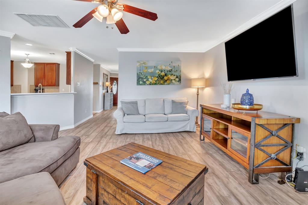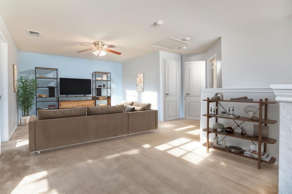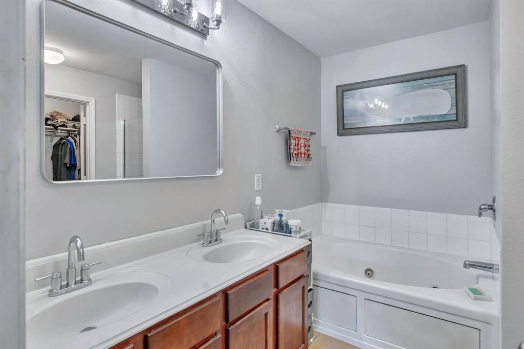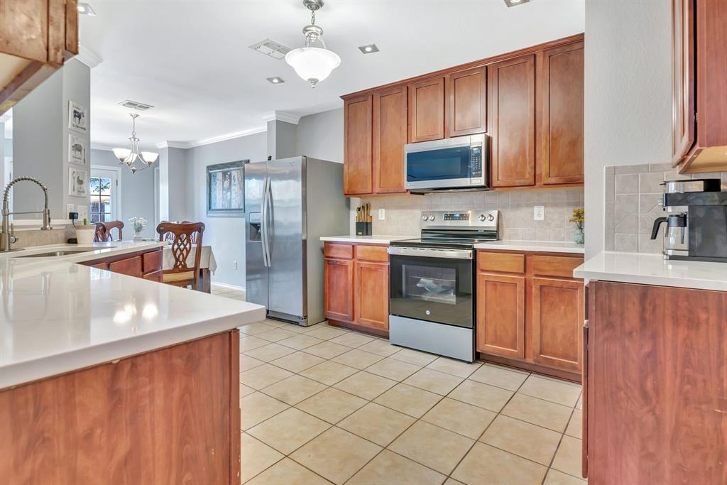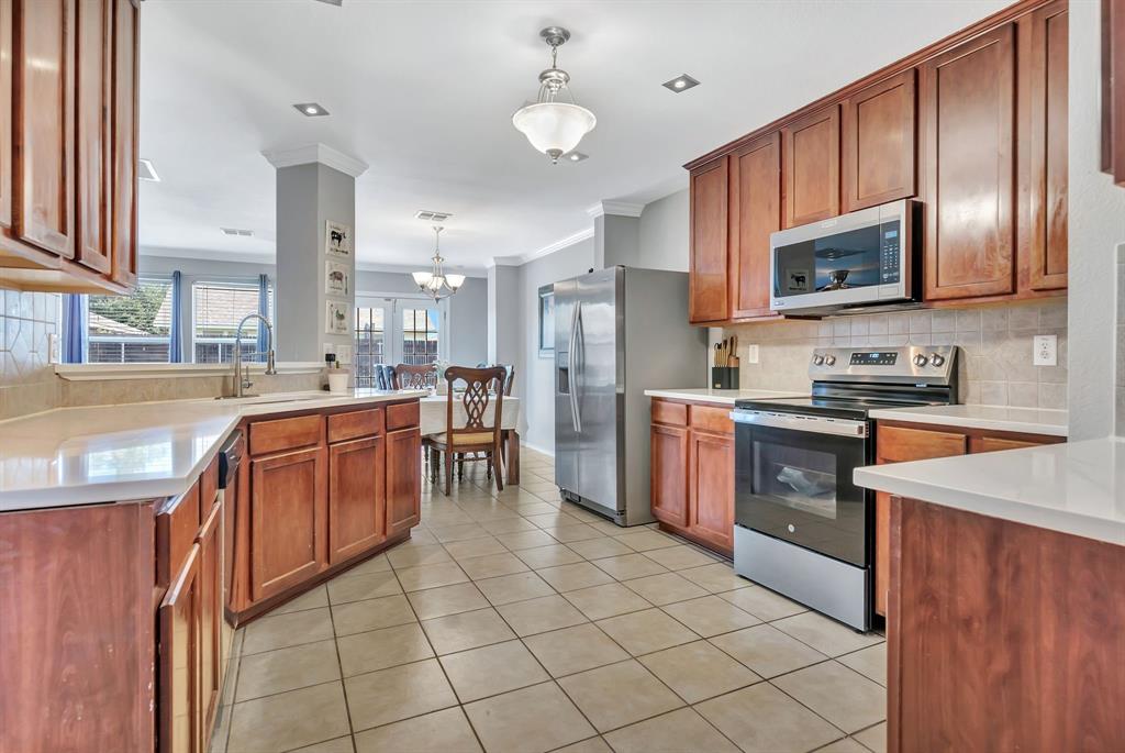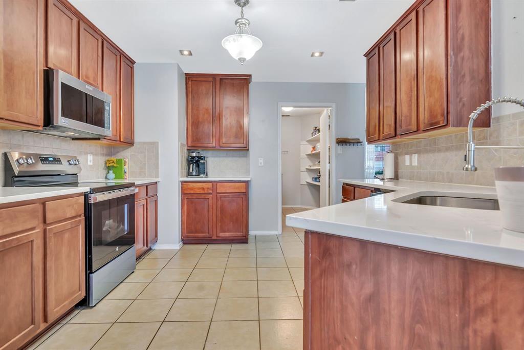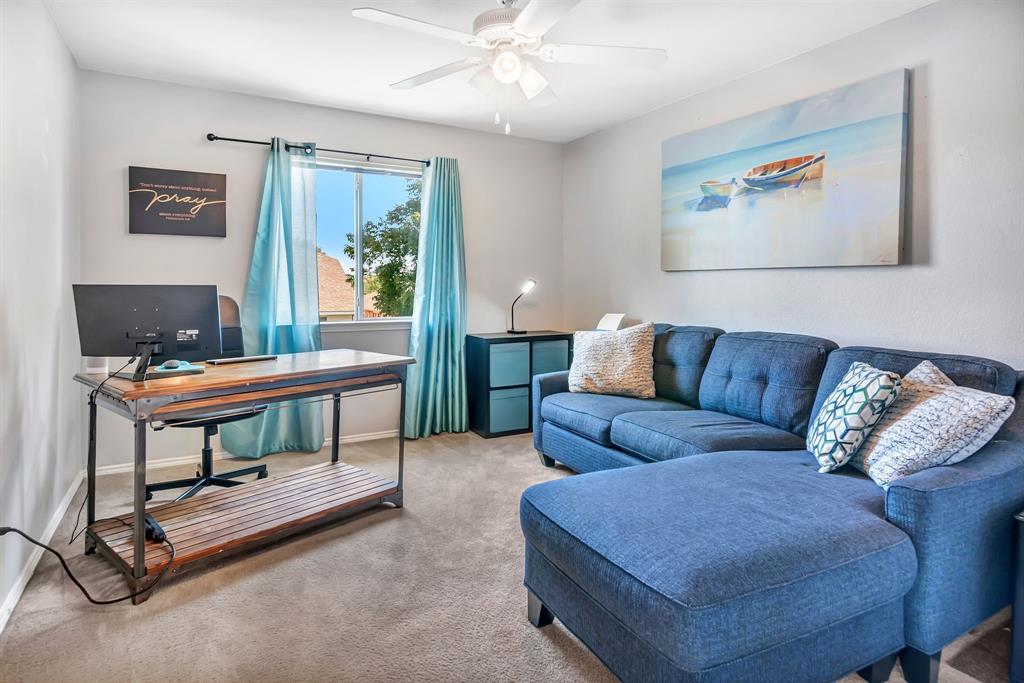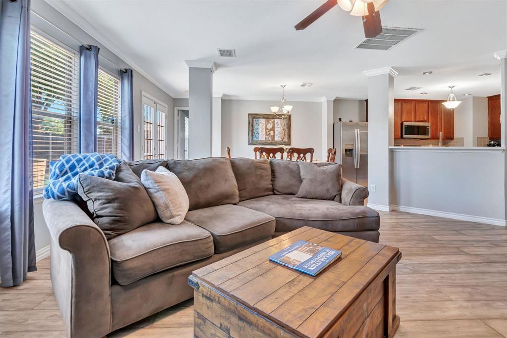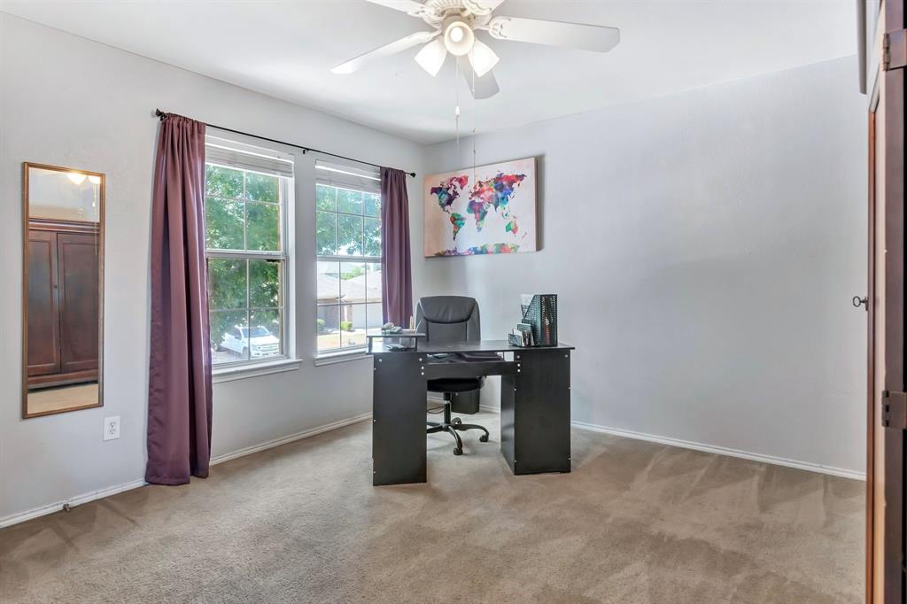 BACK ON MARKET! Buyers' home didn't sell. Welcome to this inviting home where you can entertain indoors or out. With 3 living areas, you can welcome your guests in the cozy & charming living room in the shade of the beautiful large oak tree just outside the front windows, gather around the wood burning fireplace in the den or congregate upstairs in the spacious game room with lots of natural light. Perhaps you'd prefer to watch TV from the backyard pool or simply enjoy the outdoors on your patio. The open floor plan connects the breakfast area & den with a lovely view of the sparkling pool through the wall of windows and French doors. With the primary bedroom, ensuite bath & walk-in closet downstairs, multi-generational living is a real possibility. You can also enter the home conveniently from the attached garage through the utility room that also serves as a large pantry and mud room, to keep your home tidy. Bring your groceries in from your car, just a few steps away. The kitchen has quartz countertops, a large, deep sink, built-in microwave over the range, and plenty of storage & counter space; ample floor space, too, for many helpers to work in meal preparation. Cook your large Thanksgiving turkey and lots of holiday cookies in the wide oven. The storage shed on foundation is 4 yrs old & in good condition; updates to roof (2019) & HVAC; acclaimed Keller ISD. Storage closet under stairs & additional walk-in closet in one upstairs bedroom. This property is in close proximity to Alliance Town Center with all the restaurants, entertainment & shopping it has to offer, & I-35 access is just minutes away, yet the nearby greenbelts, neighborhood park, jogging & bike paths and catch & release pond at the end of the cul-de-sac add a serene component to the peaceful neighborhood ambience. YMCA, North Park, Arcadia Trail Park North, soccer fields, basketball court, & Betty Perot Elementary School all just minutes away. Grocery stores, pharmacies and hospital nearby