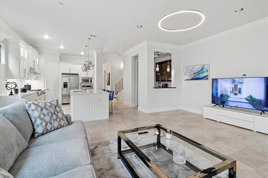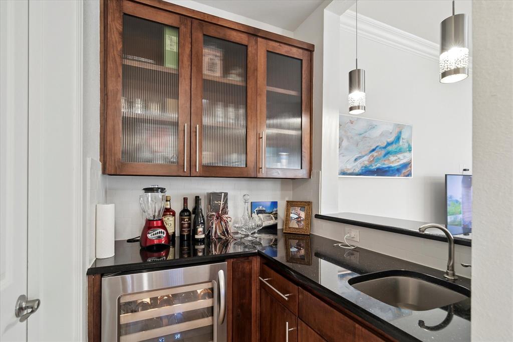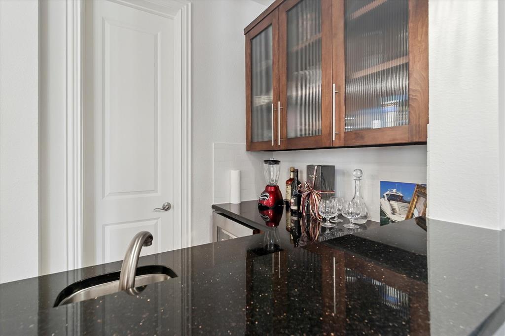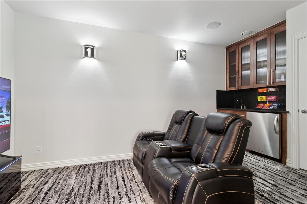 The gourmet kitchen is a showstopper, anchored by a massive underlit single-slab granite island and upgraded with a new gas cooktop, dishwasher, sink, and disposal. It opens to a spacious living area with wet bar, ideal for entertaining. The home also boasts a game room, home theater with second wet bar, and a versatile bonus room.