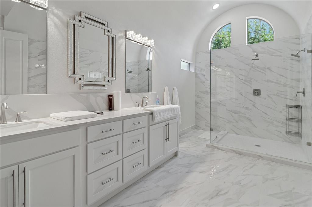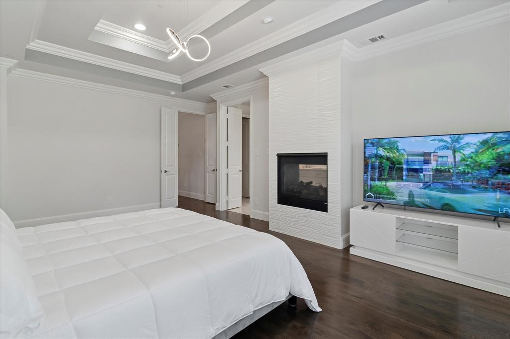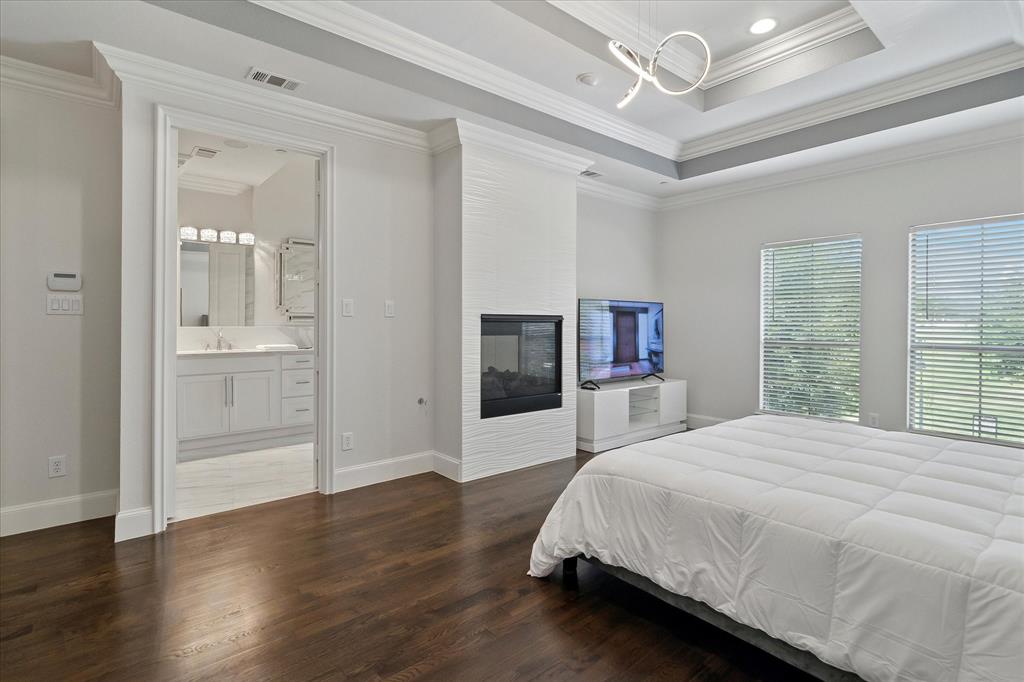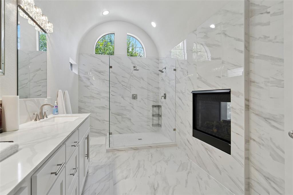 This 4-bedroom, 3.5-bath home is a rare find, showcasing impeccable design and high-end finishes throughout. The primary suite is a luxurious retreat, complete with its own cozy fireplace, triple crown molding, and designer bathroom featuring expansive large-format tile on both the floors and walls, a stunning walk-in shower, and an elegant double vanity.
