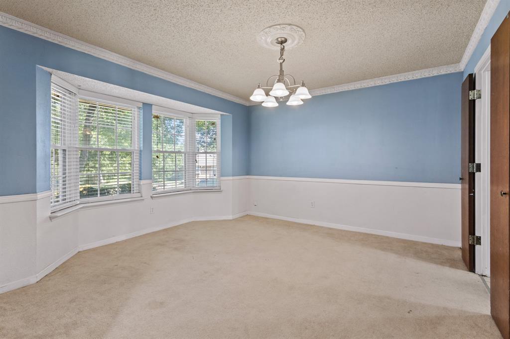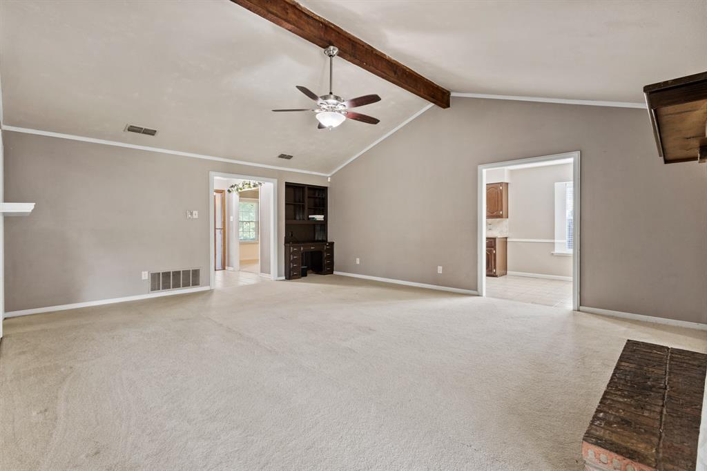 The oversized primary suite offers a spacious en-suite bath and two closets for ample storage. Soaring vaulted ceilings enhance the open living area, complete with a wood-burning fireplace and built-in desk. A formal dining room, breakfast nook, and welcoming foyer complete the well-designed interior.