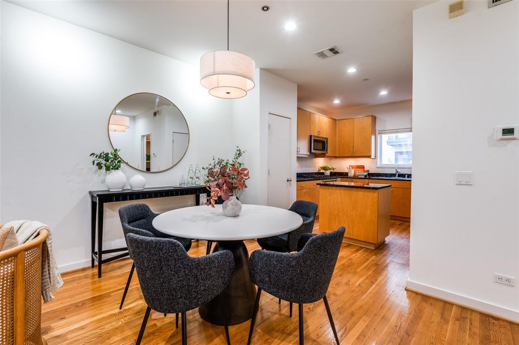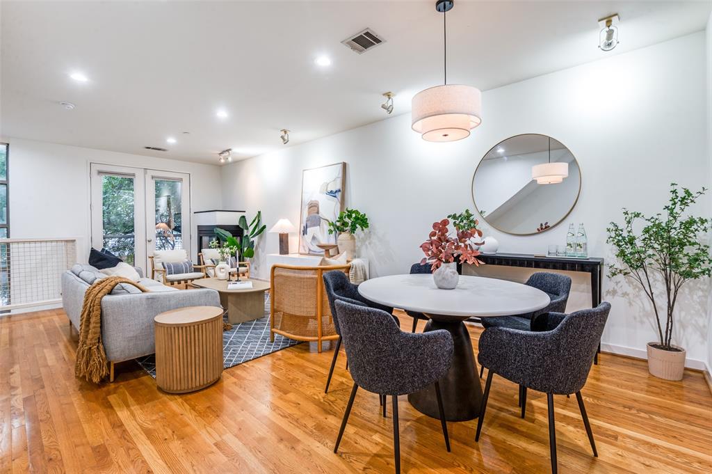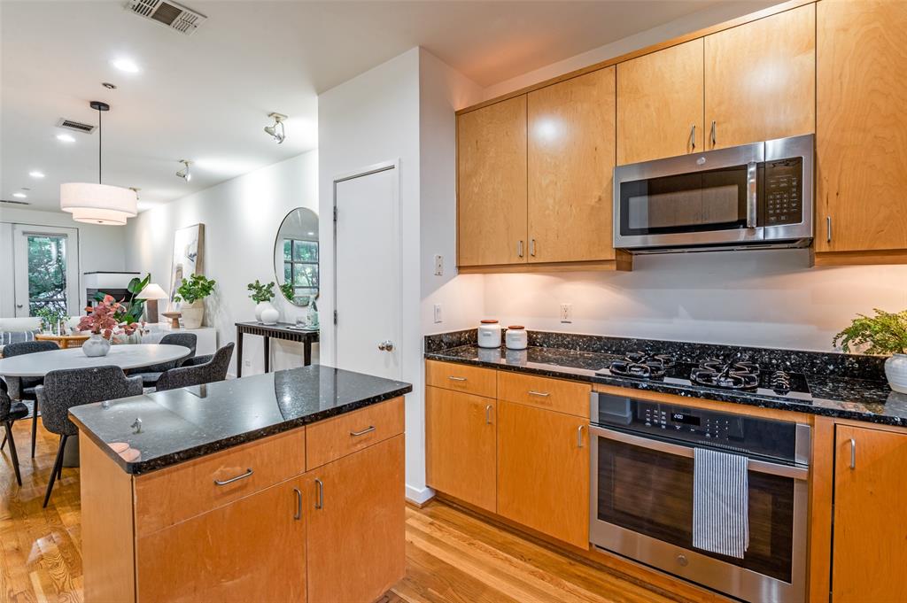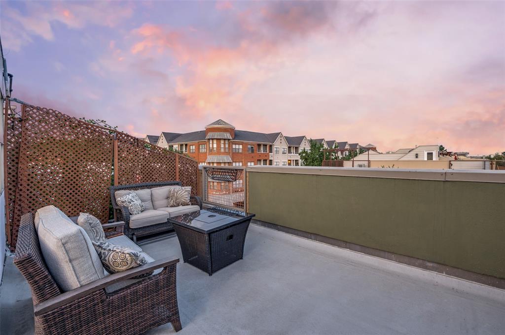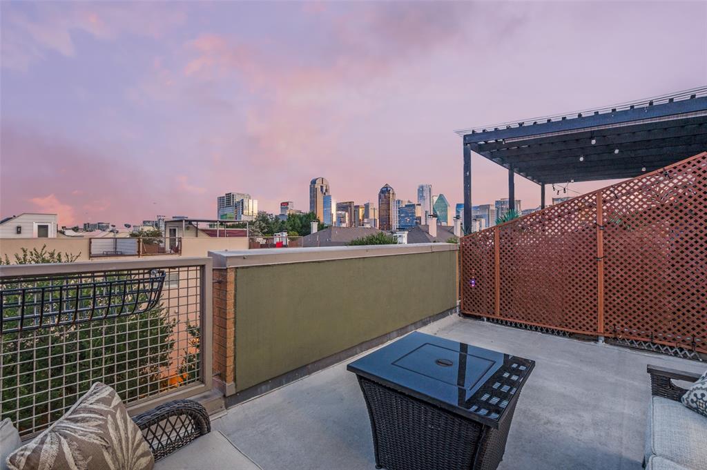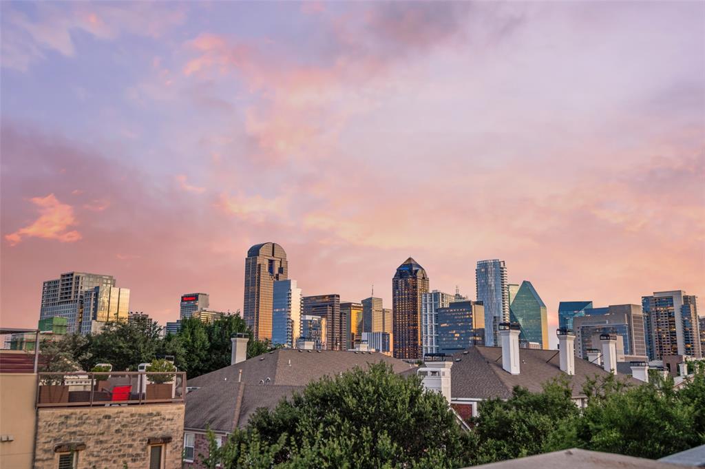 Iconic State Thomas townhome just a few doors down from trendy coffee shops, restaurants, fitness studios, Griggs Park, and even Whole Foods. Let your vibrant walkable lifestyle begin in this 3 story home with one of the best rooftop views in Dallas. Open the living room Juliet balcony and enjoy the lively tree-lined streets of State Thomas. The ground level consists of an attached 2 car garage, guest bedroom with en-suite and foyer. Second level is all living space, kitchen and large half-bath. The primary suite makes up the entire third floor and includes a flex space, laundry room, additional storage closet and fully updated ensuite. Take the stairs from your bedroom right up to the fourth level rooftop for un-beatable panoramic views of the Downtown Dallas skyline. Perfect setup for indoor and outdoor entertaining! NO HOA, use your property to suit your own needs.